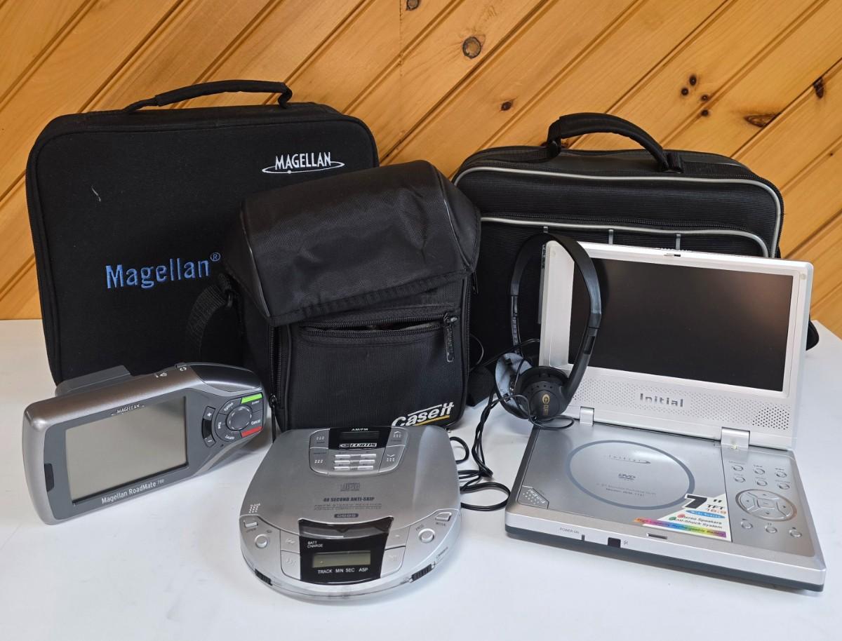 LOT 74P: Retro Road Trip!! Magellan GPS with Portable DVD Player, CD Player, and Accessories