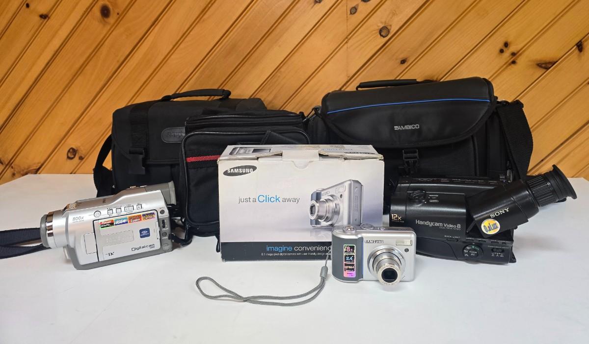 LOT 75P: TWO Camcorders and Samsung Digital Camera with Accessories