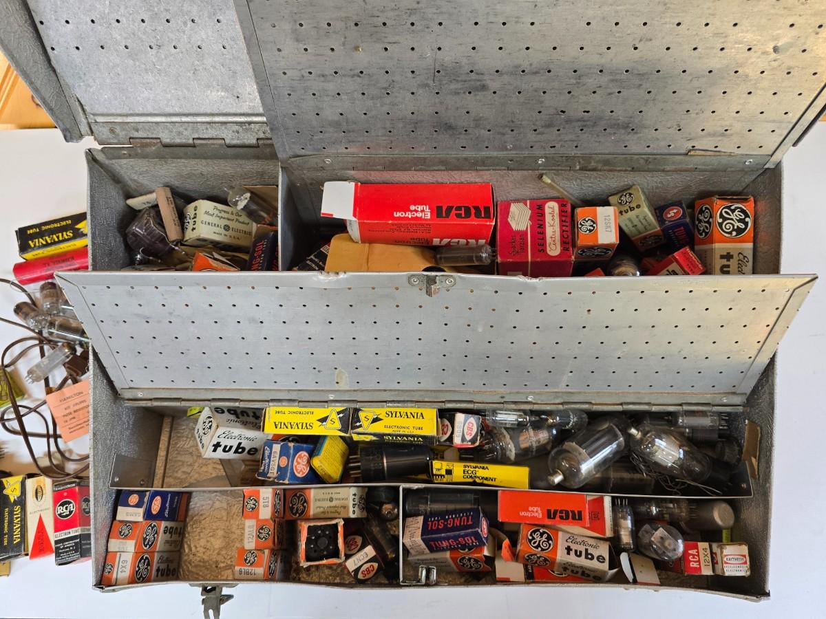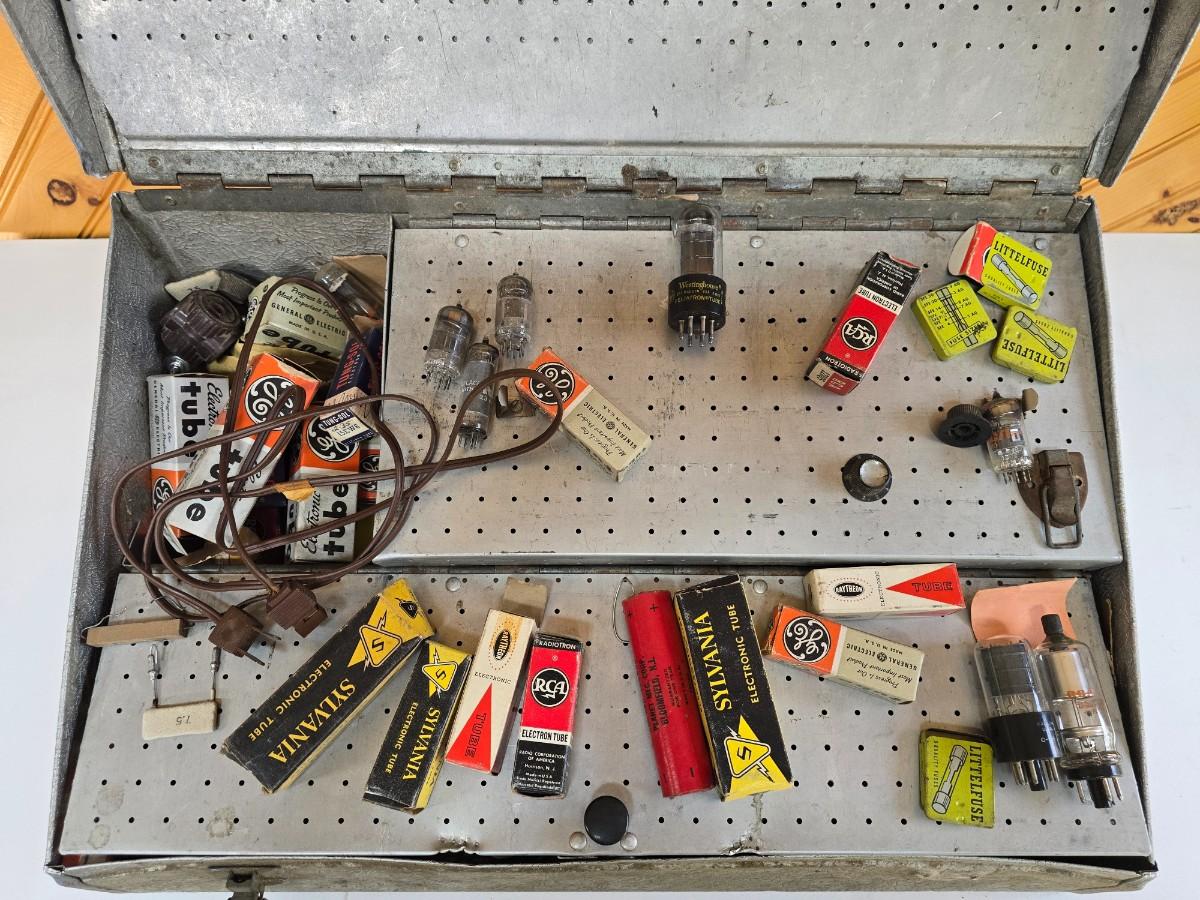 LOT 76P: Tool Tender Radio-Television Service Box with Assorted Glass Tubes and Fuses