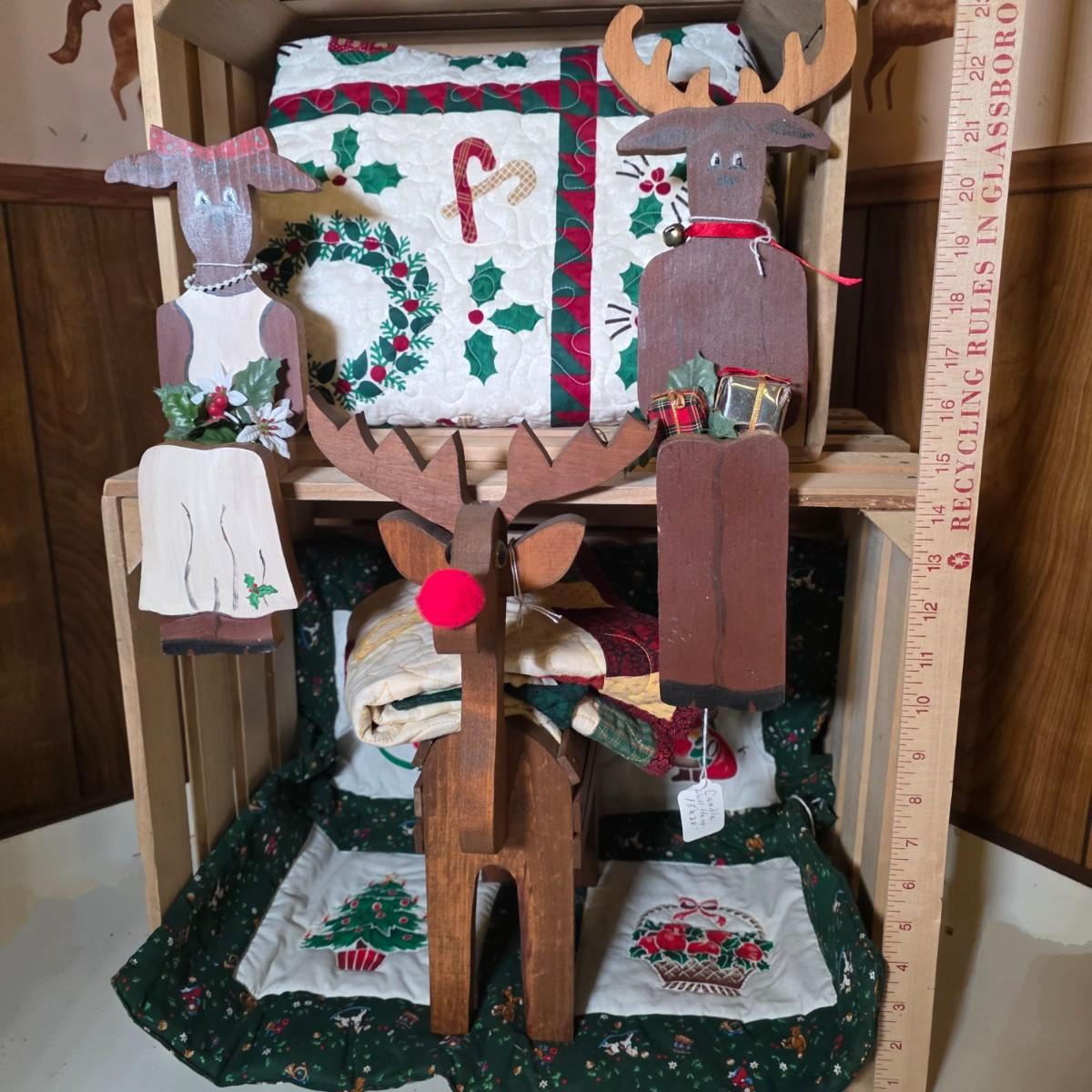 LOT 100S: Beautifully Wood Crafted Reindeer Planters, Shelf Sitters, Small Table Runners & More, Includes Both Crates