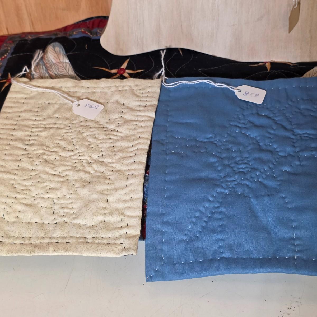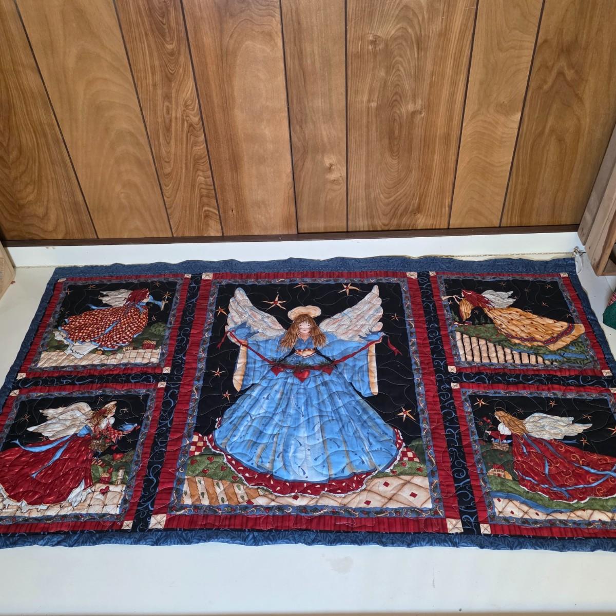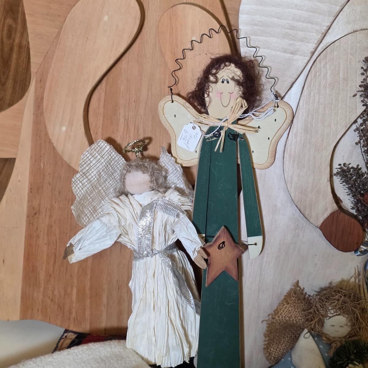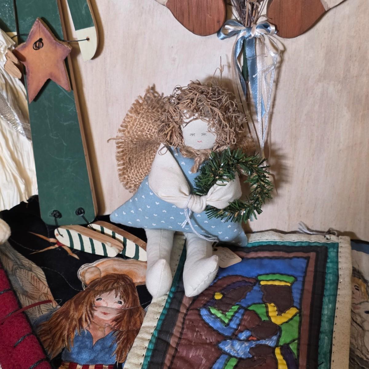 LOT 103S: Darling Finished Angel & One Ready To Finish Your Way, Along W/Smaller Angels, Stocking, Trivets & Decorative Box In A Crate