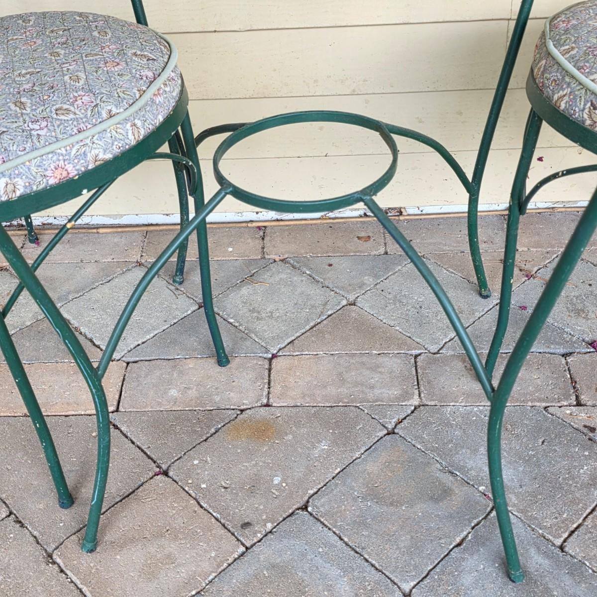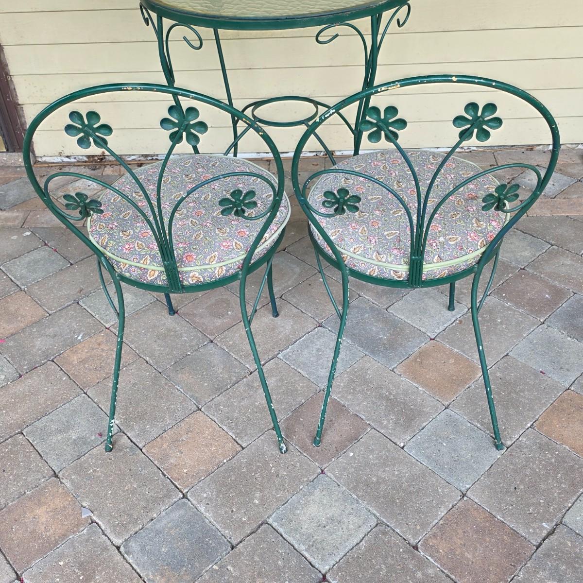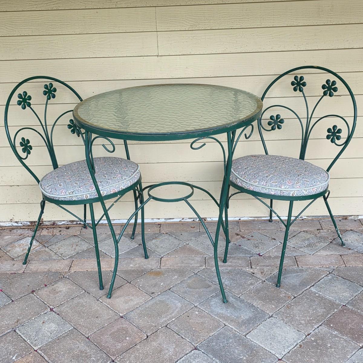 LOT 124S: Vintage Ice Cream Parlor/Bistro Set W/Removeable Glass Top Table & Two Chairs W/Cute Removeable Cushions