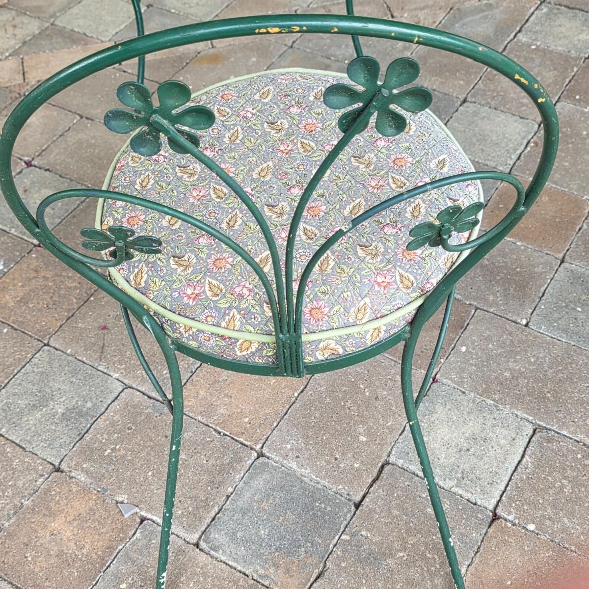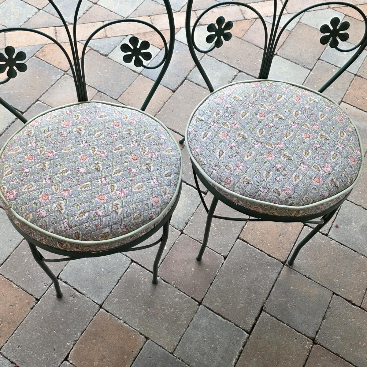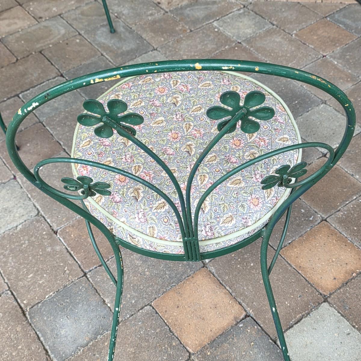 LOT 124S: Vintage Ice Cream Parlor/Bistro Set W/Removeable Glass Top Table & Two Chairs W/Cute Removeable Cushions