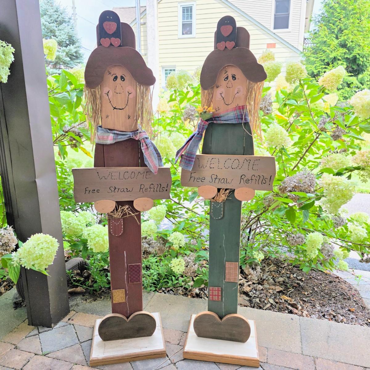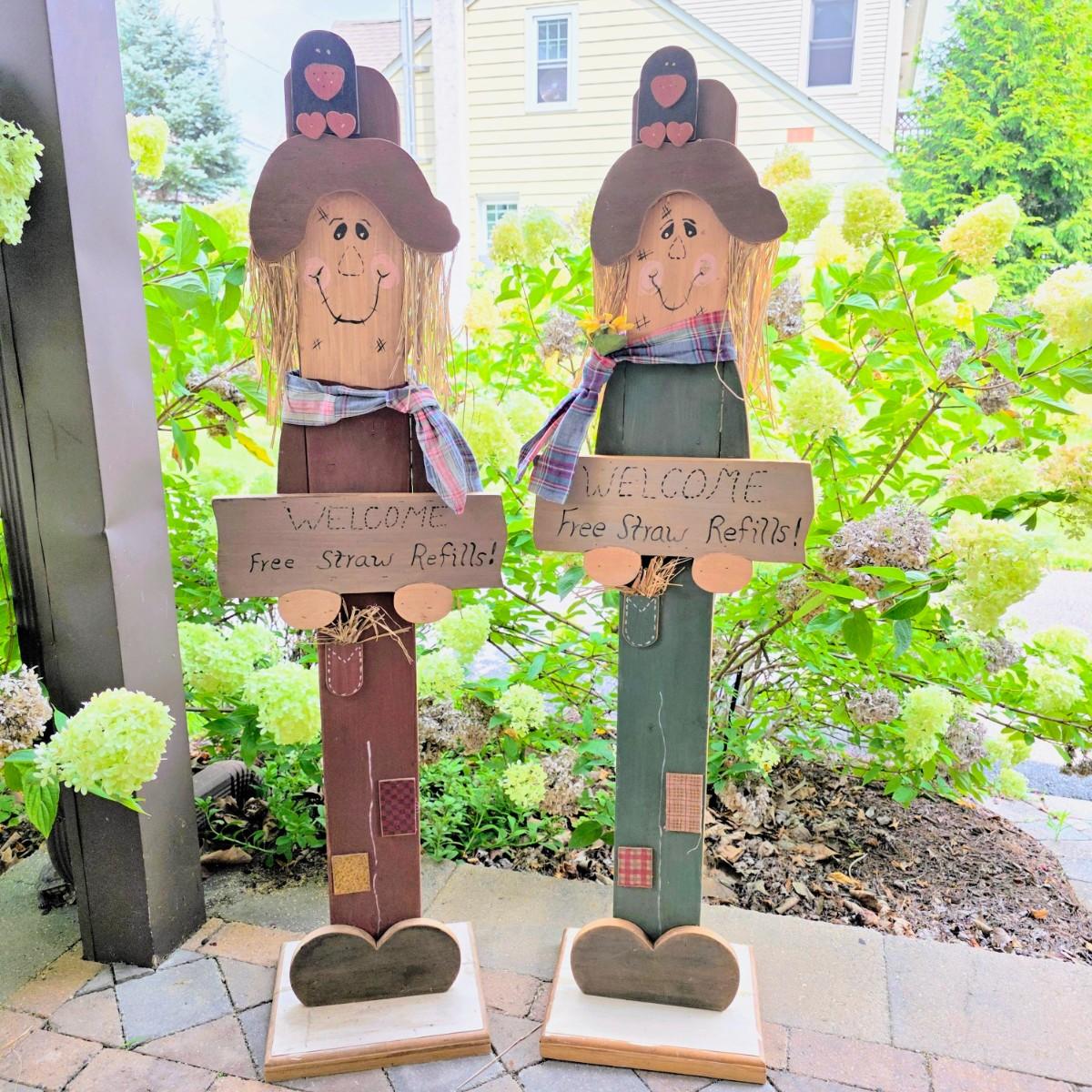 LOT 126S: Got Straw? Two Very Adorable, Vintage, Welcome Sign Scare Crows