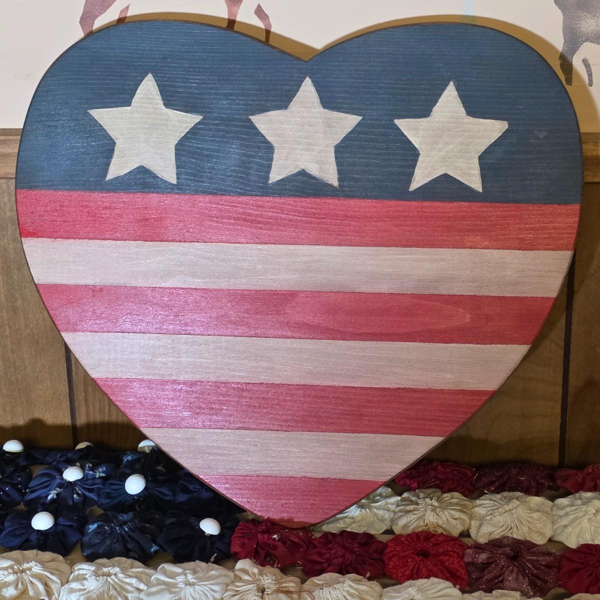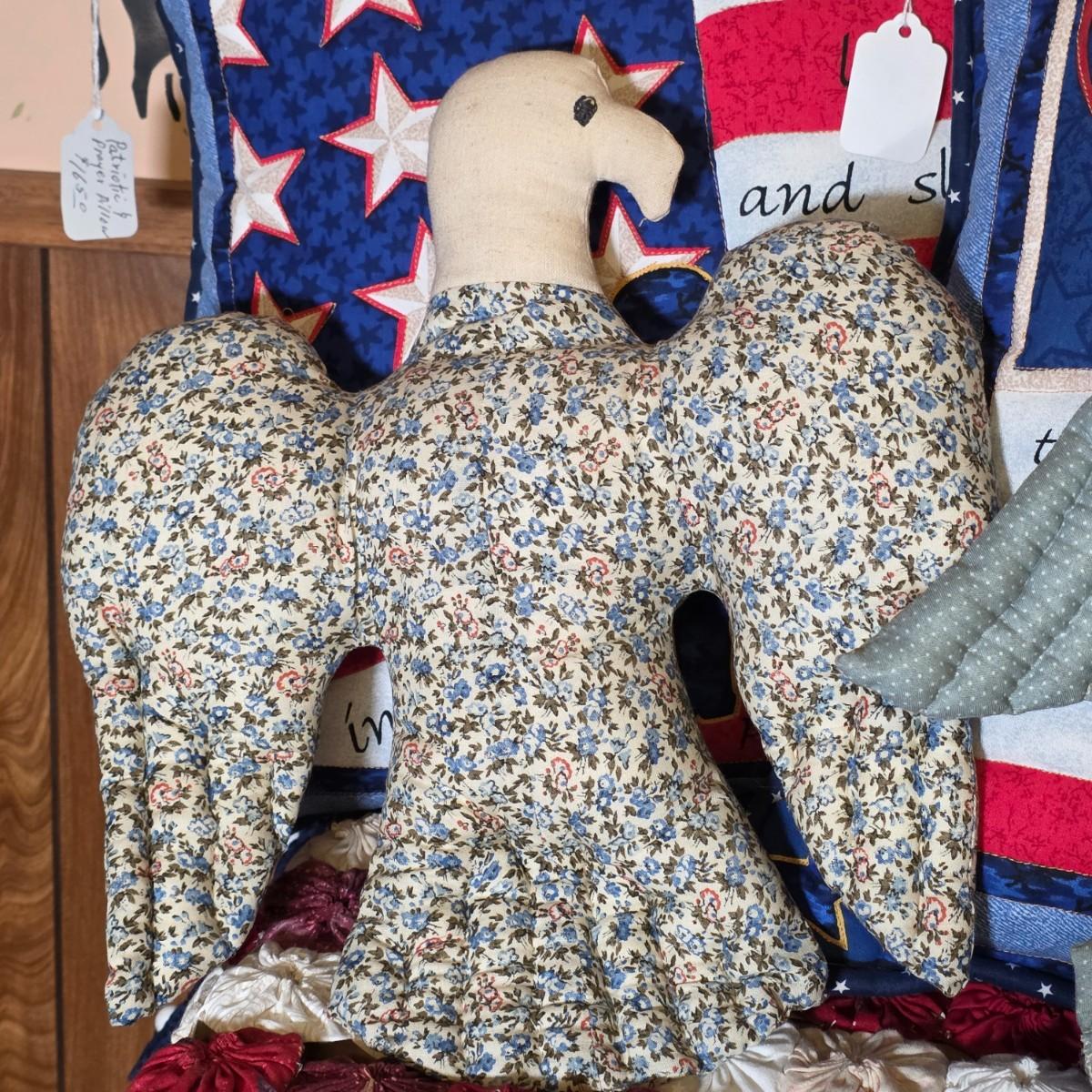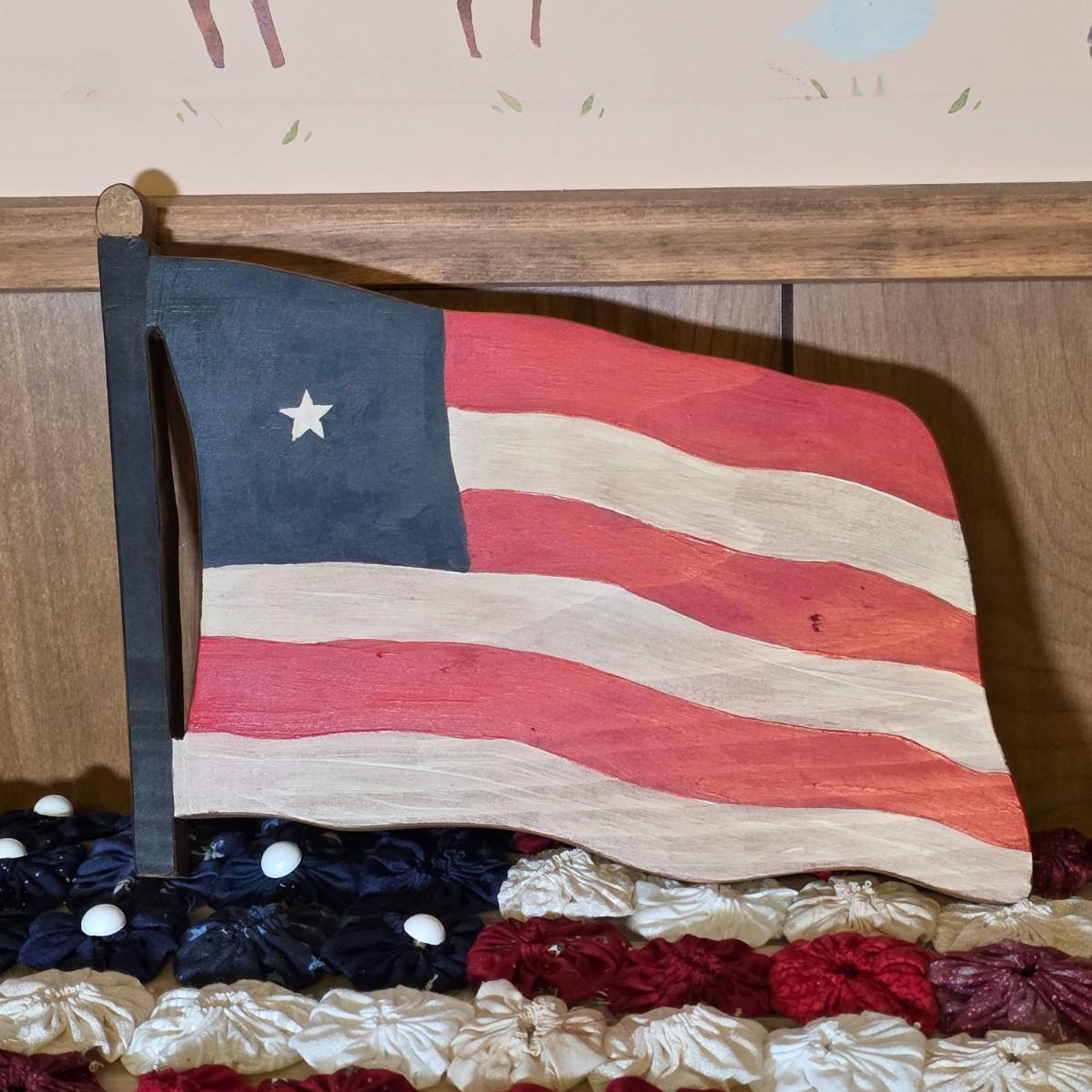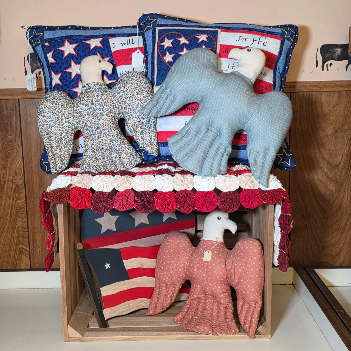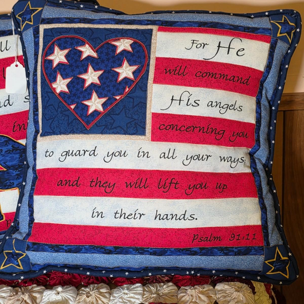 LOT 129S: Vintage Handmade Patriotic Pillows, Yo-Yo & Wooden American/US Flags
