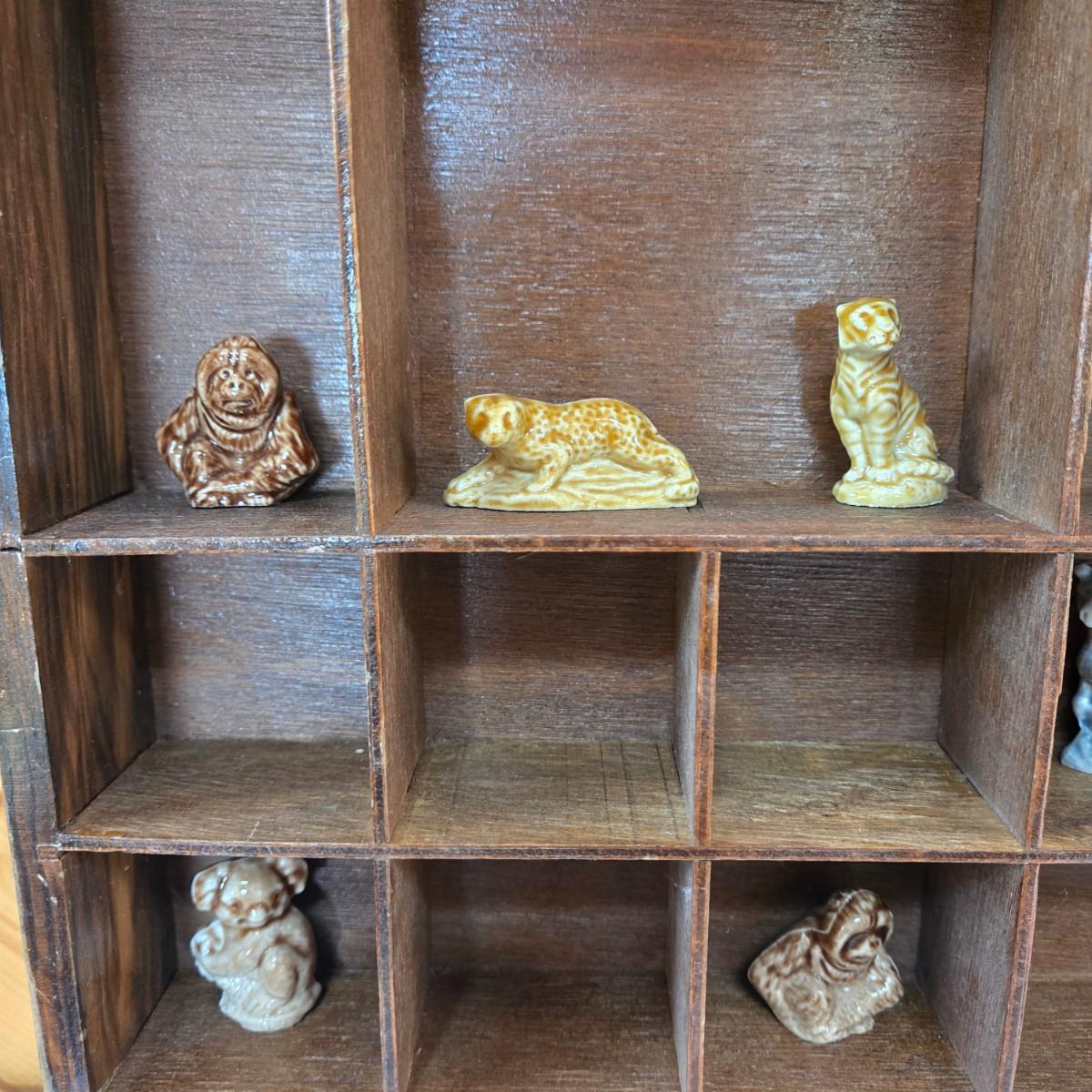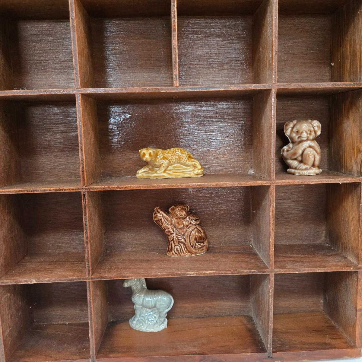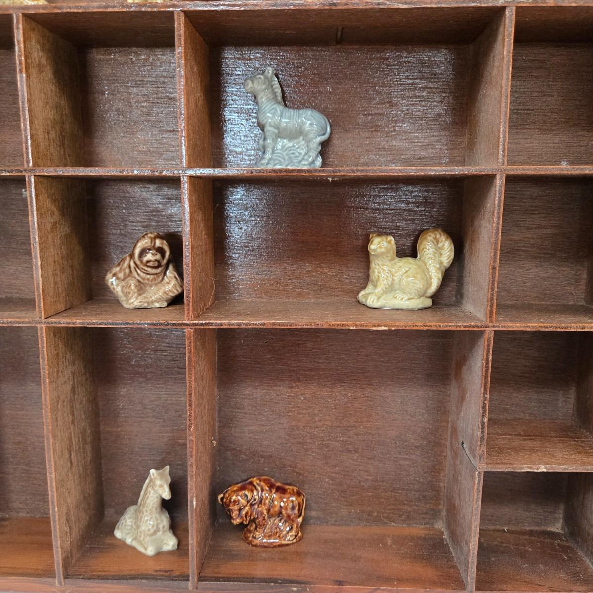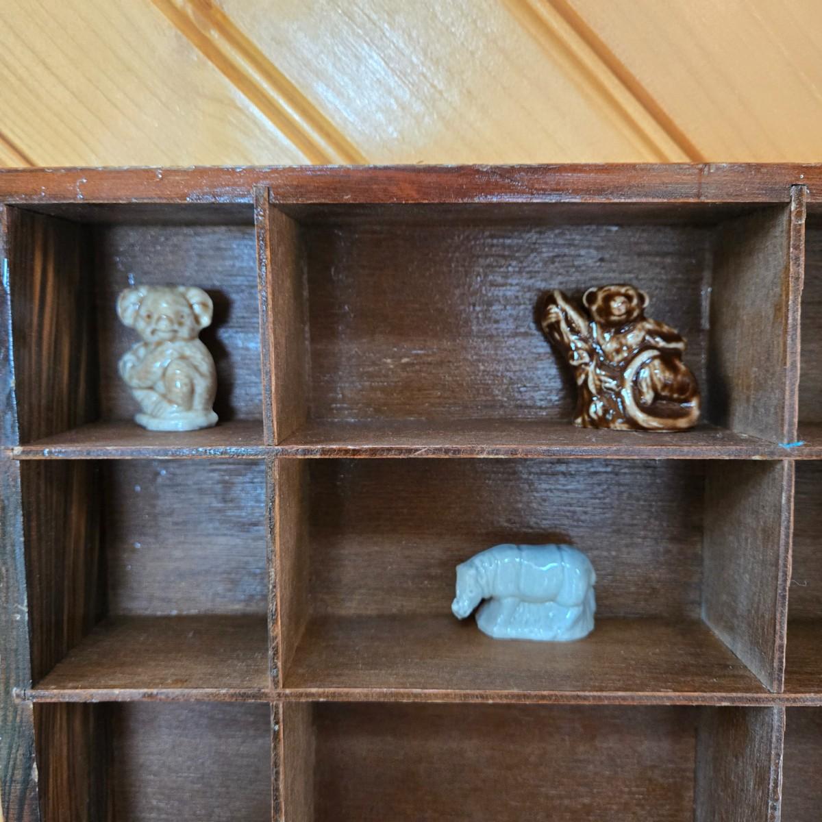 LOT 150F: Wooden Display Shelf with Multiple Red Rose Wade Figurines