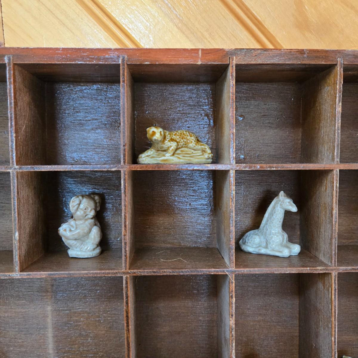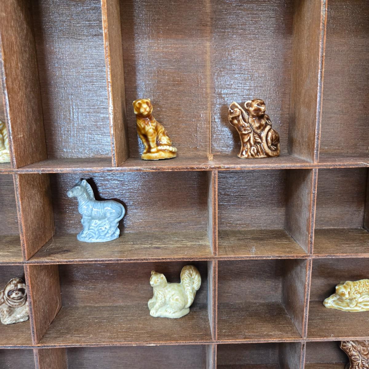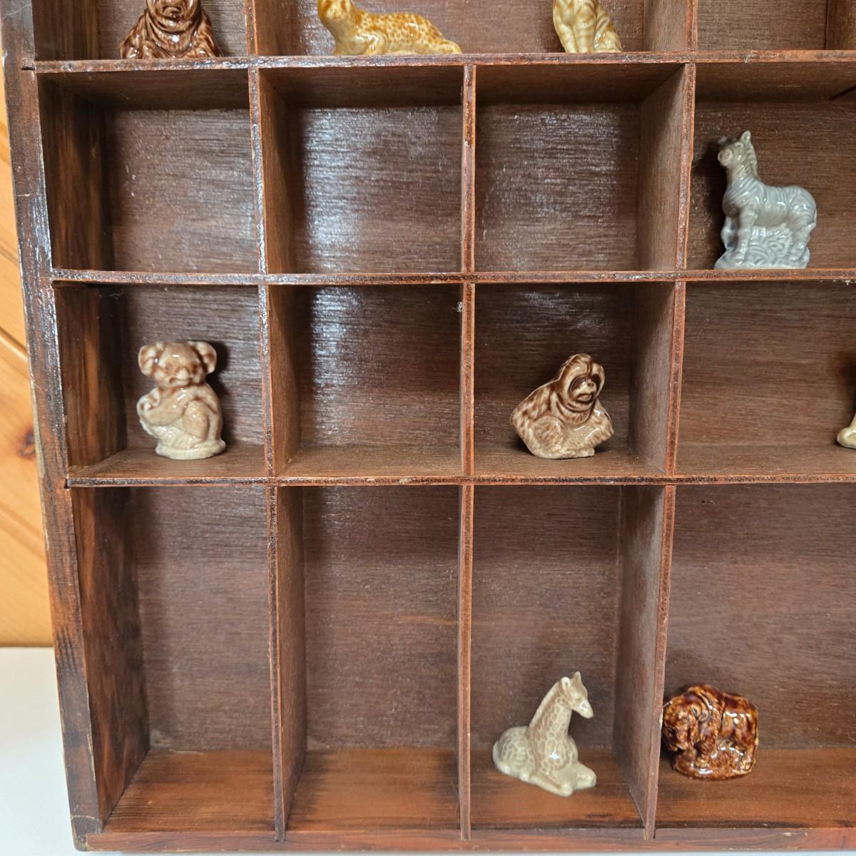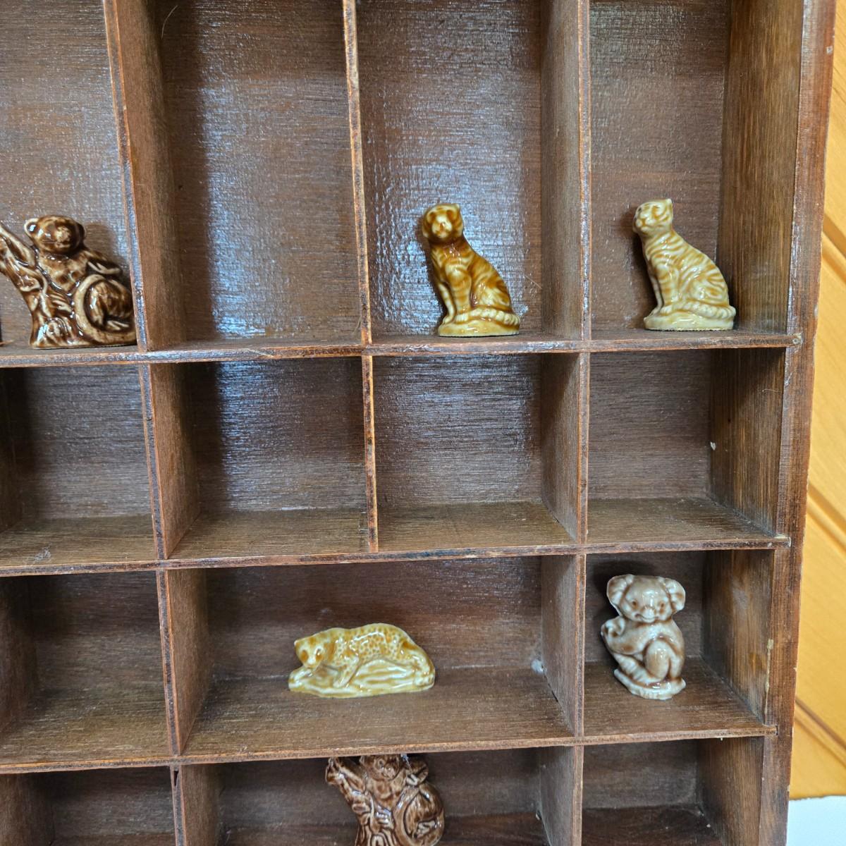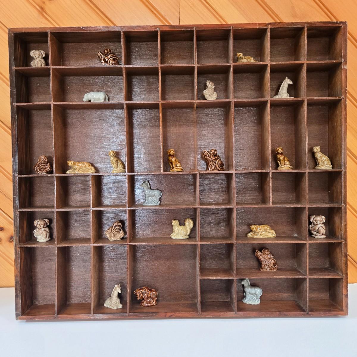LOT 150F: Wooden Display Shelf with Multiple Red Rose Wade Figurines