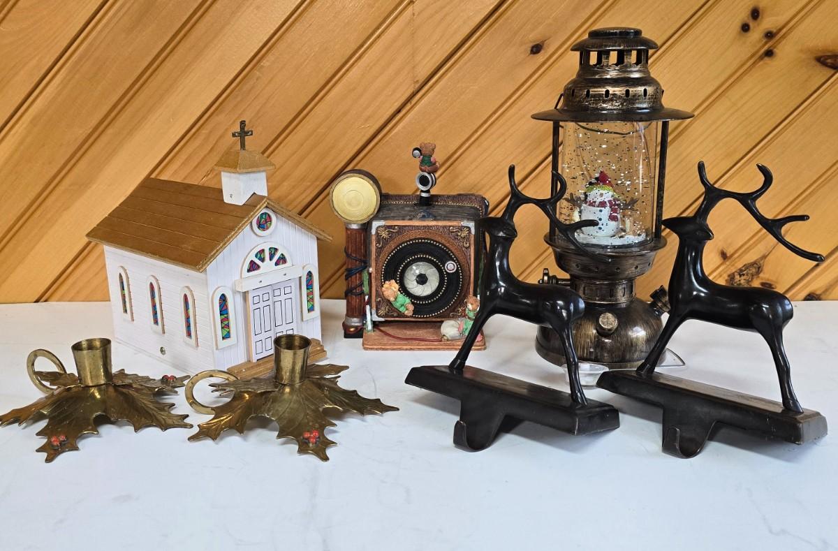 LOT 151F: Holiday Music Boxes, Candlesticks, and Stocking Hangers