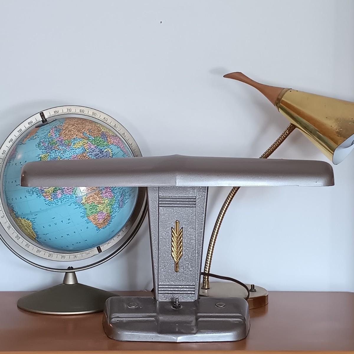 LOT 12: Vintage Replogle 10" Reference Globe, Moe Brothers Art Deco Airplane Lamp & MCM Gooseneck Desk Lamp