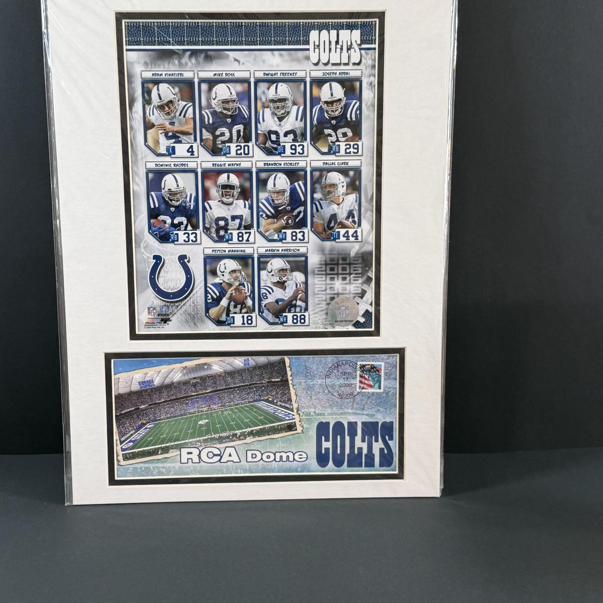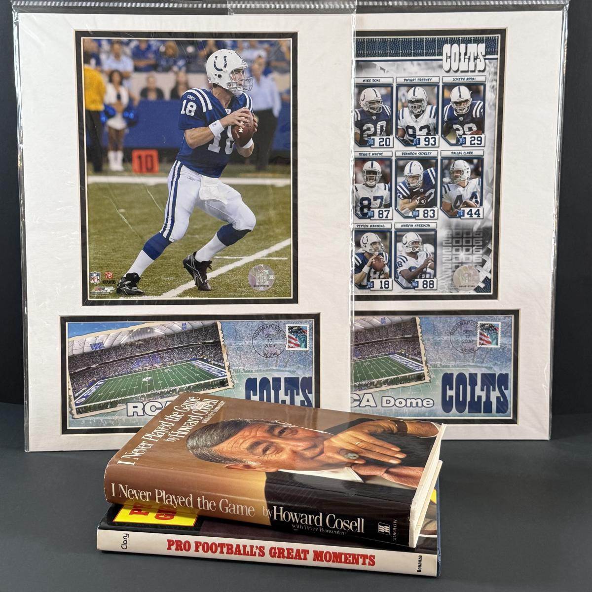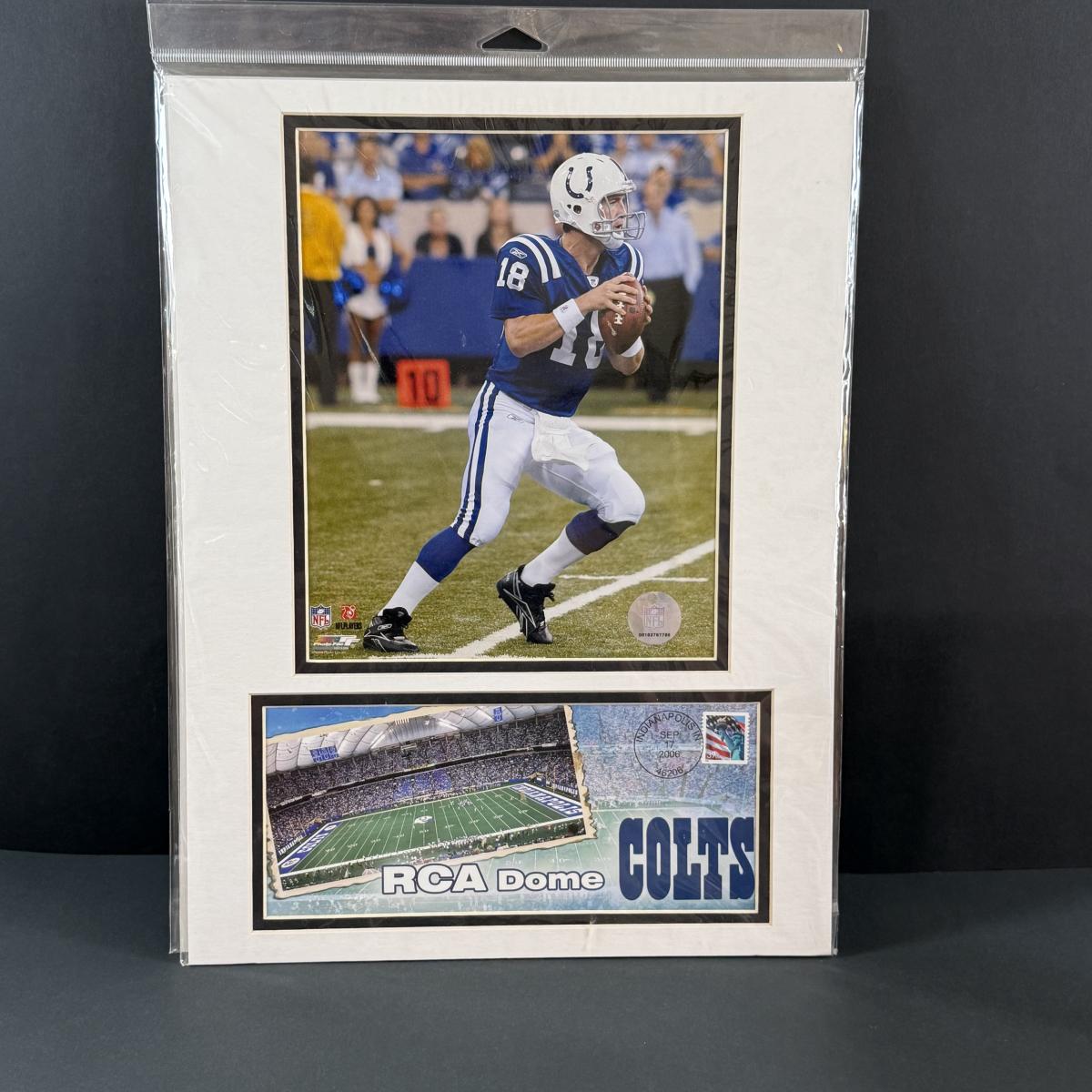 LOT 28: Baltimore Colts / Peyton Manning Stamped Envelopes and Framed and Matted Photos and More