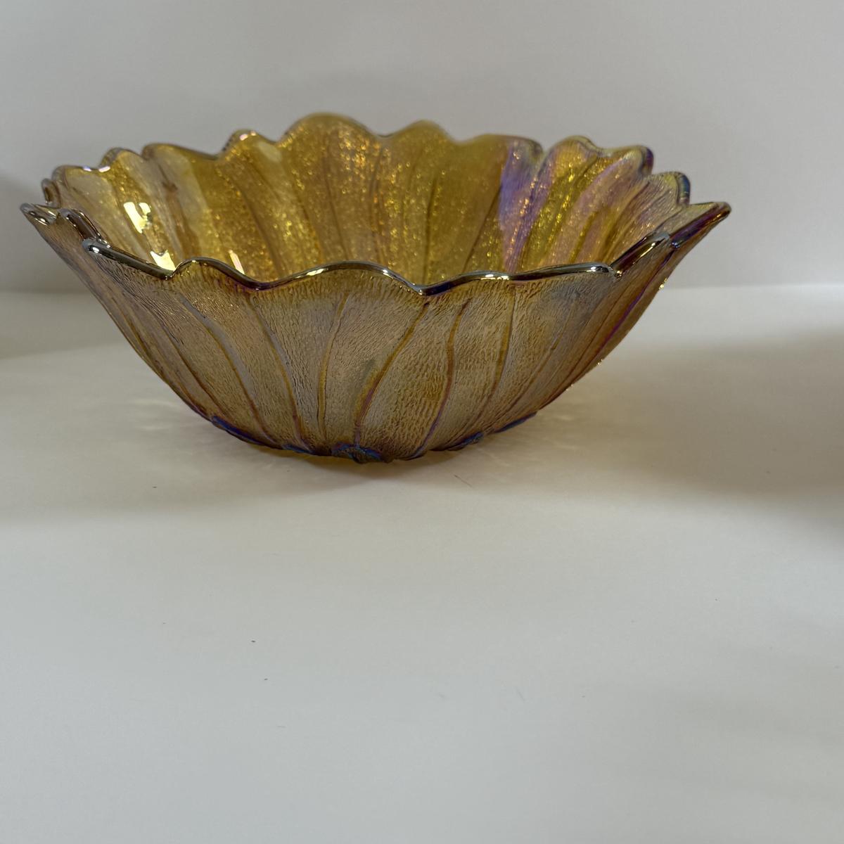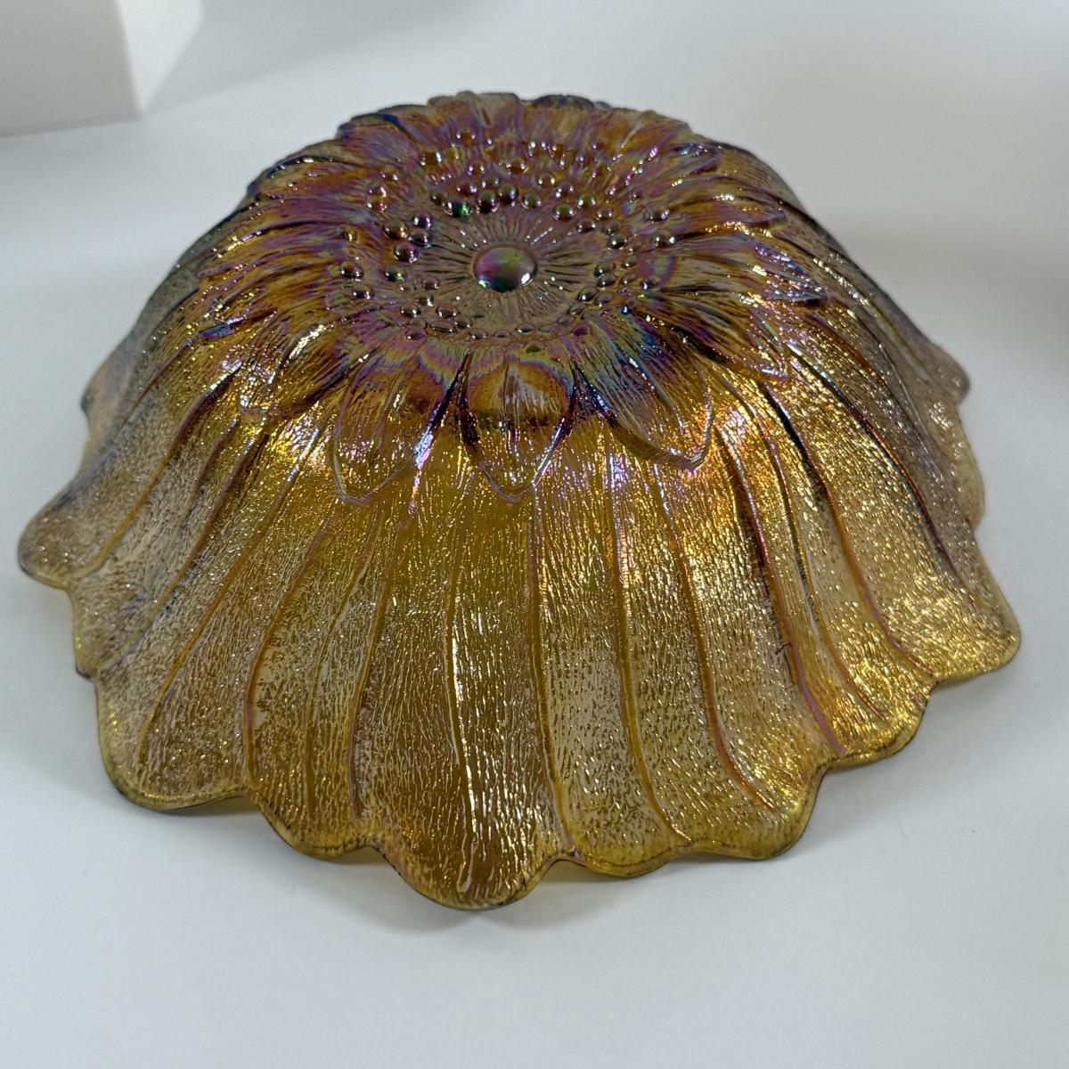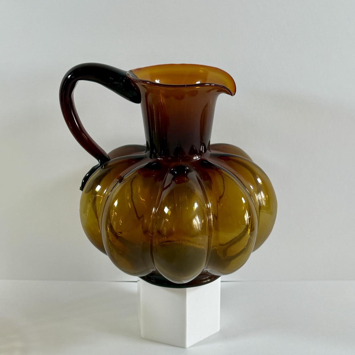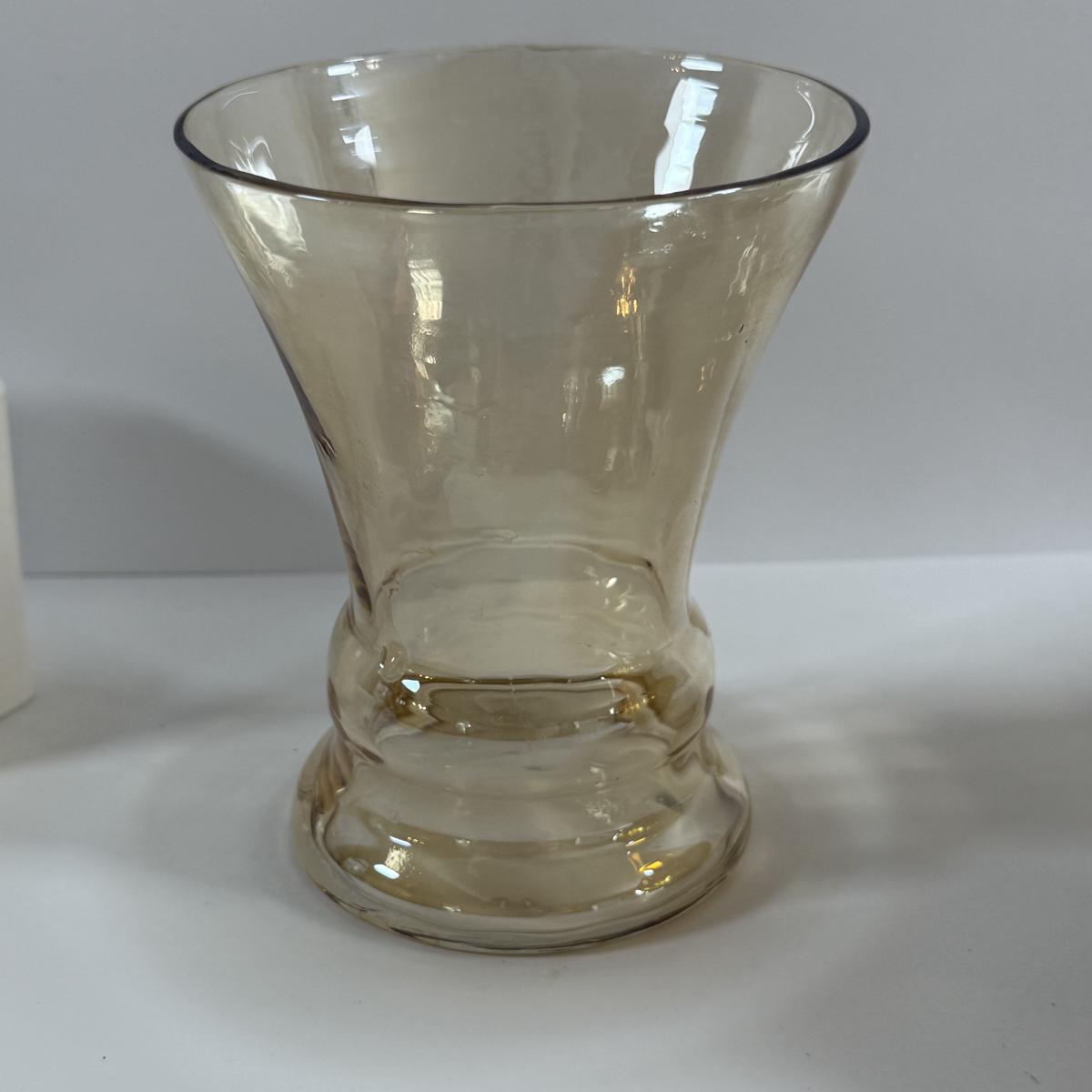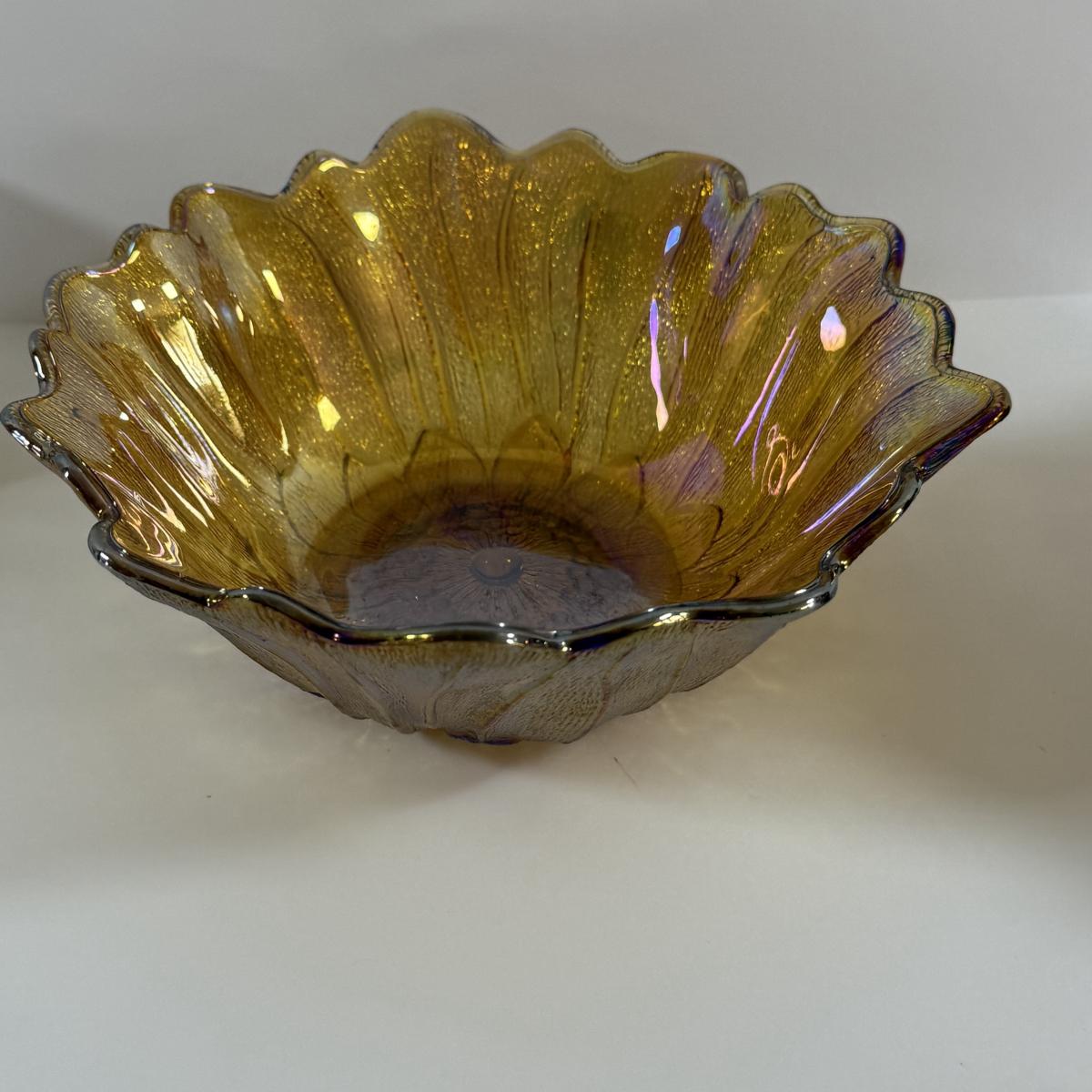 LOT 38: Collection of Amber Glass Pitcher and Vase and a Carnival Glass Sunflower Bowl