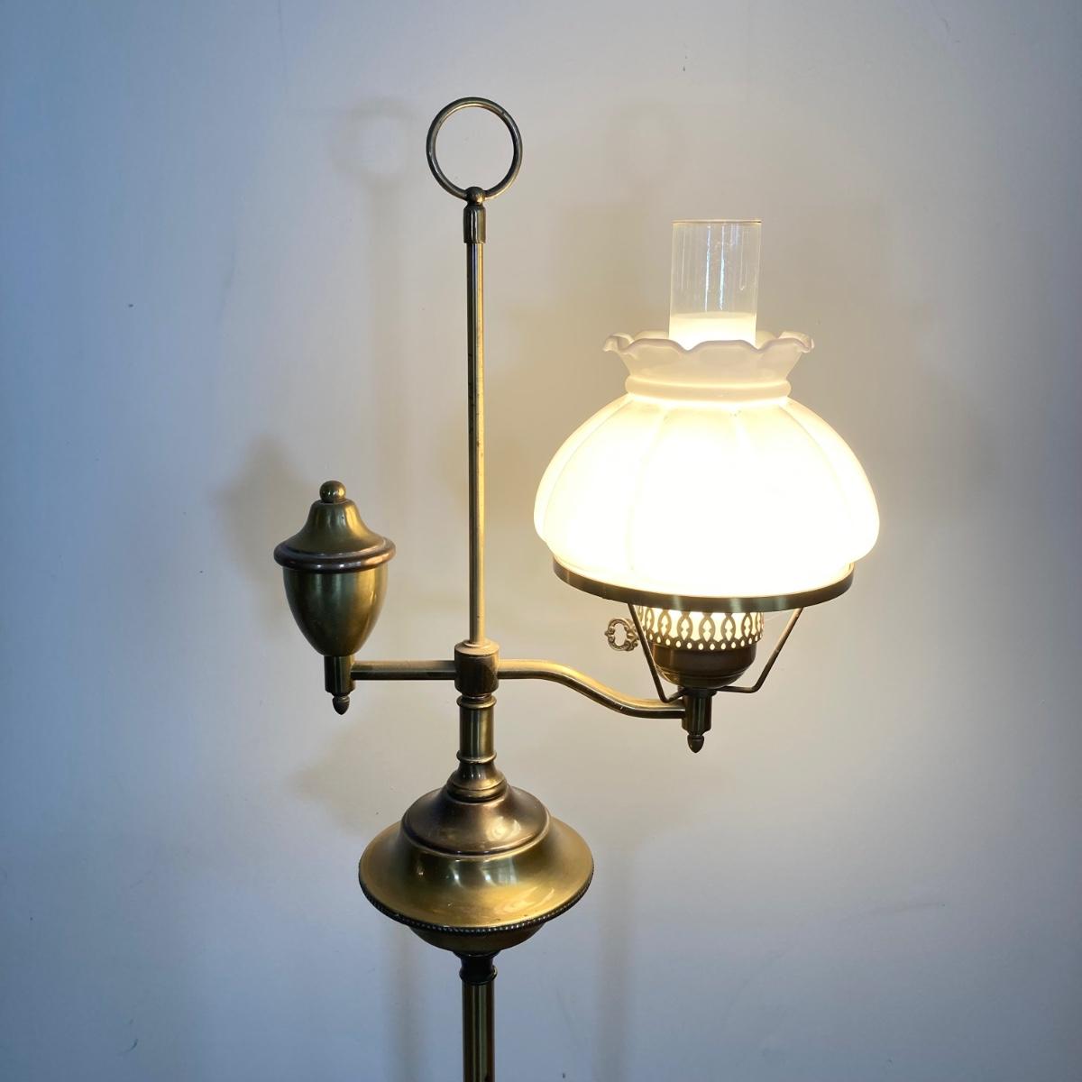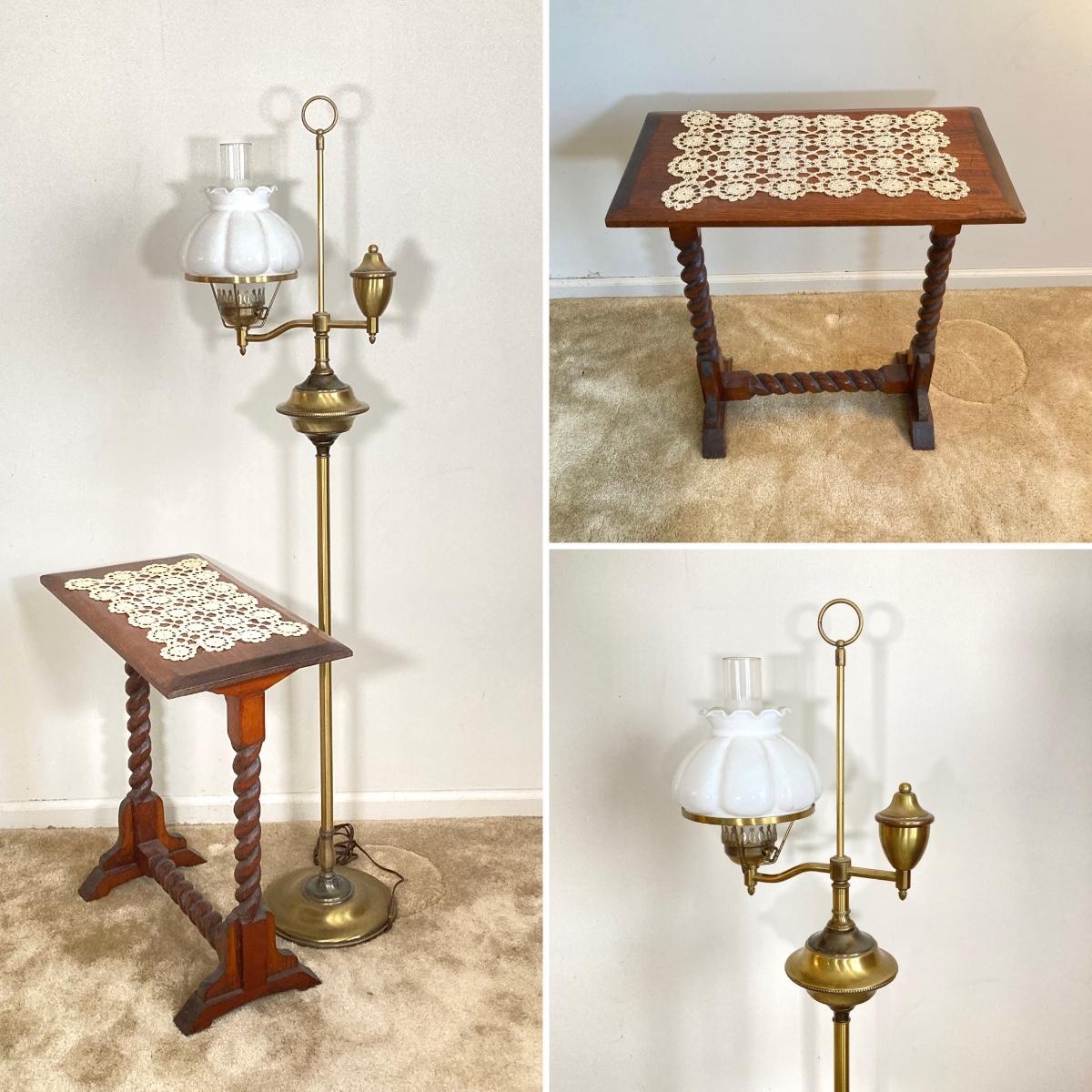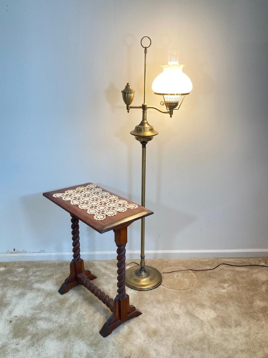 LOT 57: Brass Hurricane Floor Lamp with Wooden Accent Table