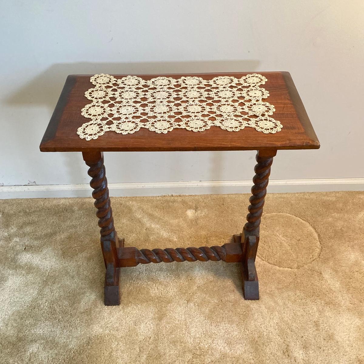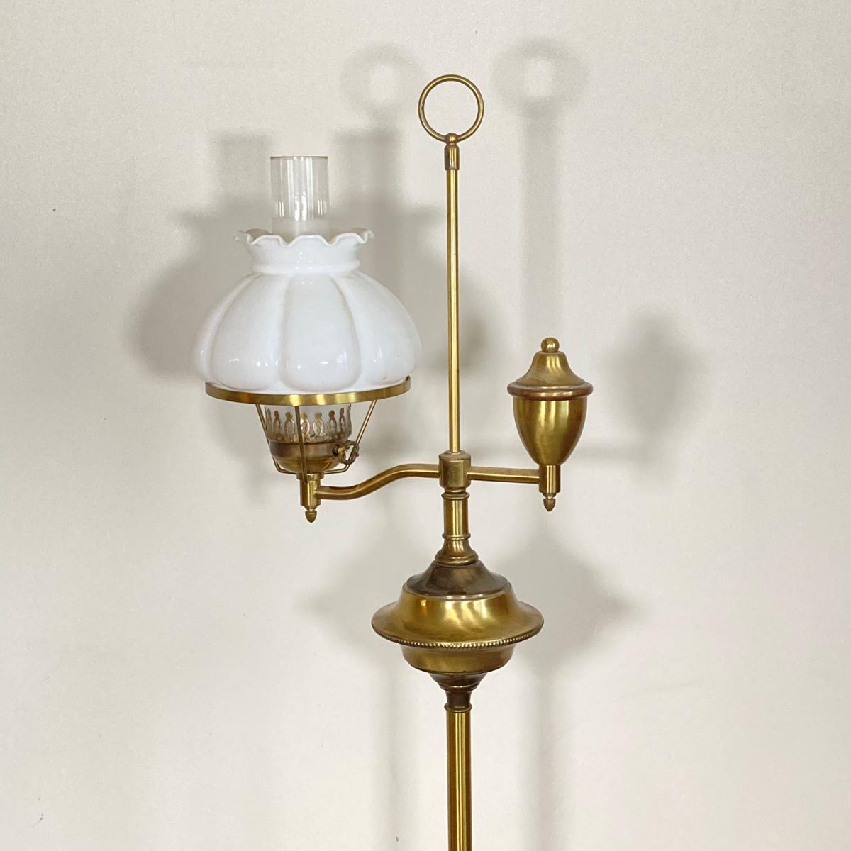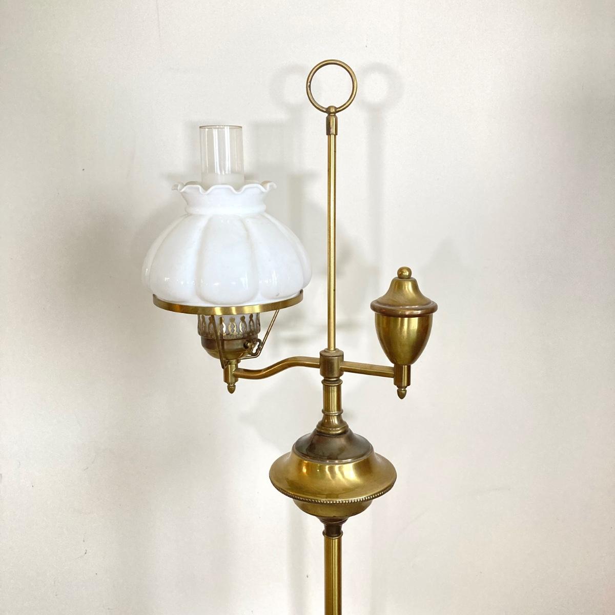 LOT 57: Brass Hurricane Floor Lamp with Wooden Accent Table