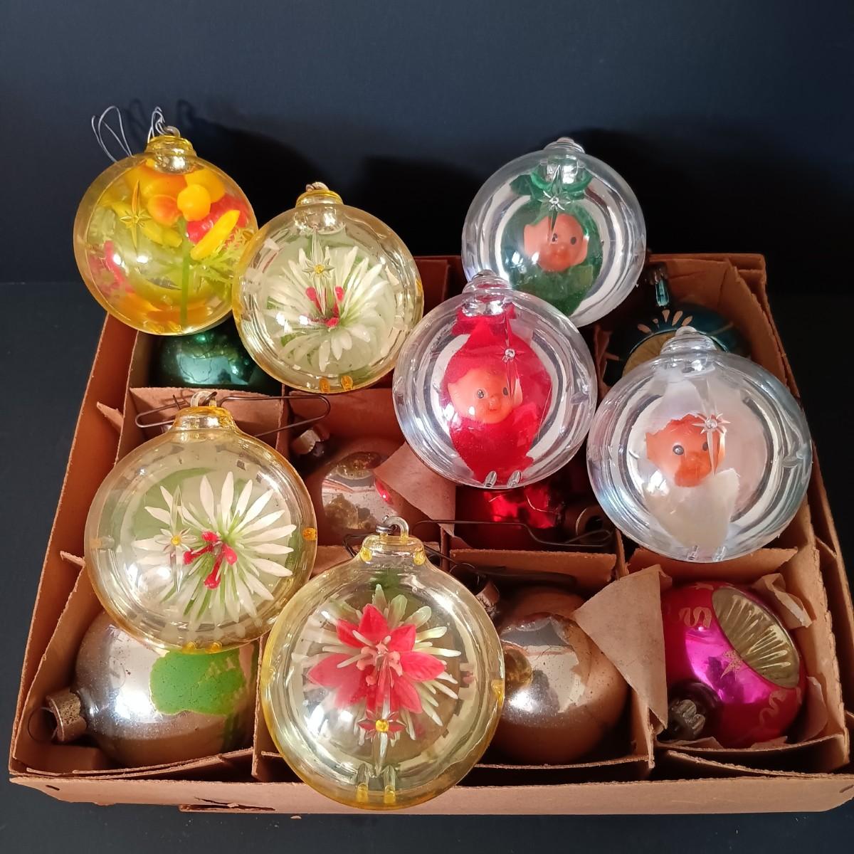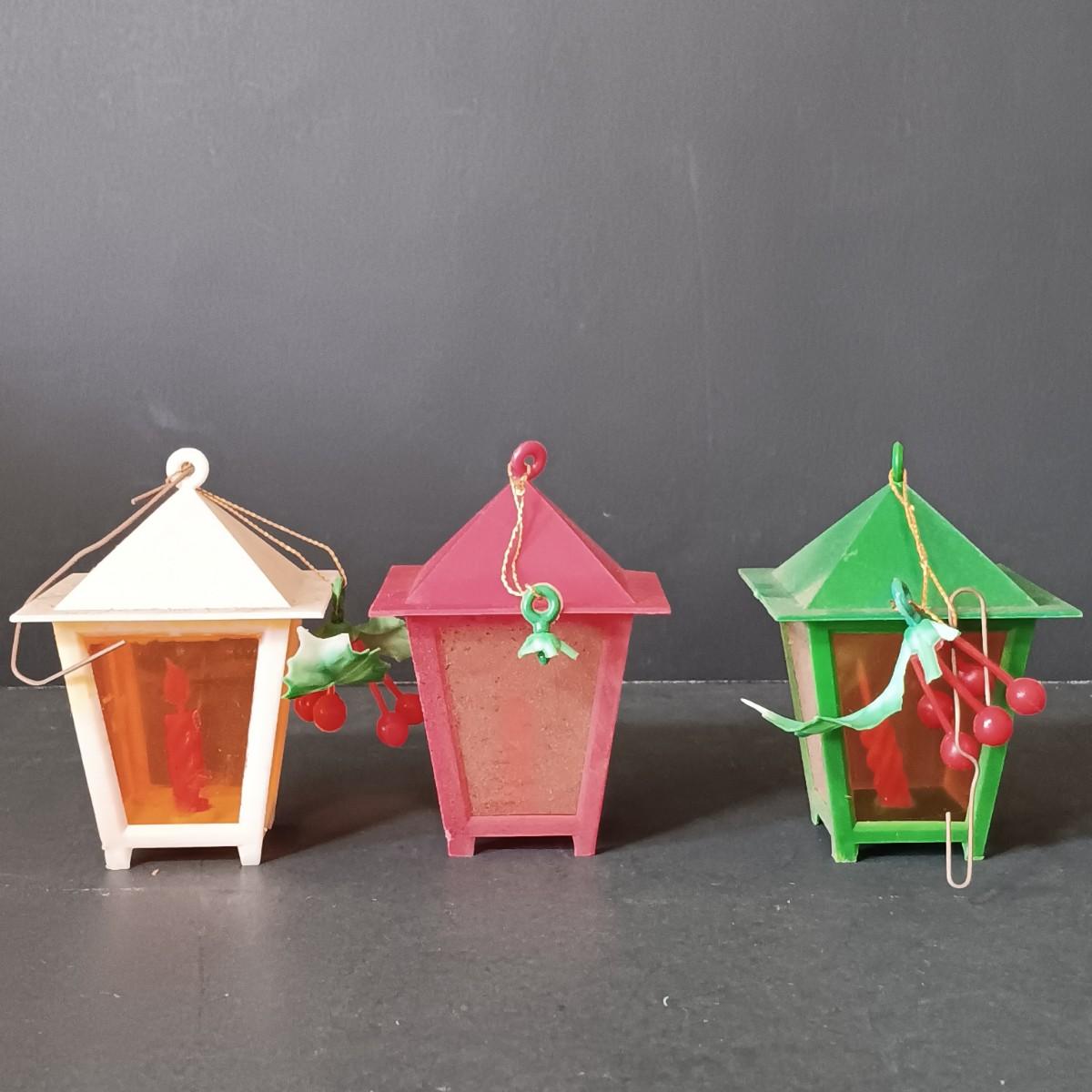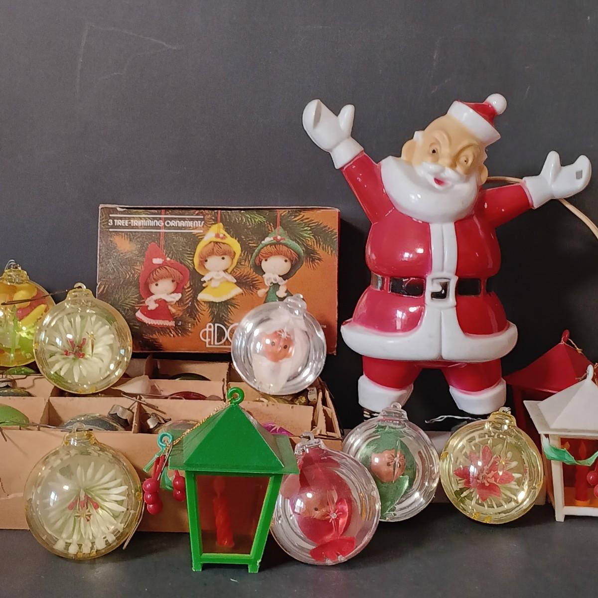 LOT 183: Vintage Jewelbrite Diorama Ornaments, Plastic Light-Up Santa & More