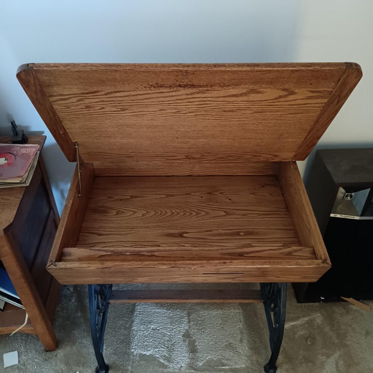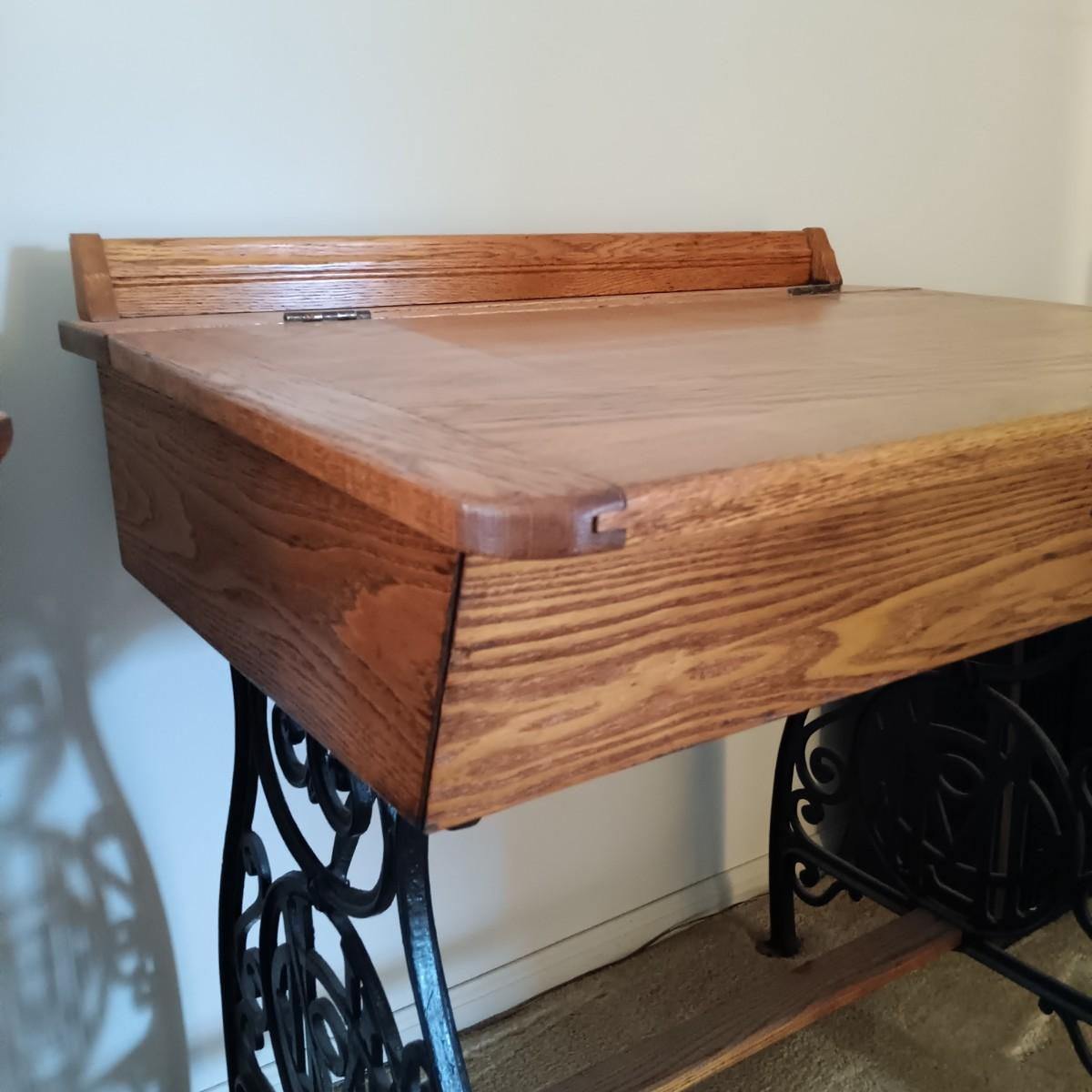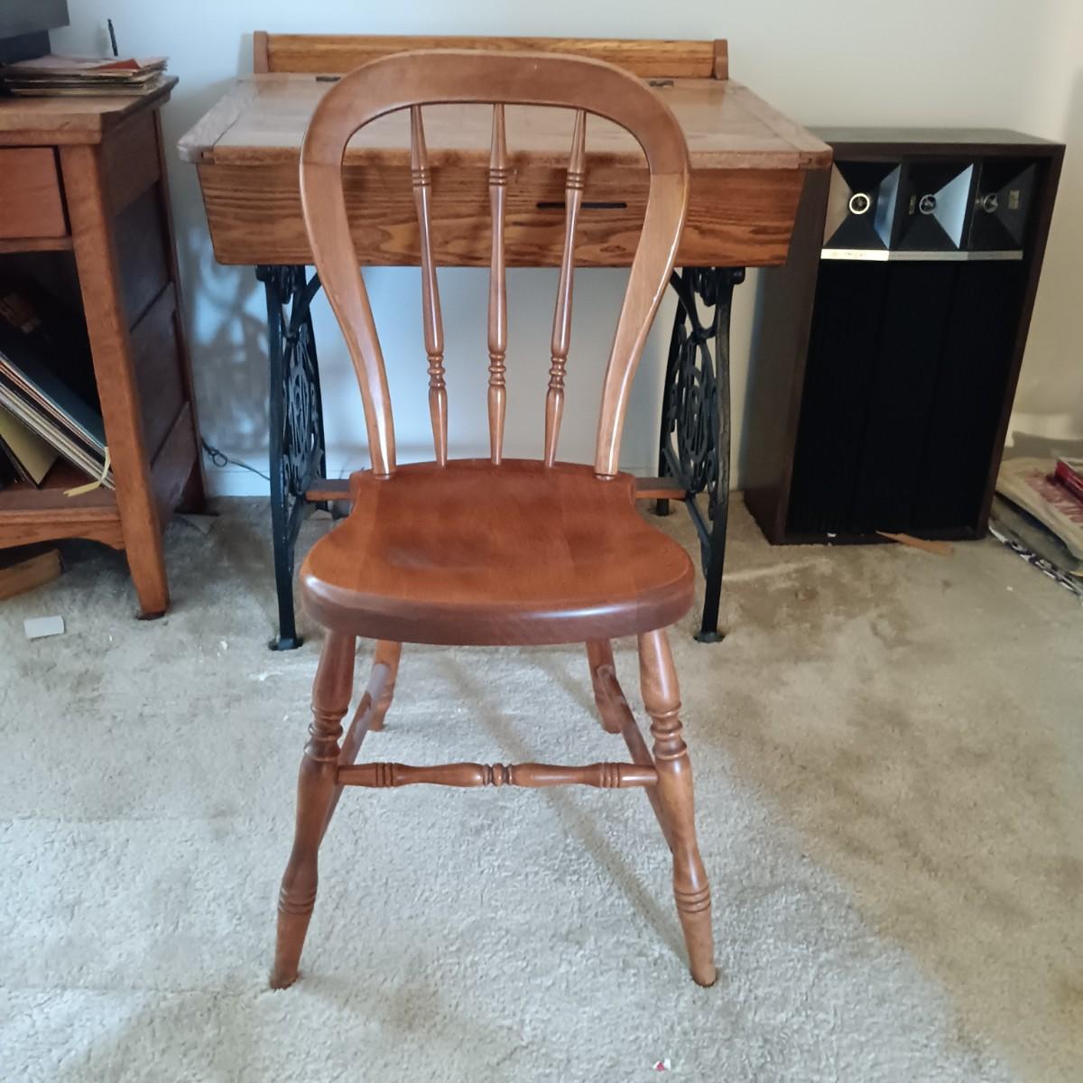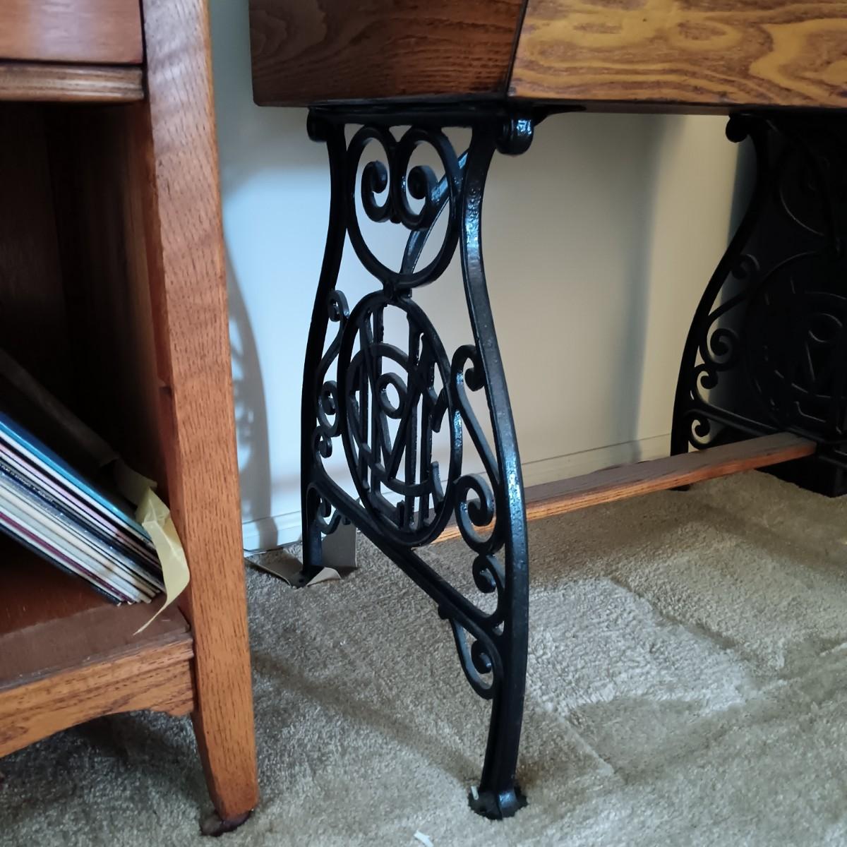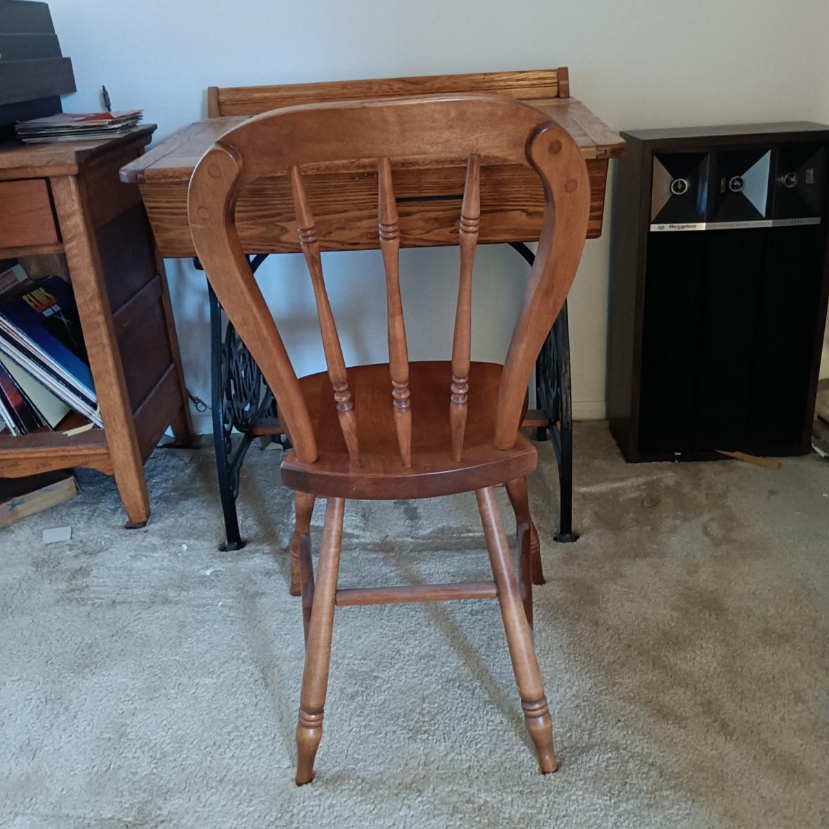 LOT 187: Vintage Oak and Cast Iron School Desk with Tell City Chairs Andover Dinette Chair 2202
