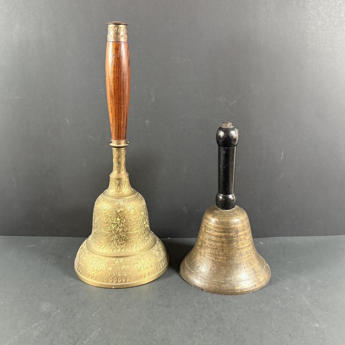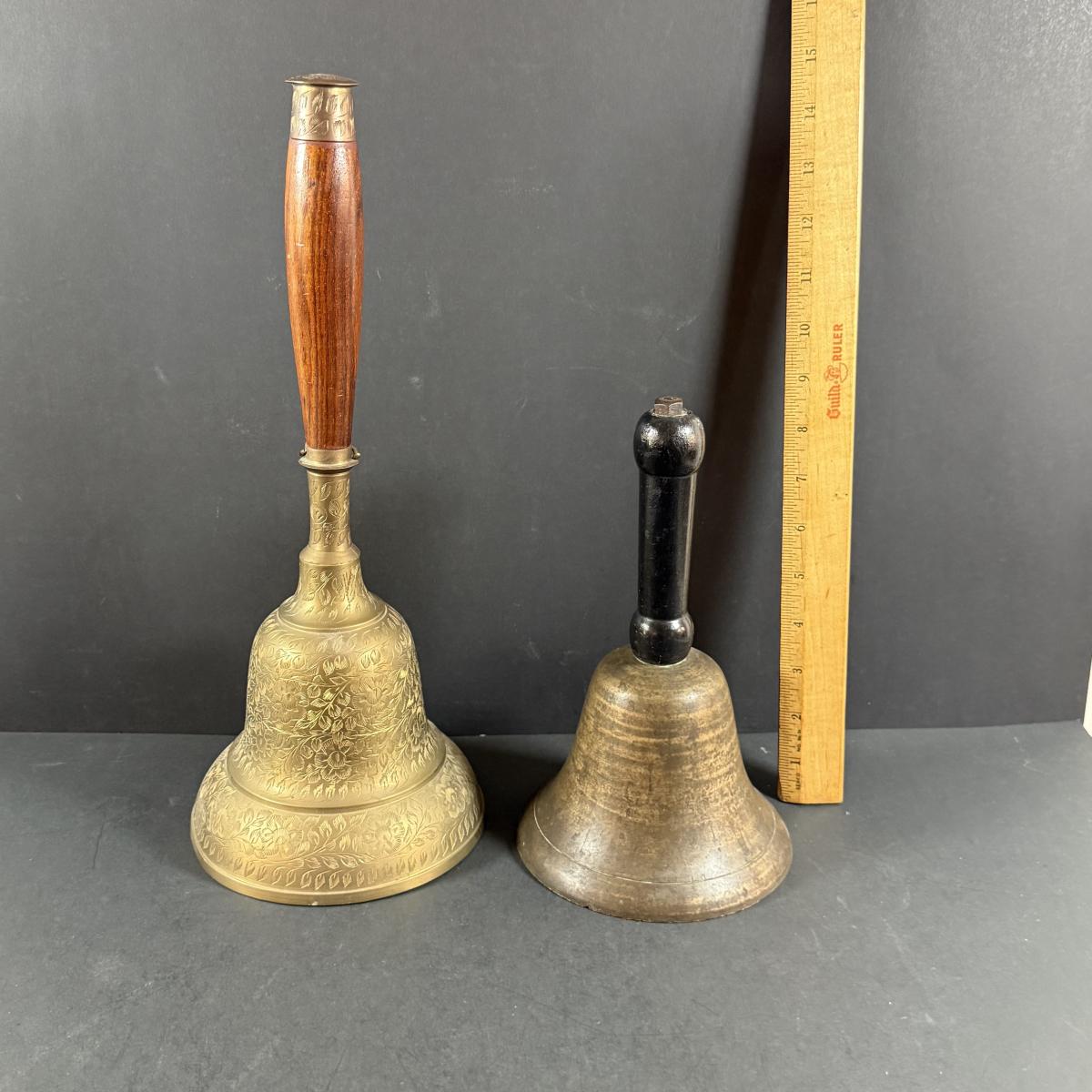 LOT 191: Set of Two Vintage/Antique Brass Bells with Wood Handles