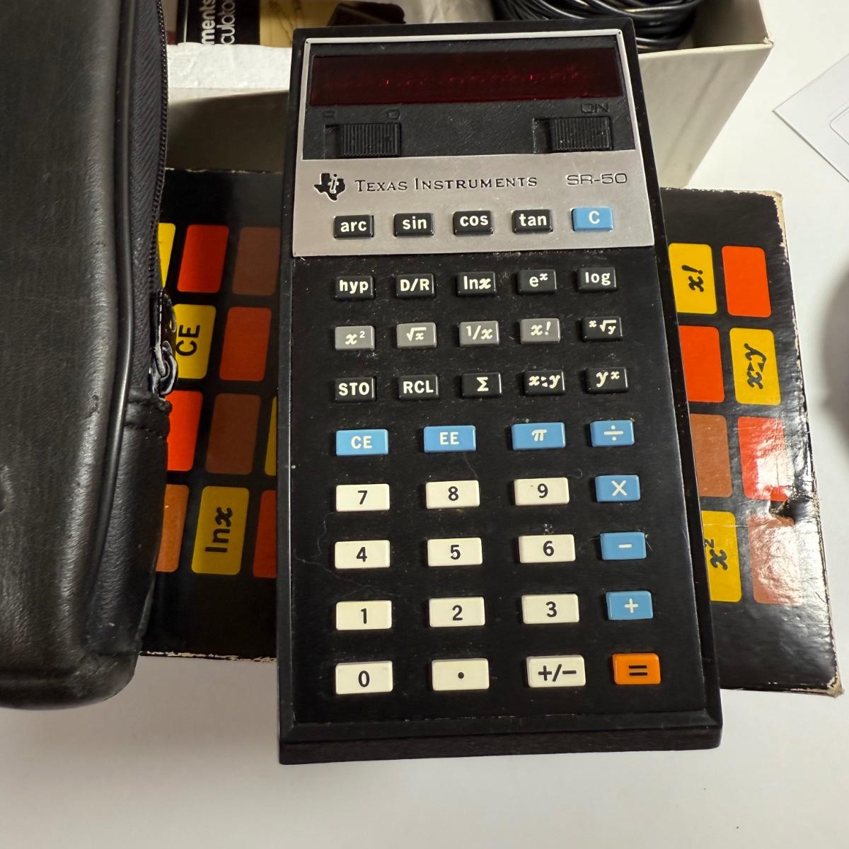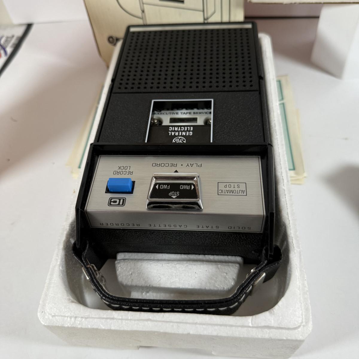 LOT 200: Vintage Electronics - GE 3-5002 Tape Recorder with Mic, Unopened GE AM/FM Compact Portable Radio 7-2800 and a Texas Instruments SR-50 Calculator
