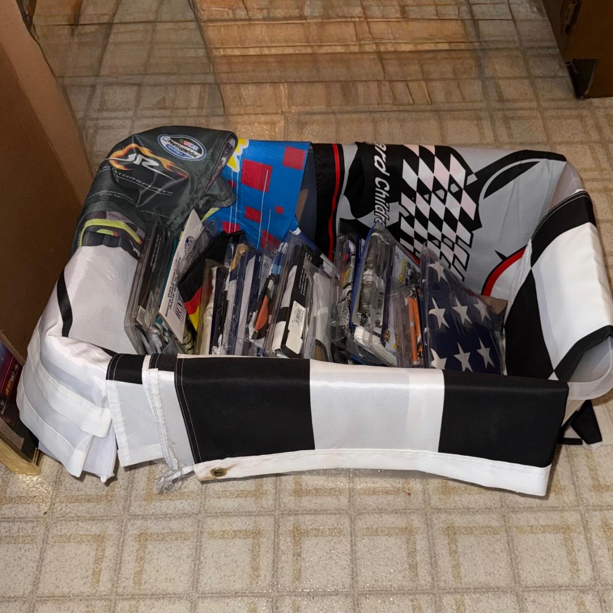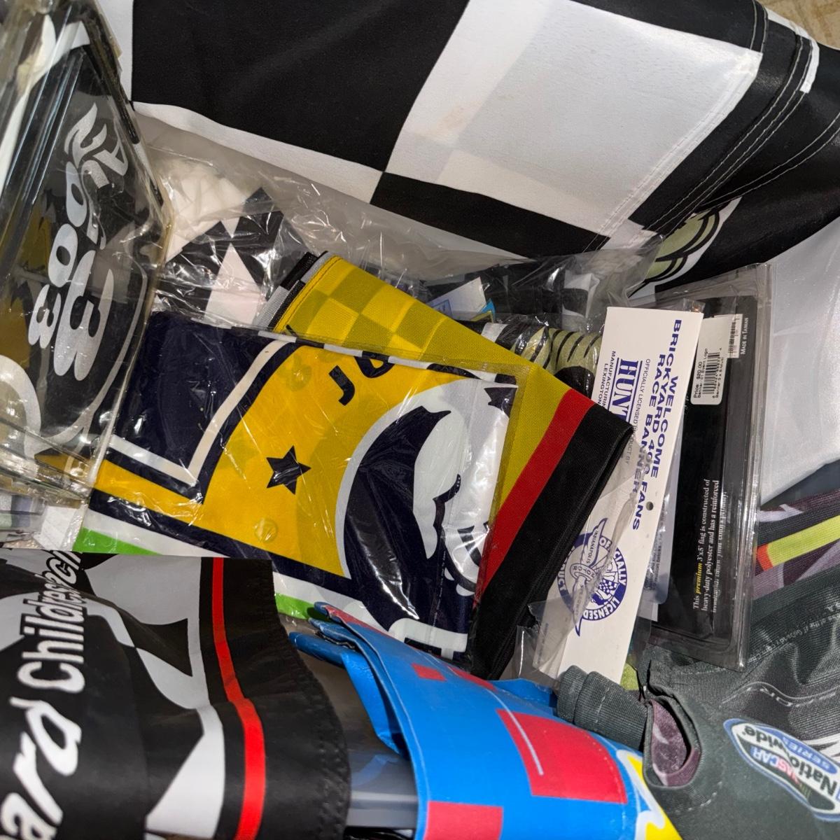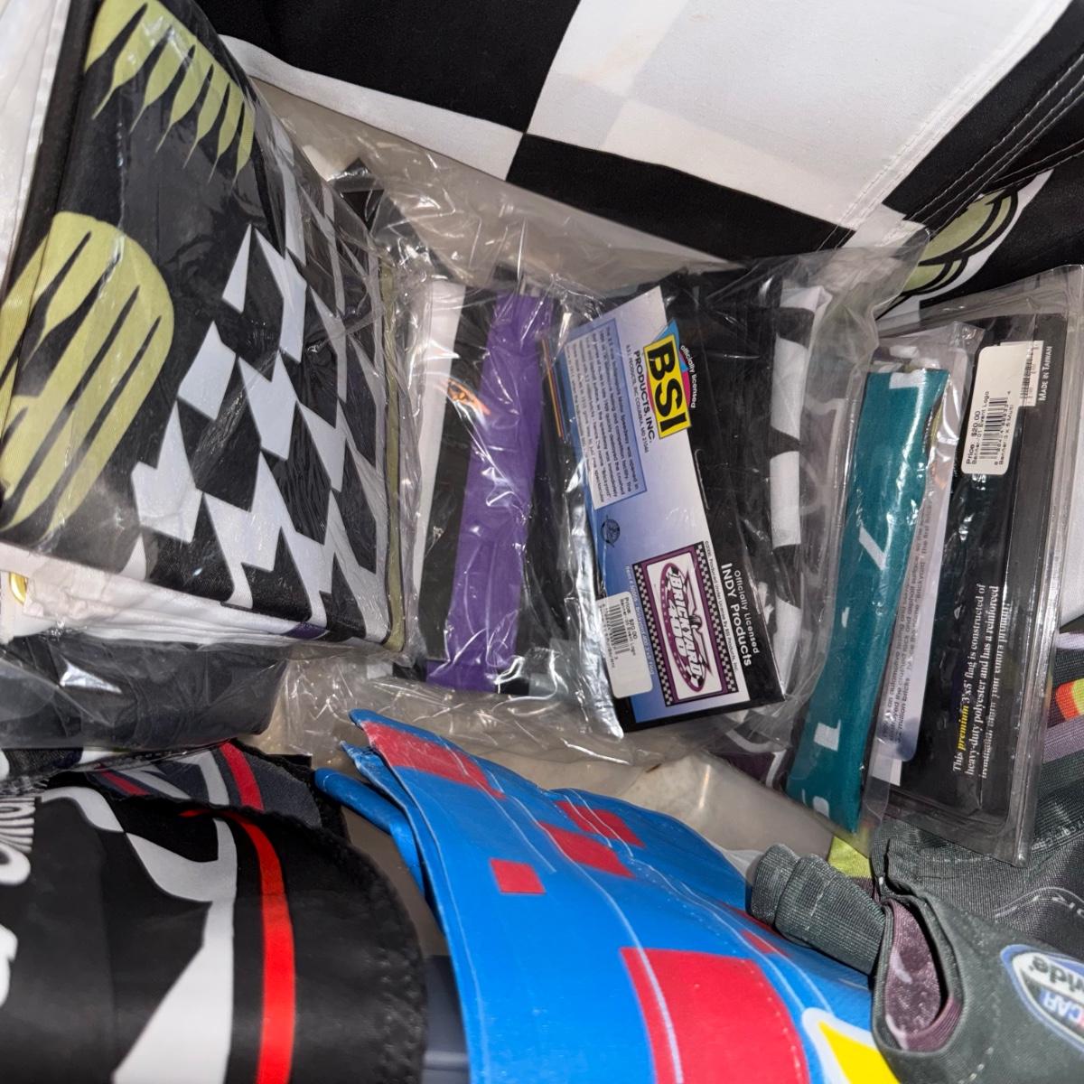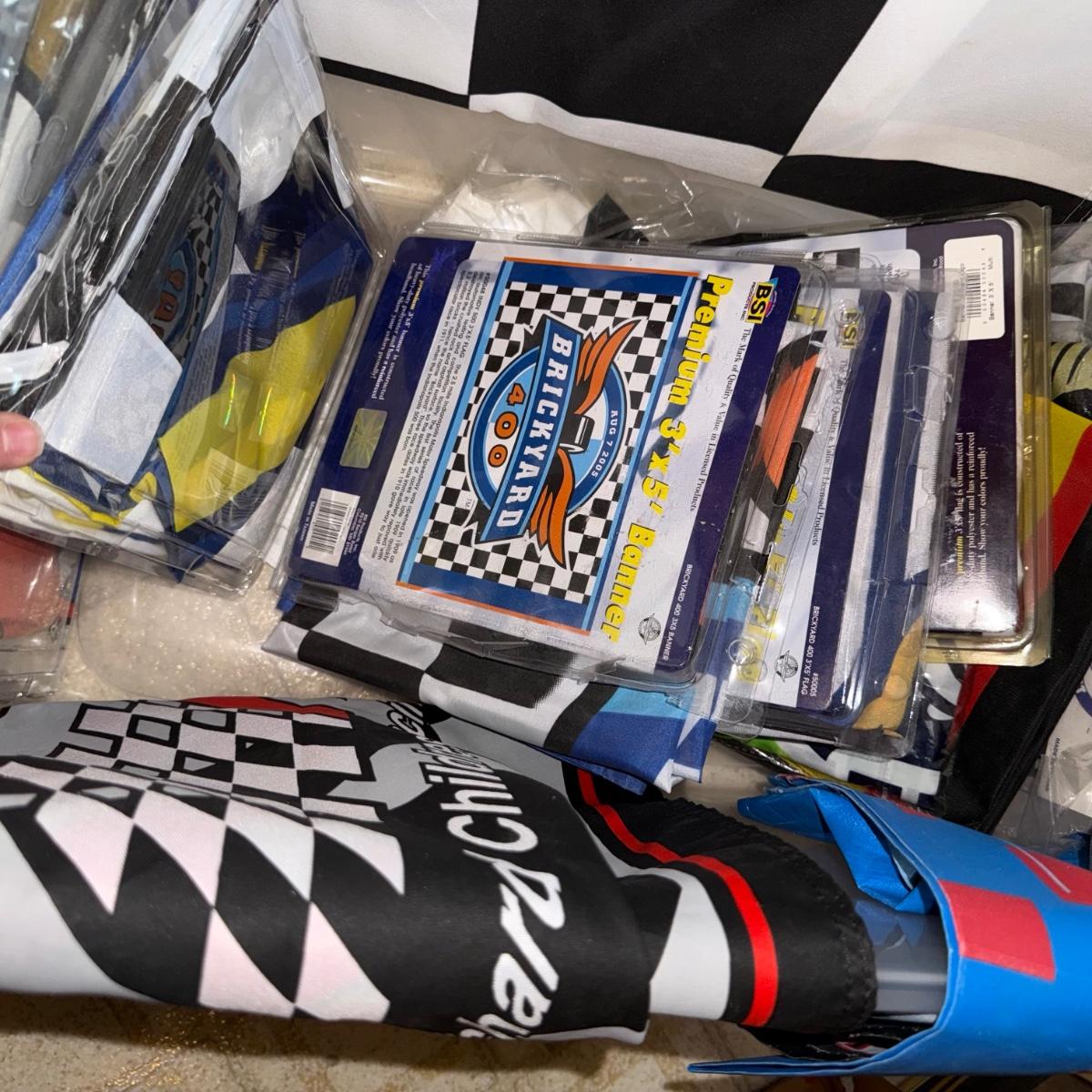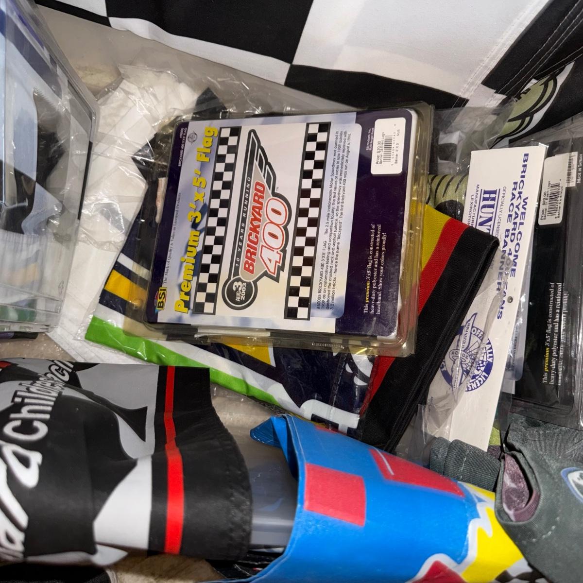 LOT 202: Bin Full of Racing Flags/Banners with Brickyard 400 and More
