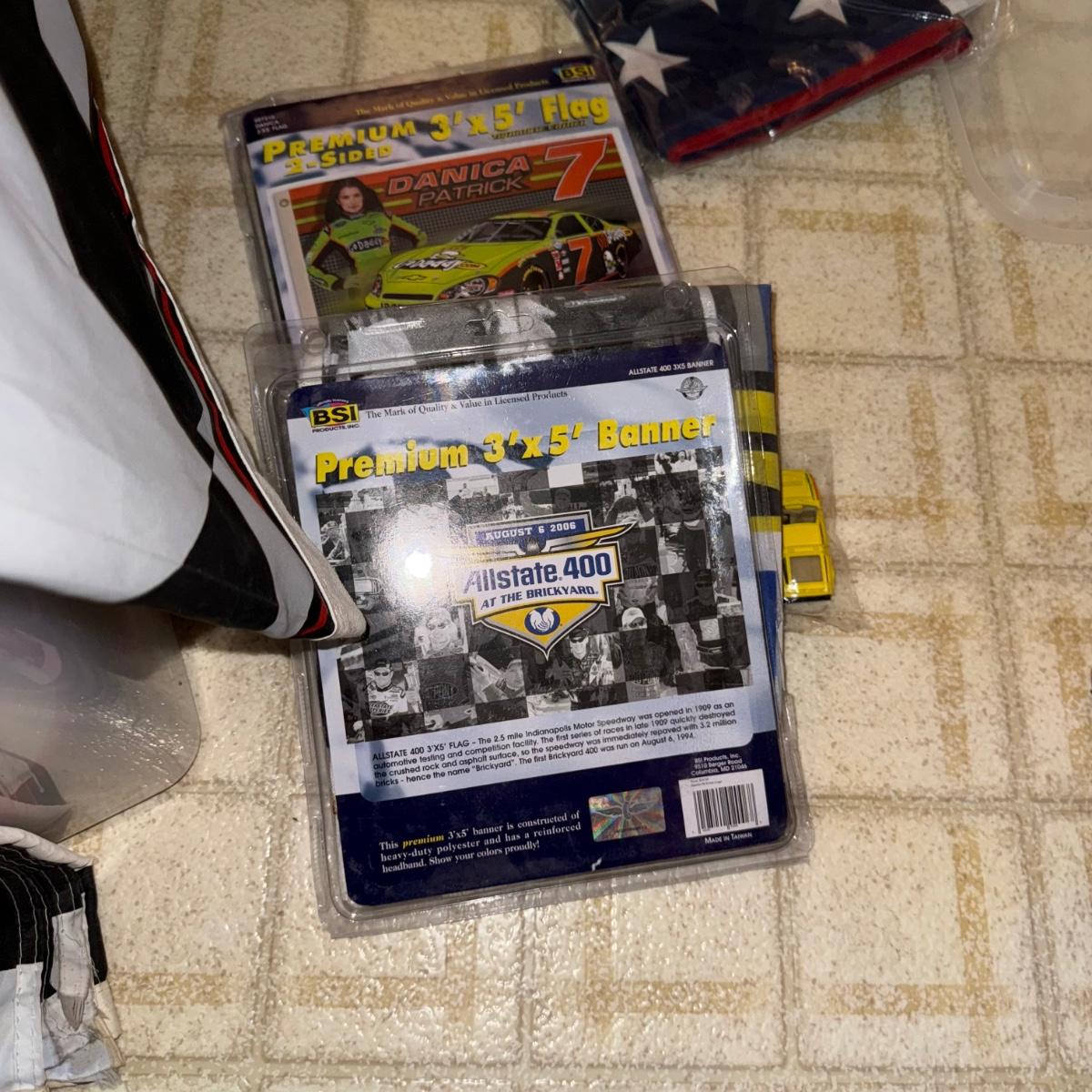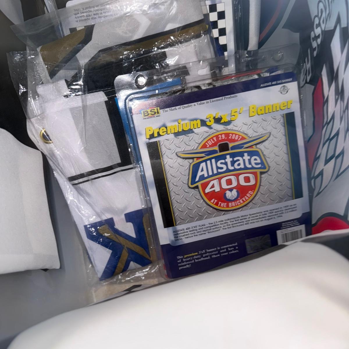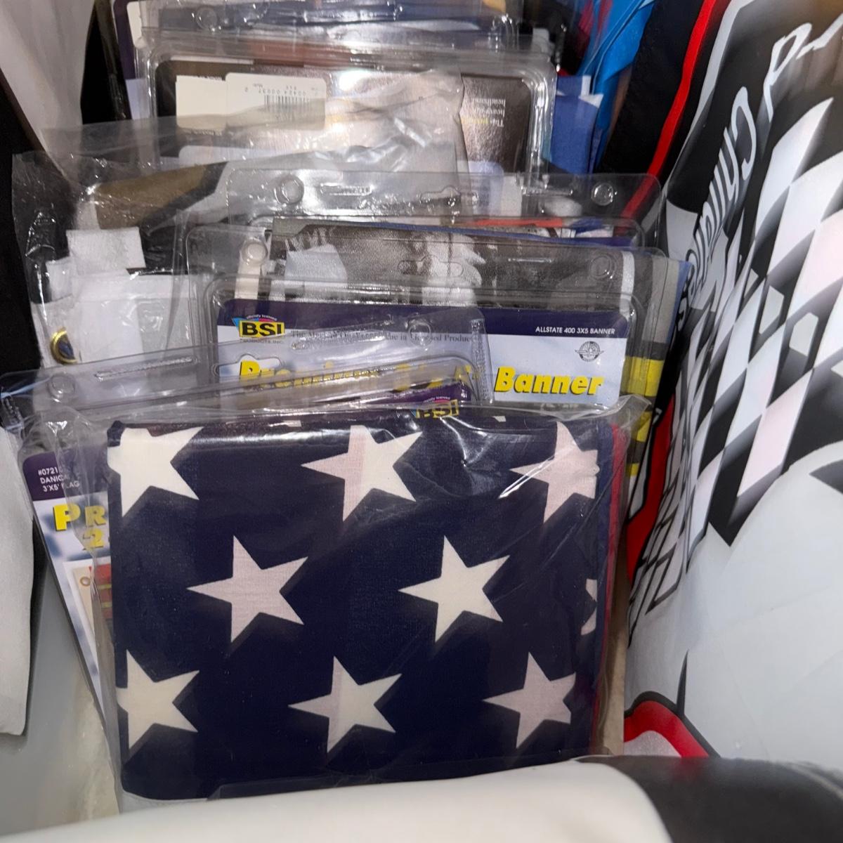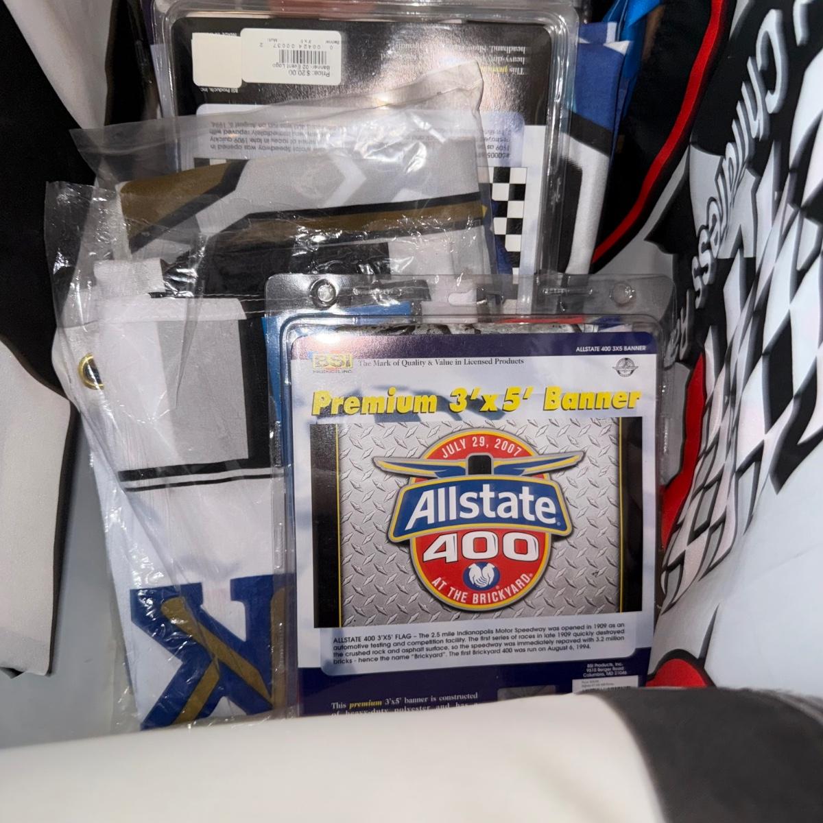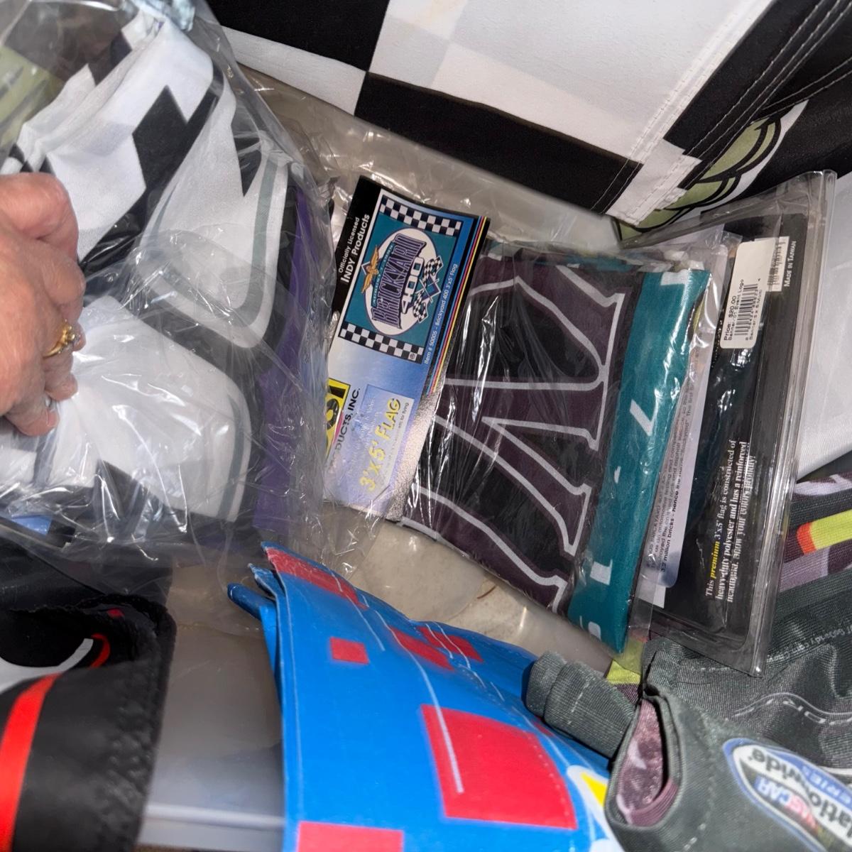 LOT 202: Bin Full of Racing Flags/Banners with Brickyard 400 and More
