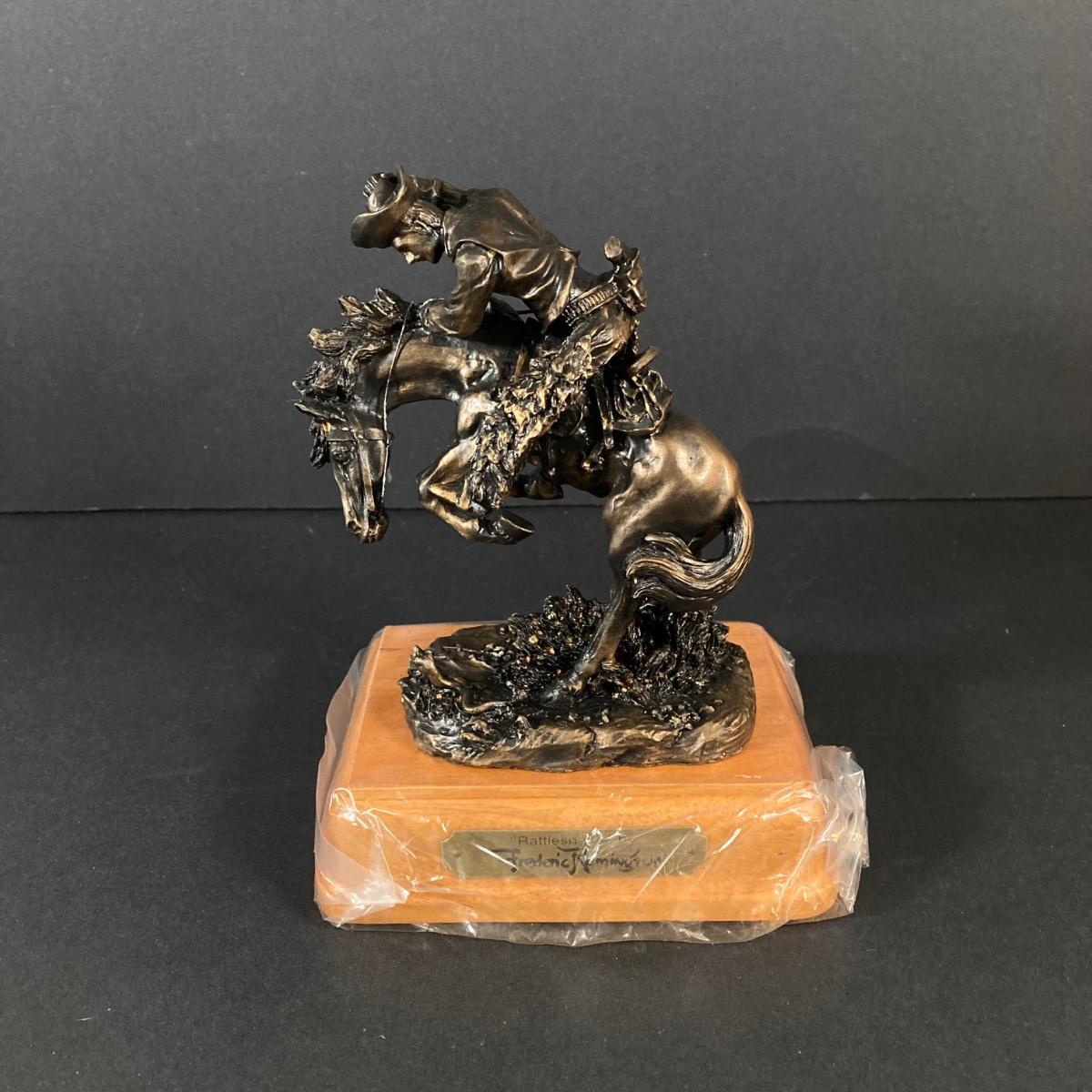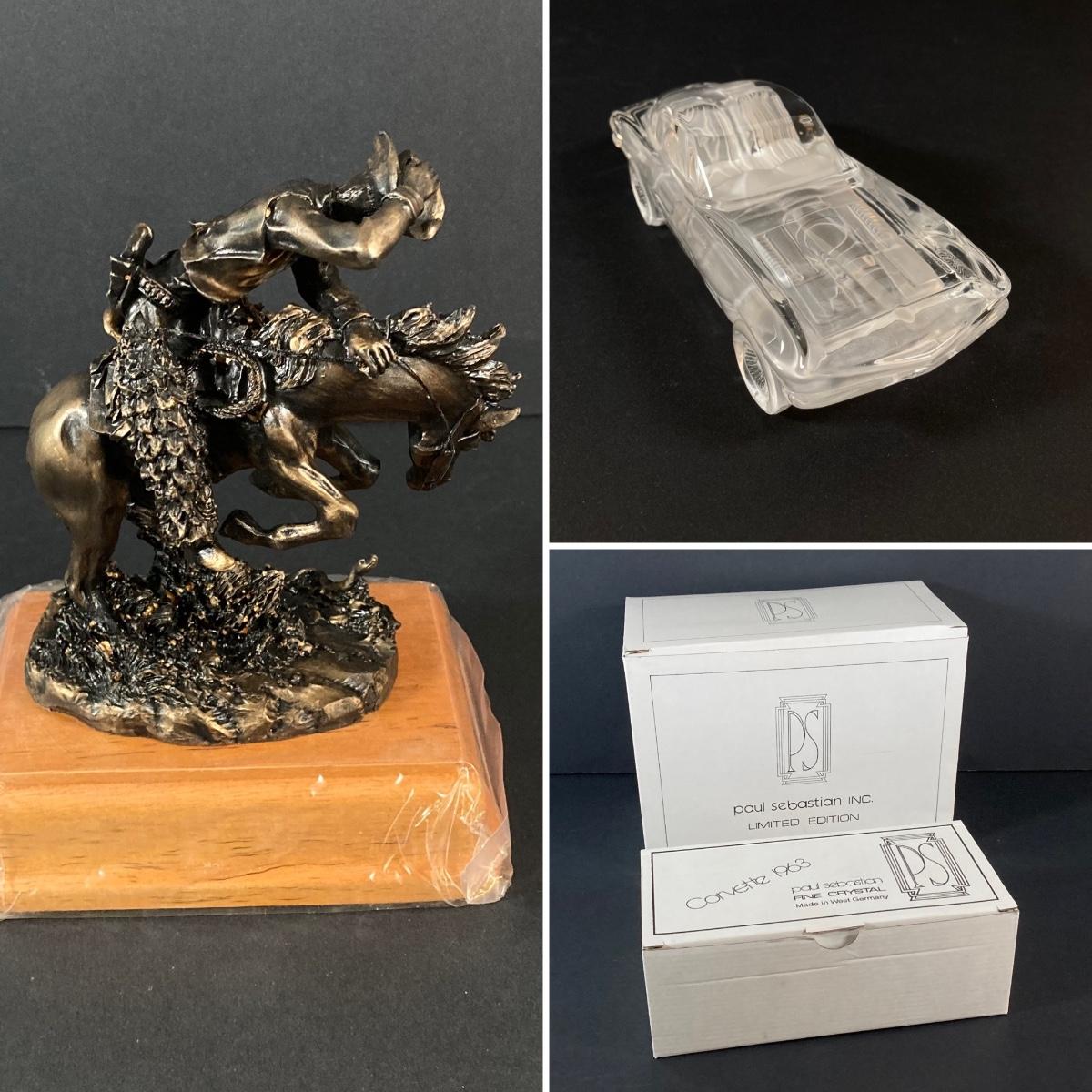 LOT 219: Paul Sebastian Collectible- 1963 Fine Crystal Corvette with Original Box and "Rattlesnake" by Frederic Remington Sculpture Horse Cowboy Statue