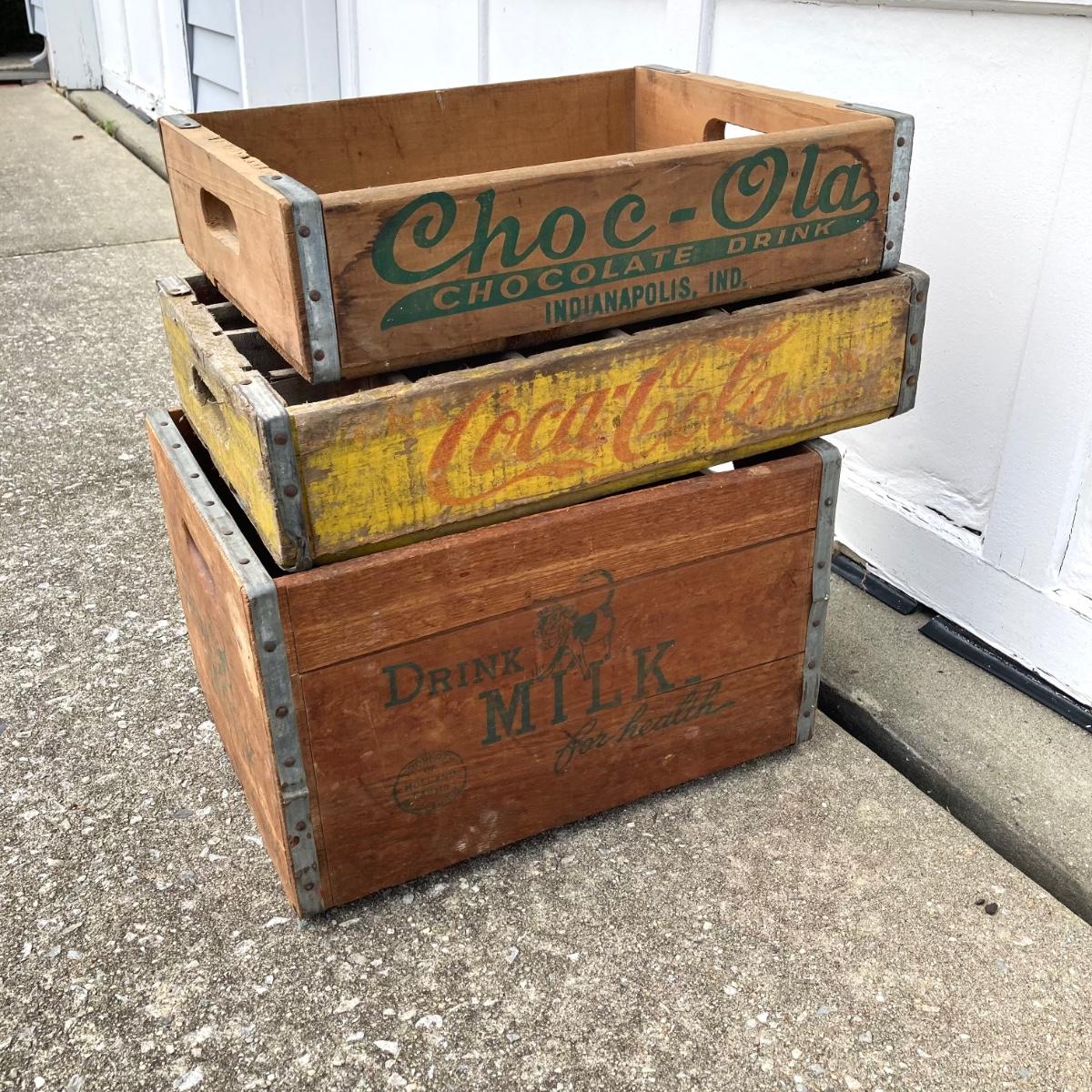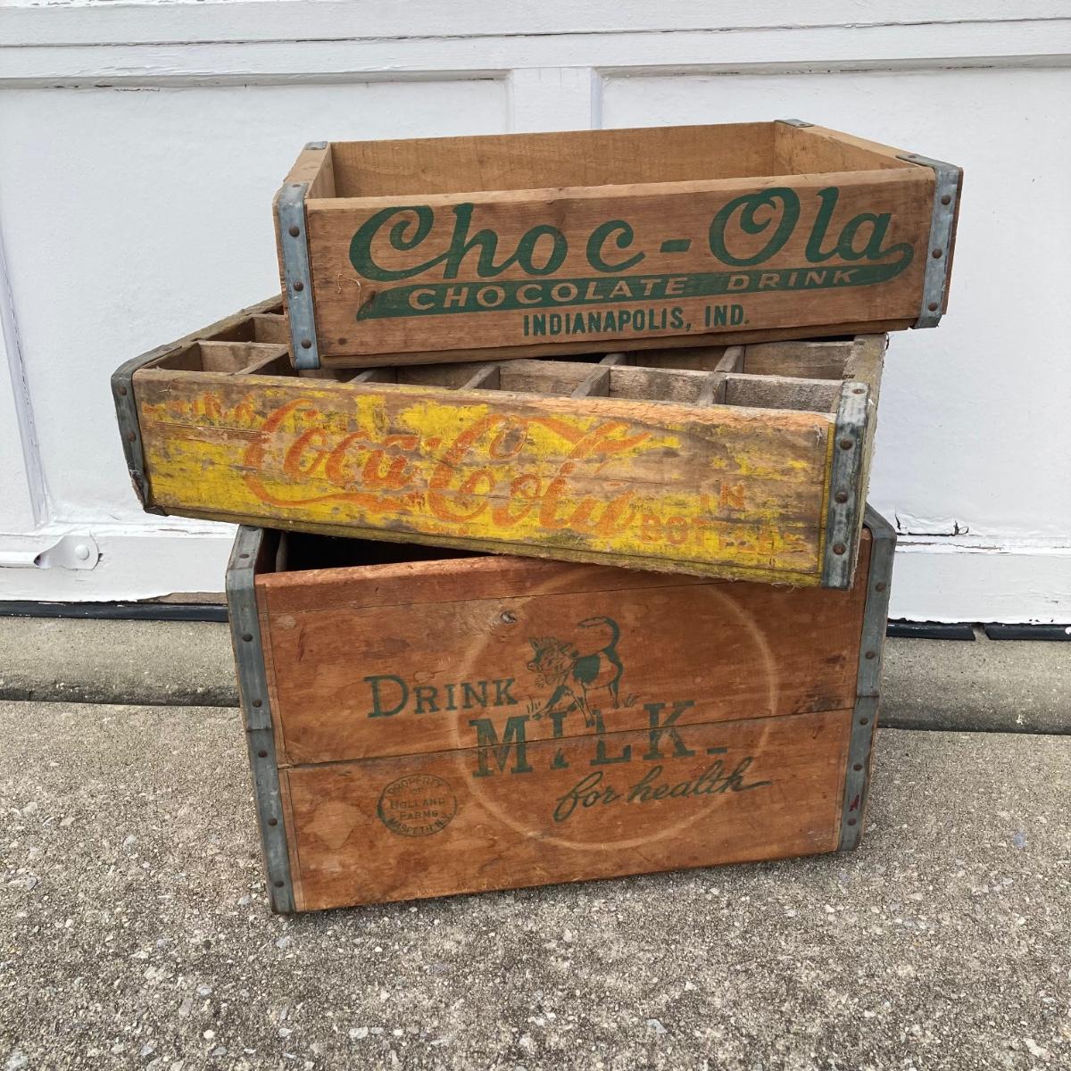 LOT 224: Three Vintage Wooden Boxes / Crates - Choc-Ola Chocolate Drink, Coca-Cola and Drink Milk for Health