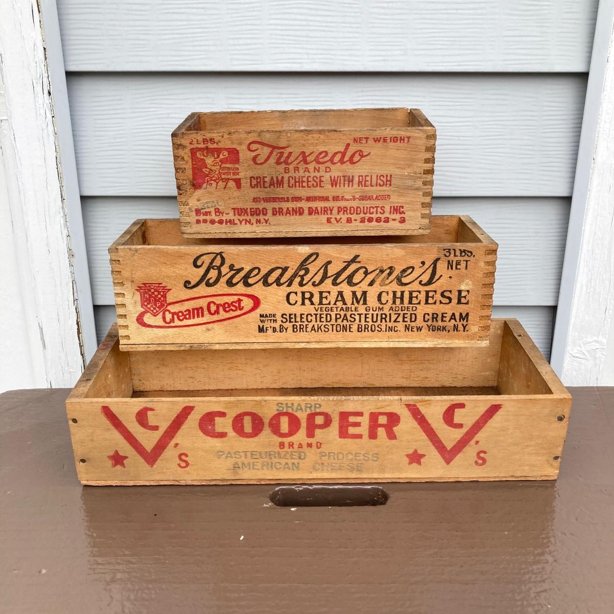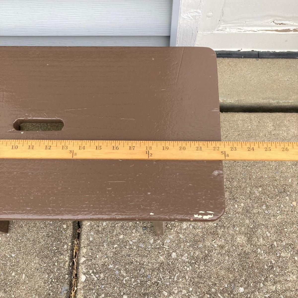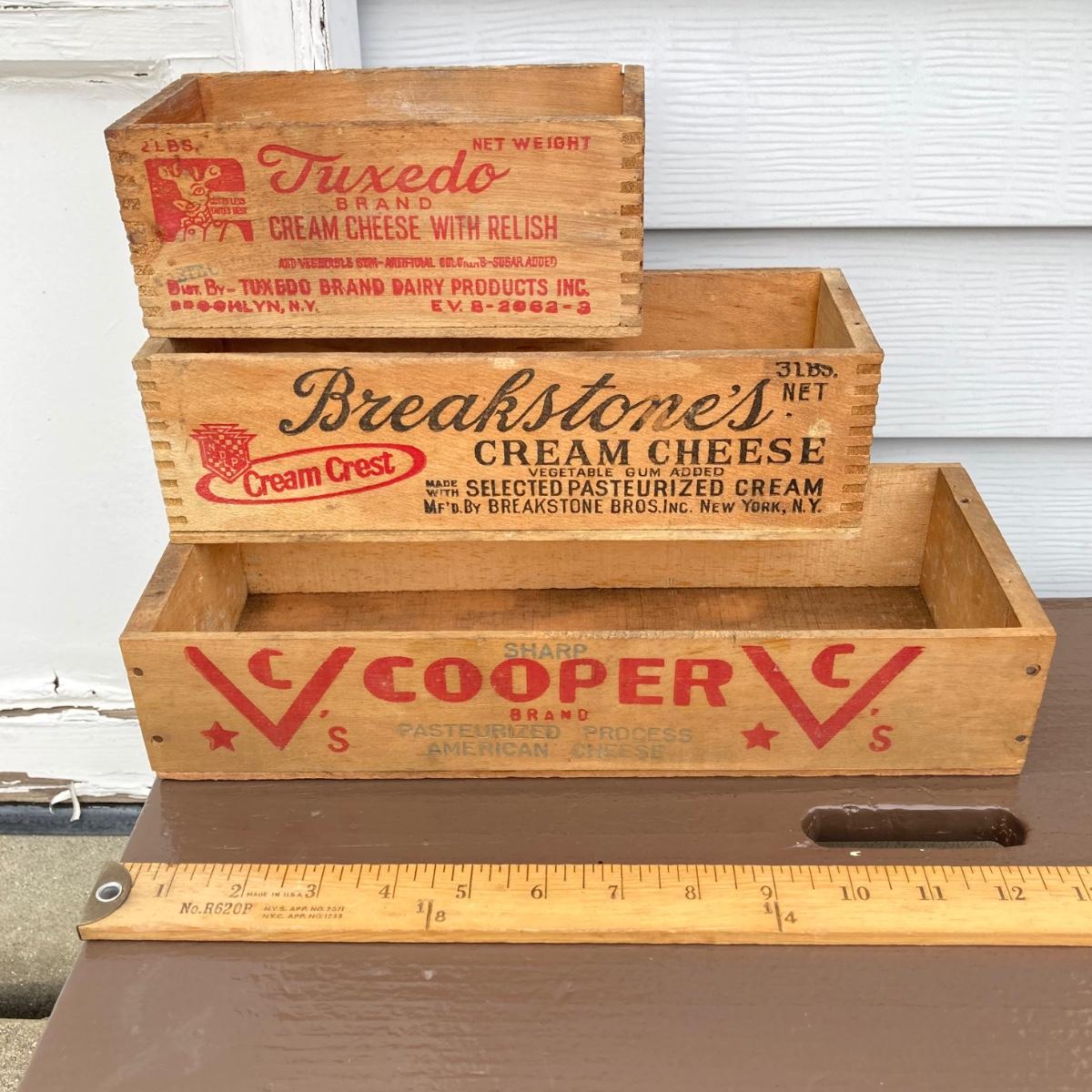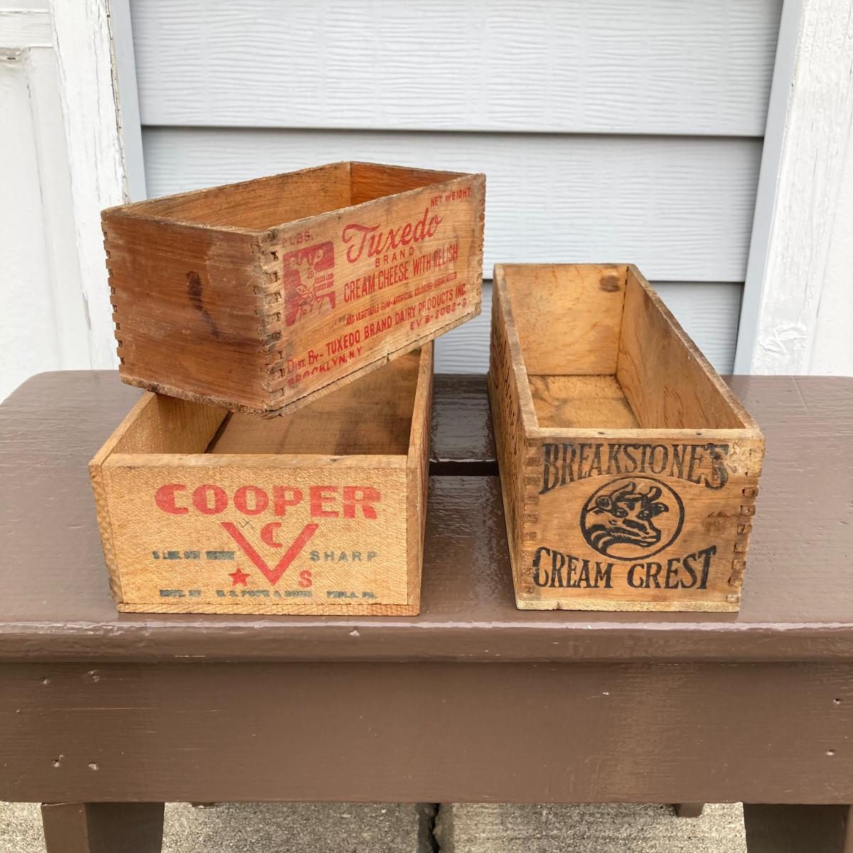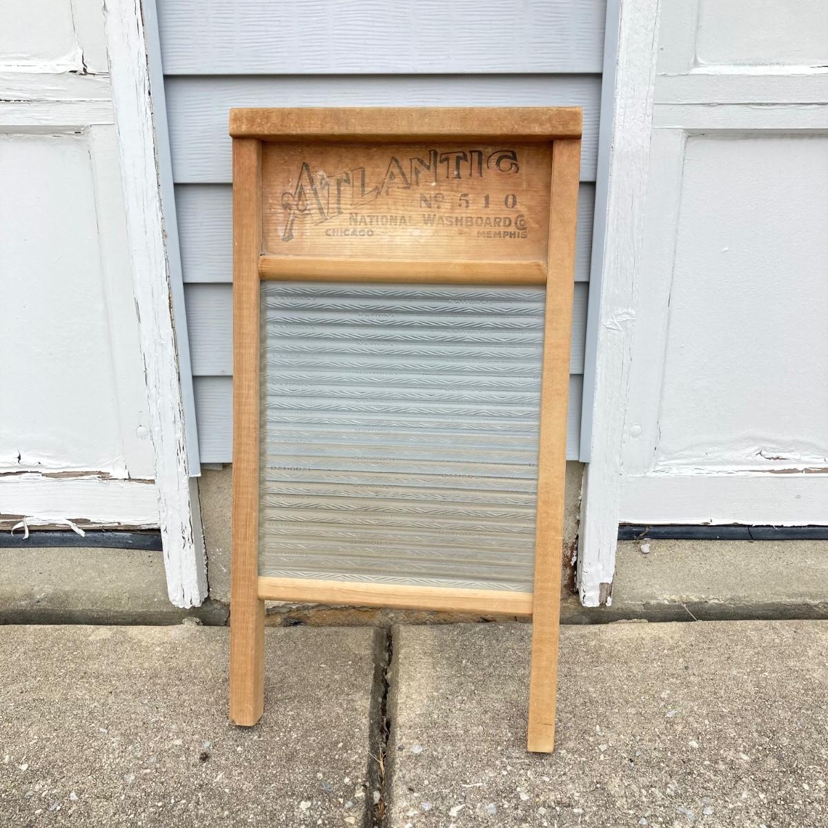 LOT 225: Atlantic National Washboard No. 510, Three Wooden Cheese Boxes, Painted Brown Step Stool / Bench and Pair of Cast Iron Flat Irons