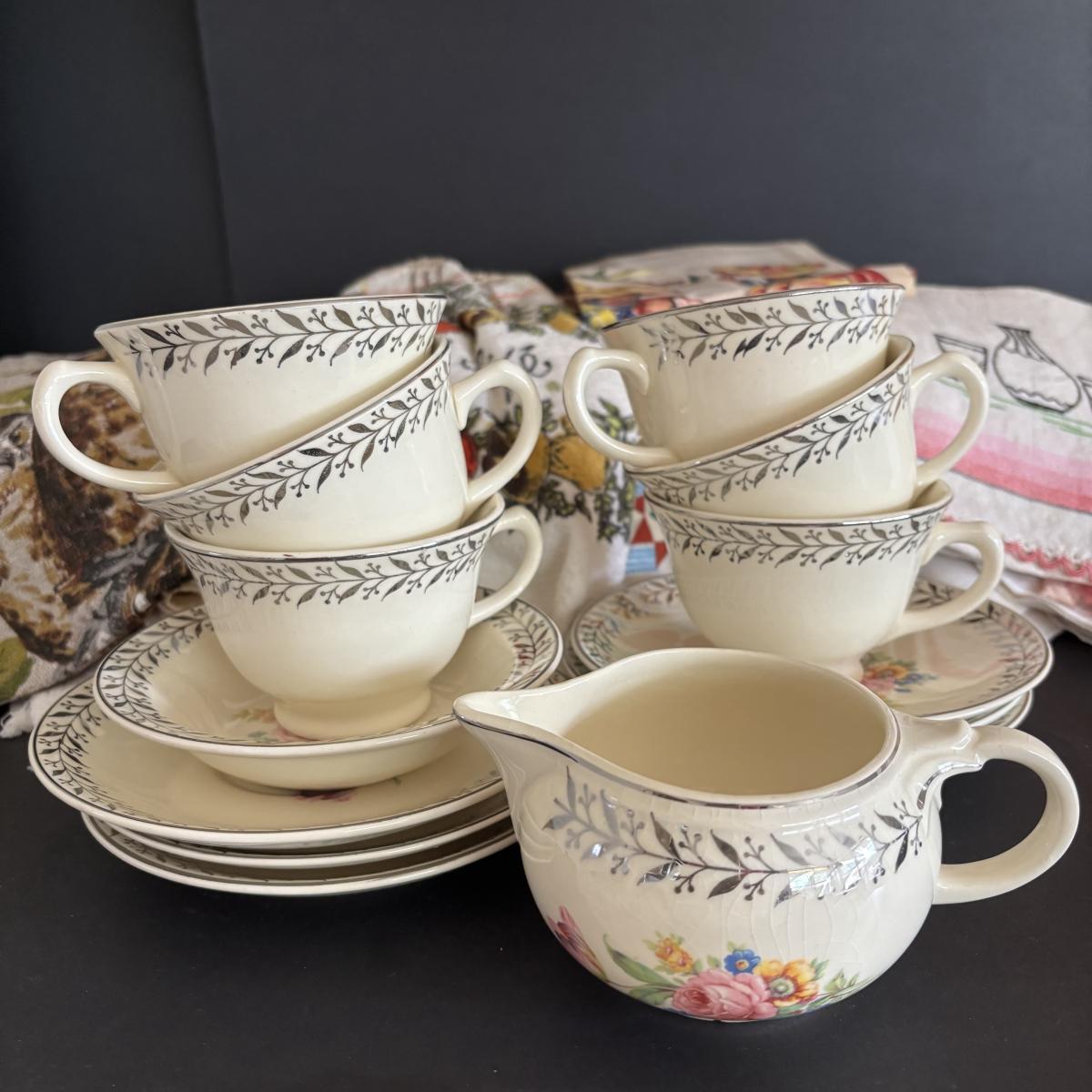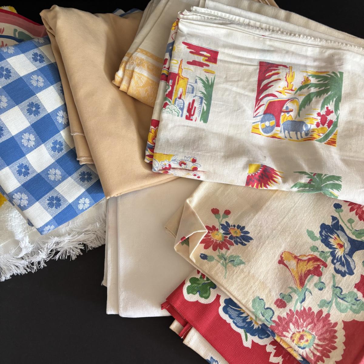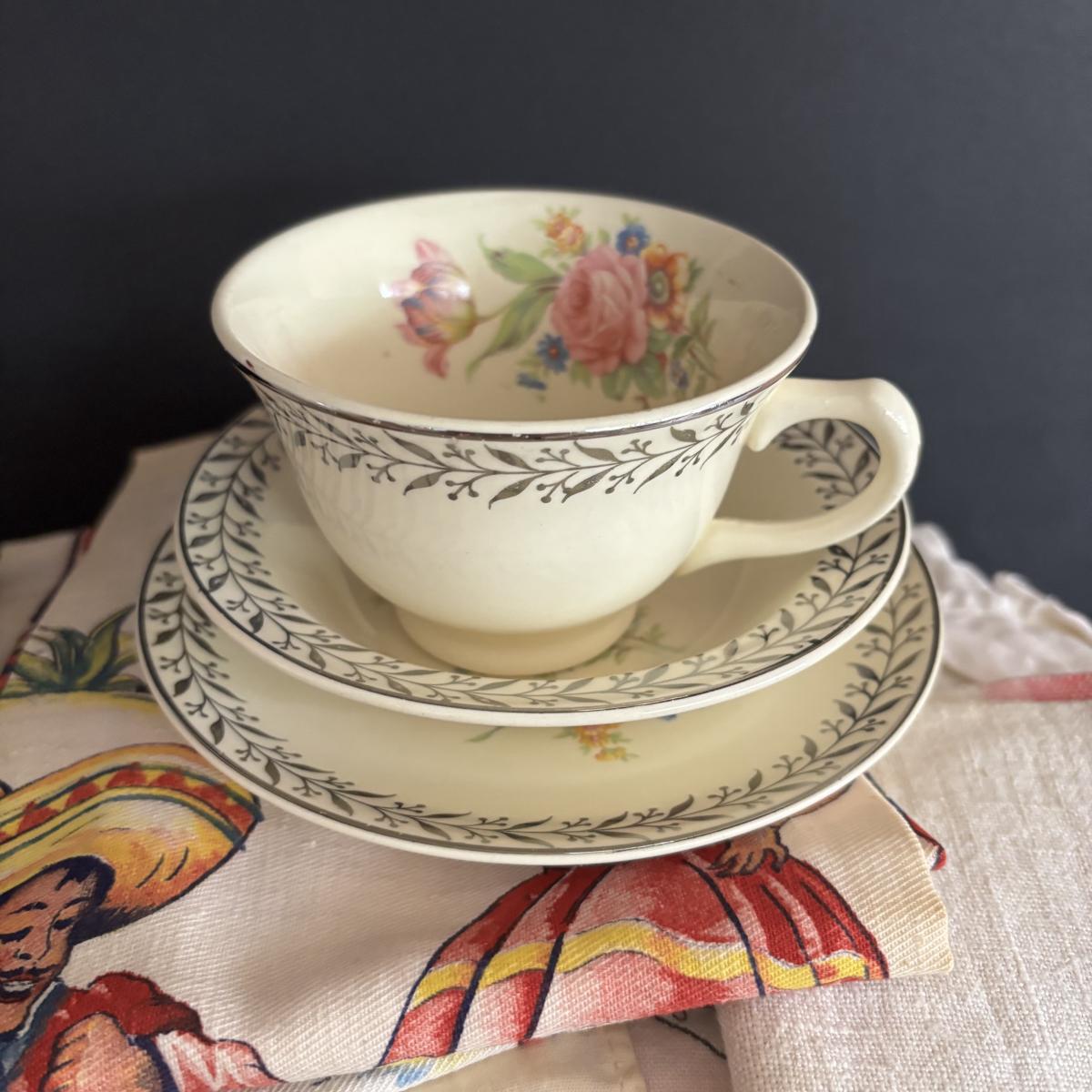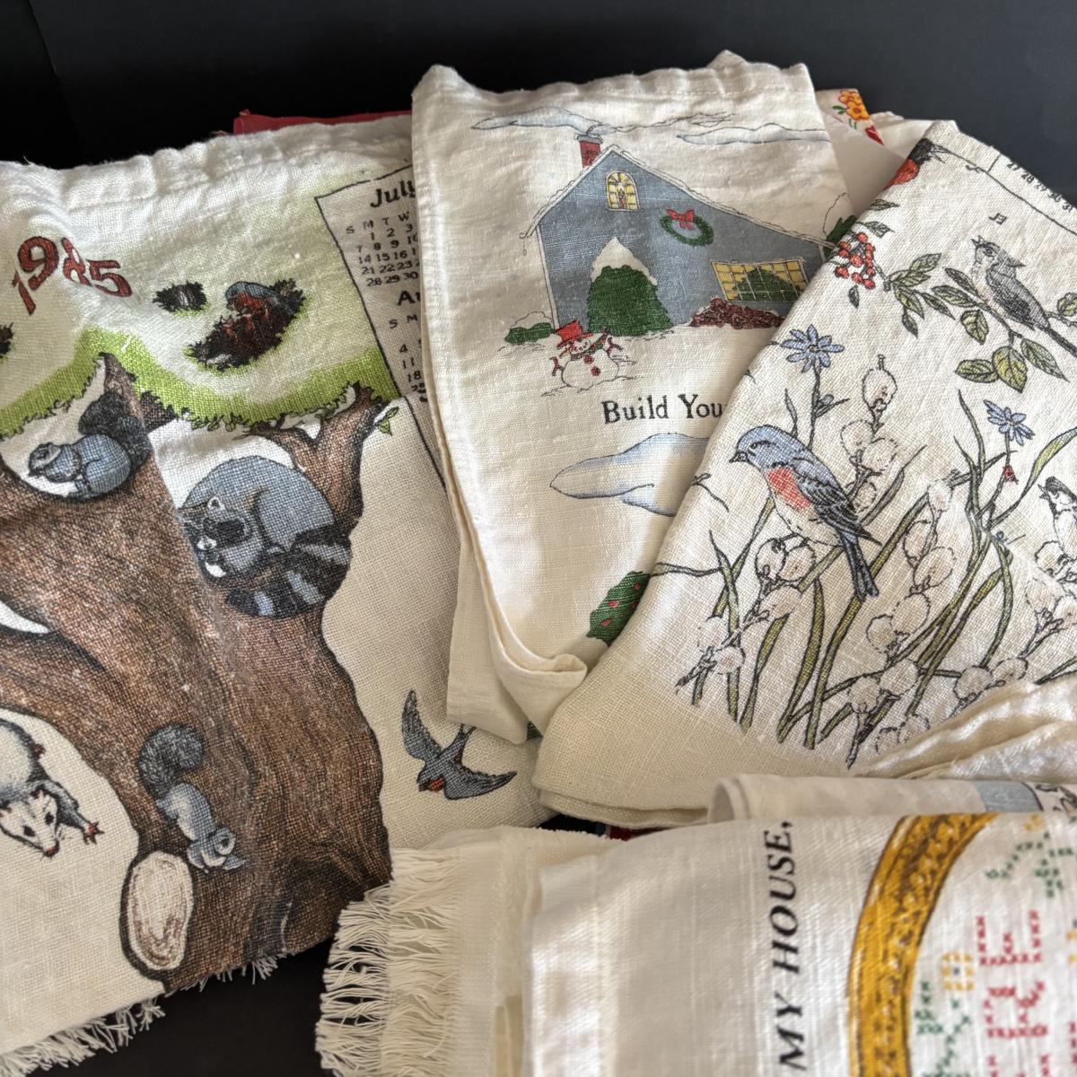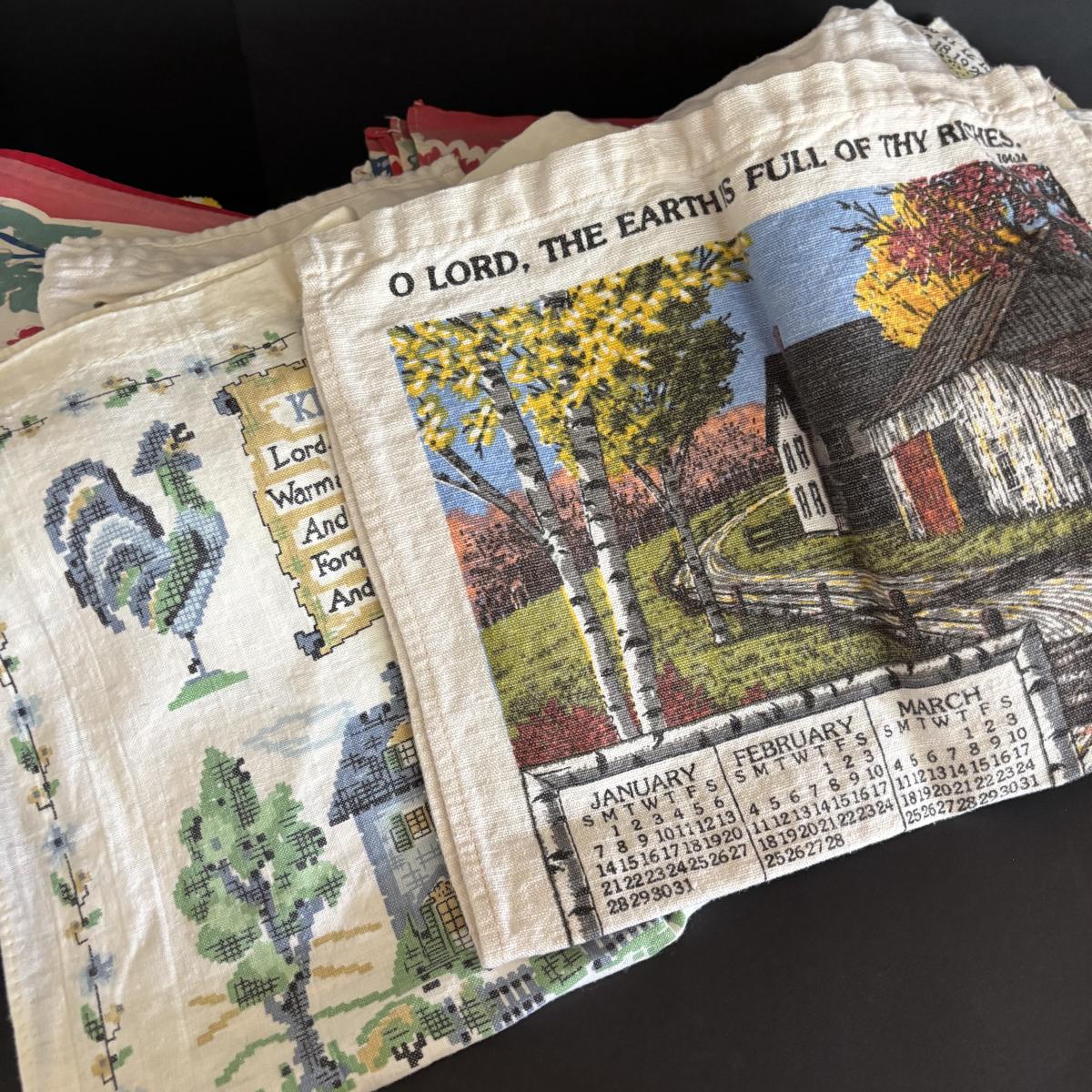 LOT 244: Vintage Kitchen Calendar Towel & Linens, Ice Trays along with Taylor Smith Taylor Dishware