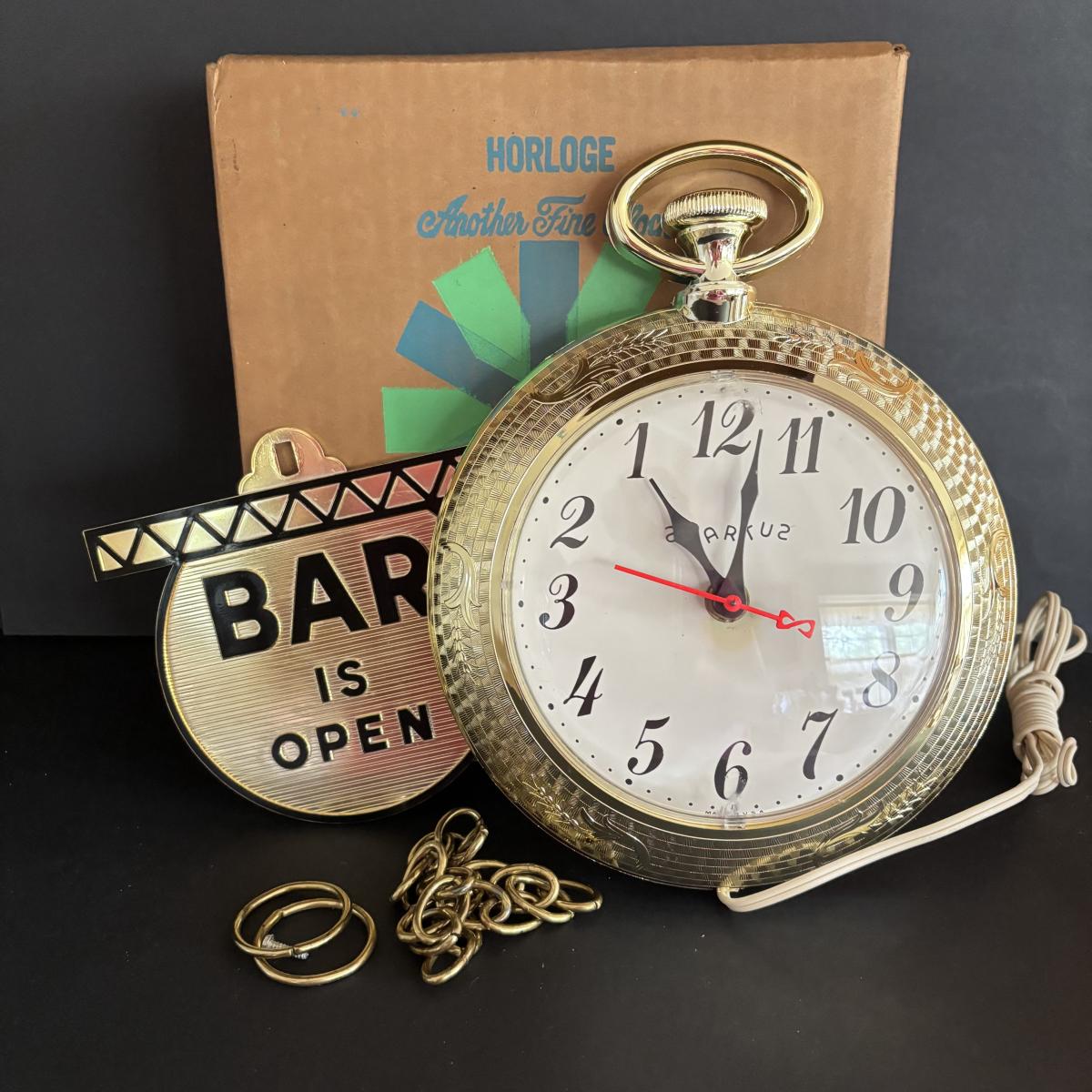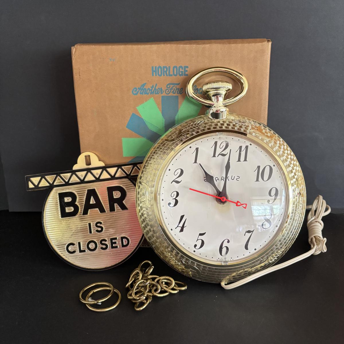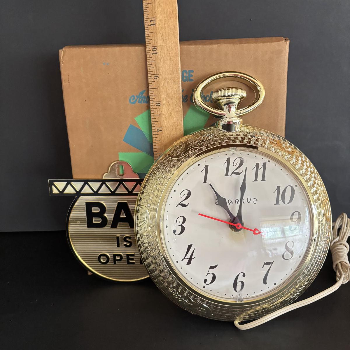 LOT 245: Vintage Spartus Clock w/Original Packaging, NIP Game Day Party Pack, Man Cave Sign & More