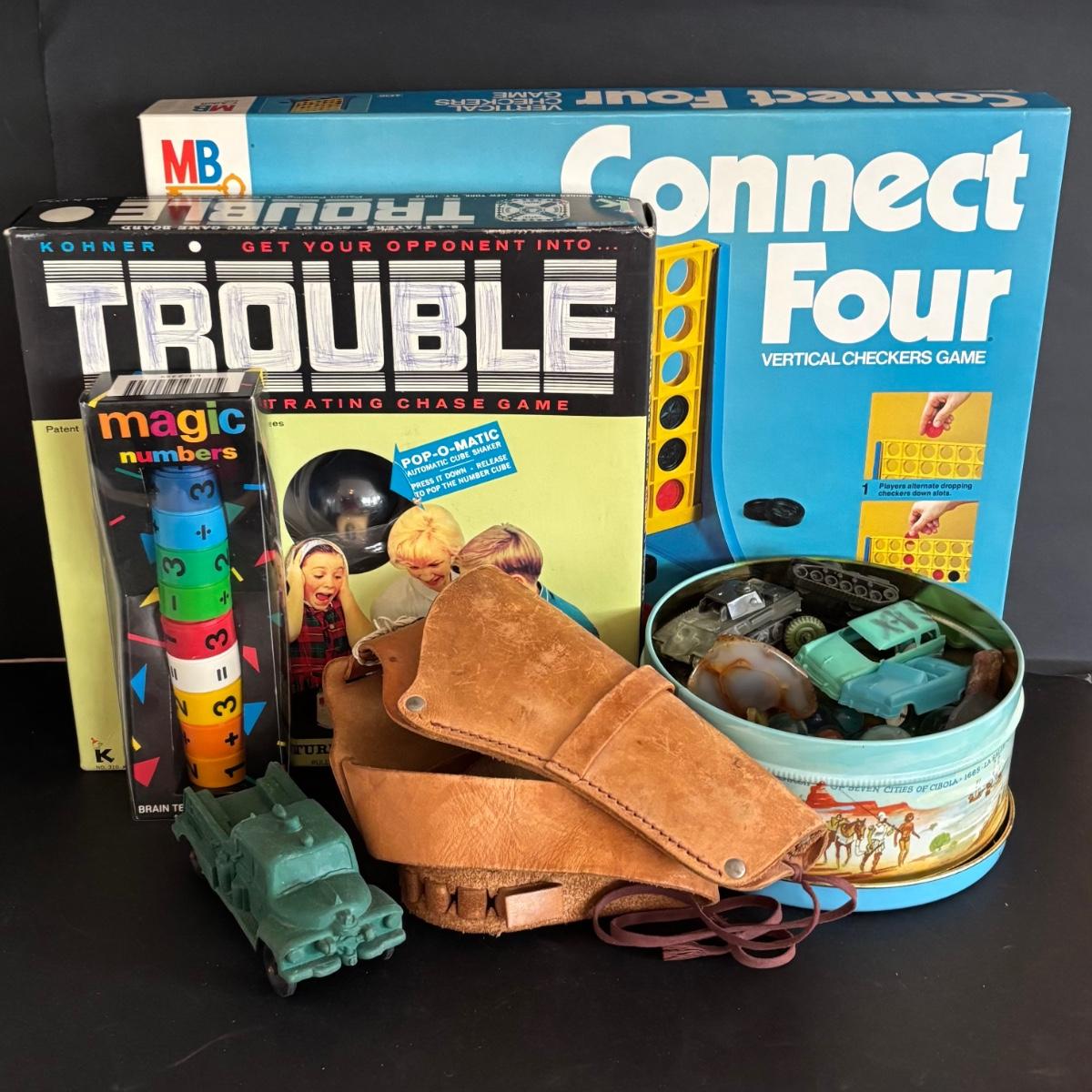 LOT 500: Vintage Fanner 50 Holster, Mables, Cars, Trouble, Connect Four, Magic Numbers