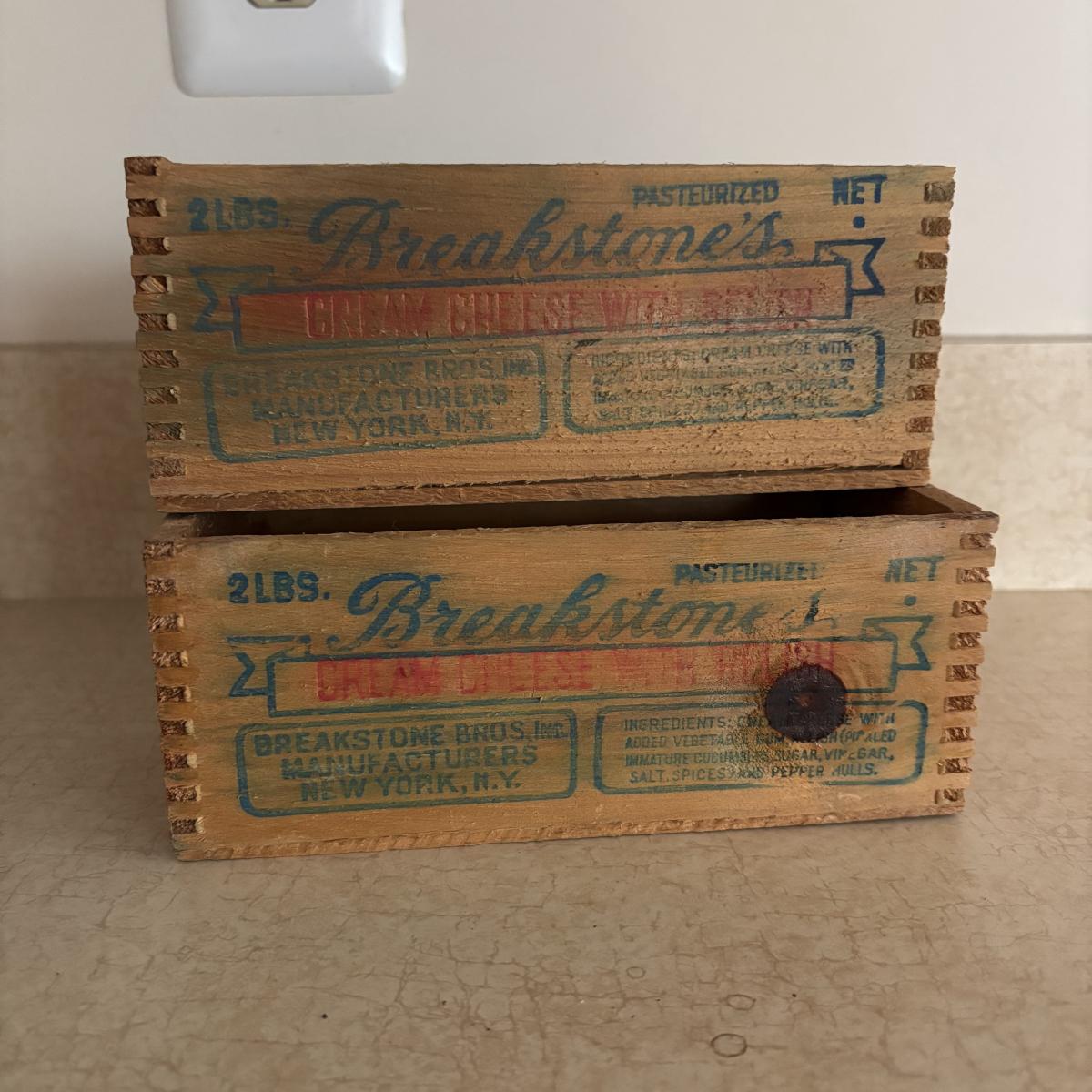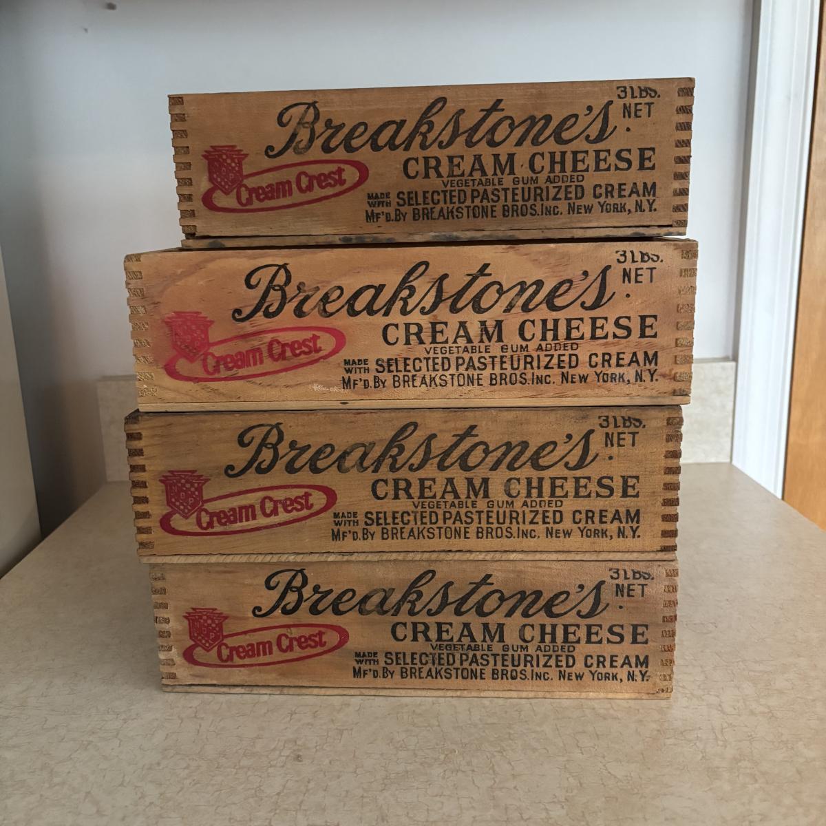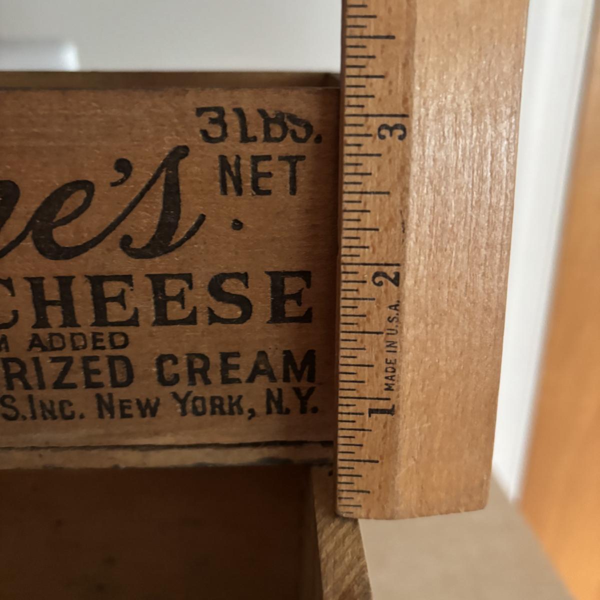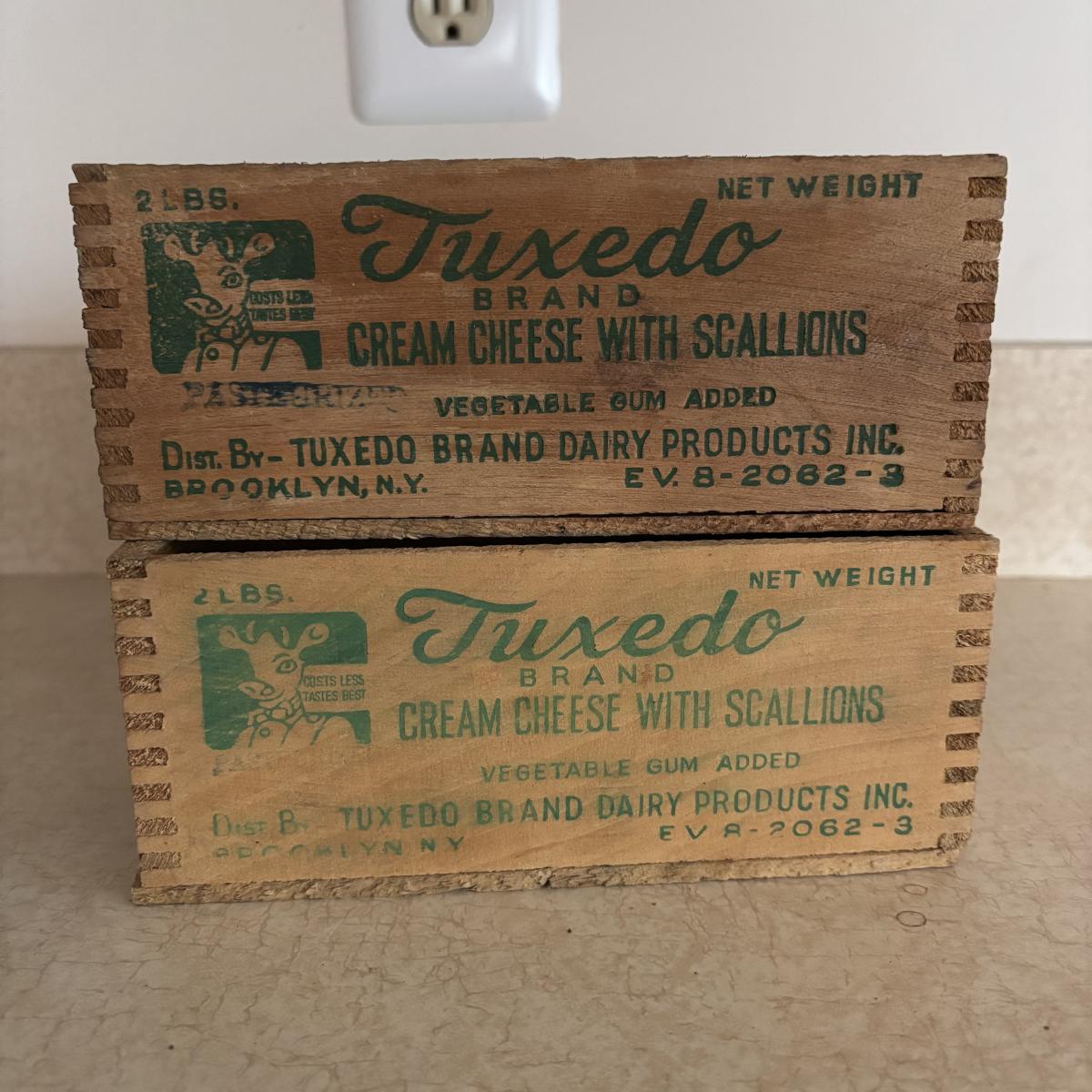 LOT 248: Vintage Wood Boxes: Cooper Sharp Cheese, Breakstone's Cream Cheese, Tuxedo Brand Cream Cheese
