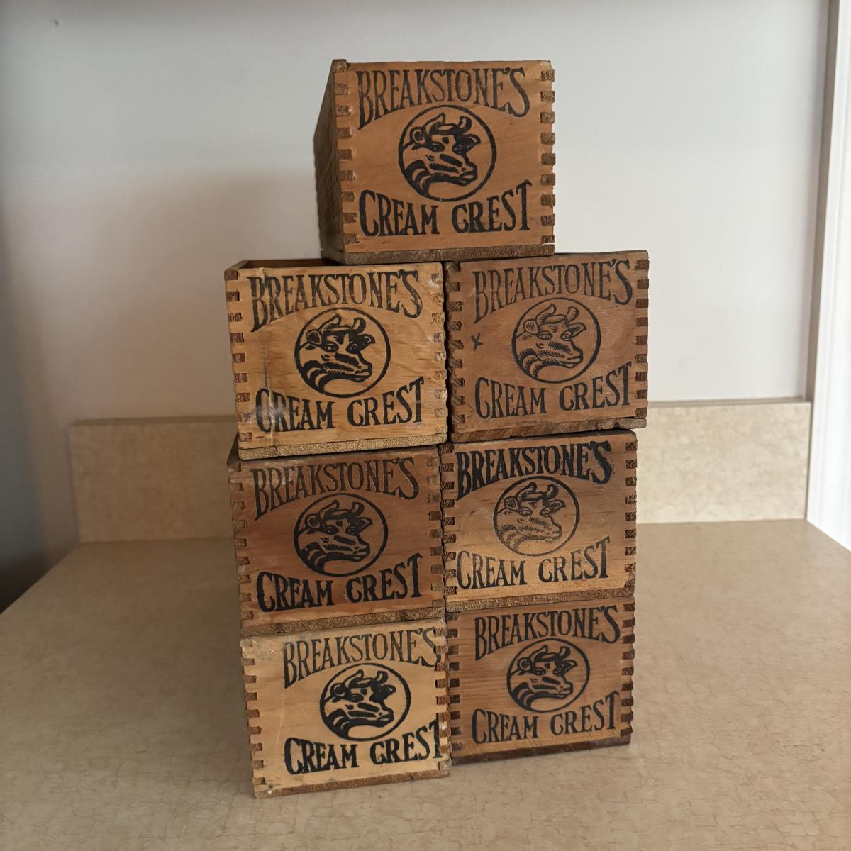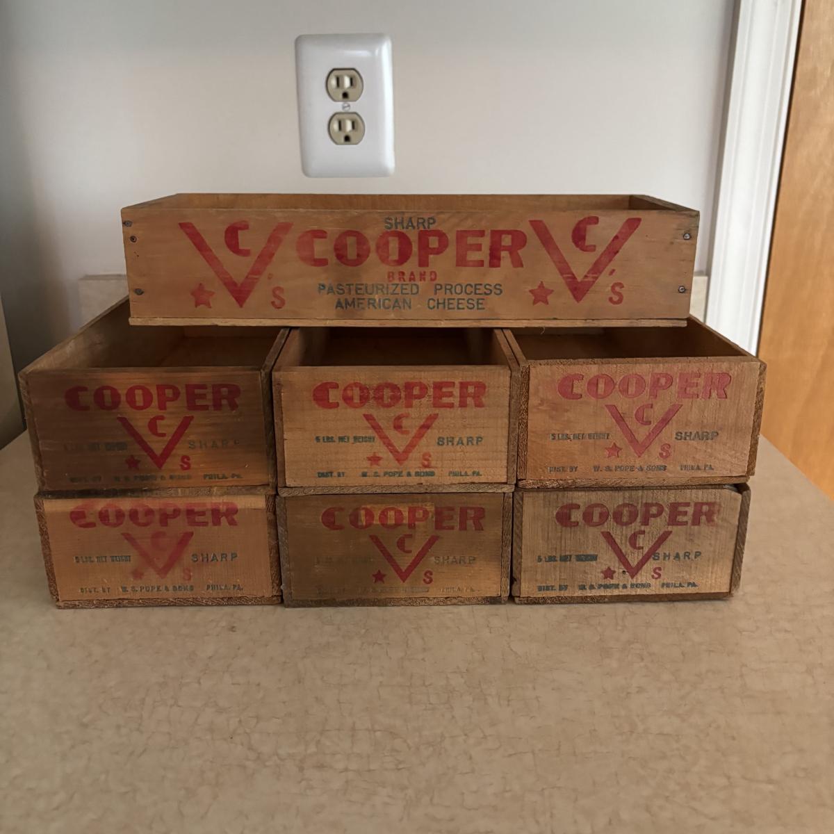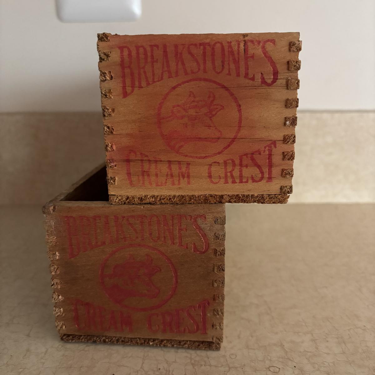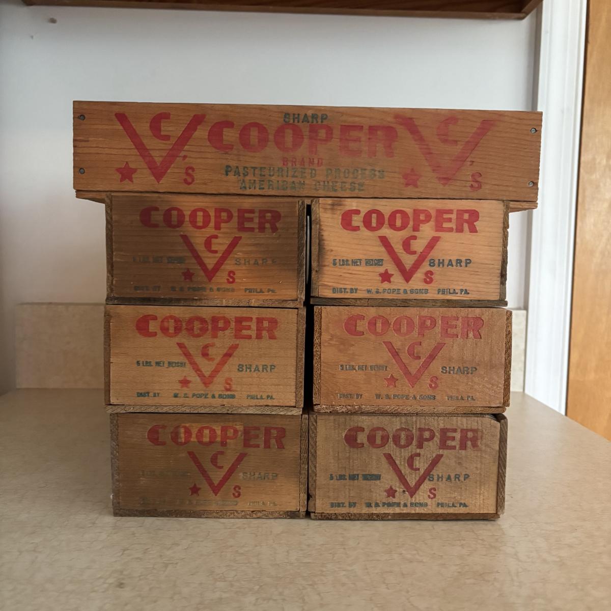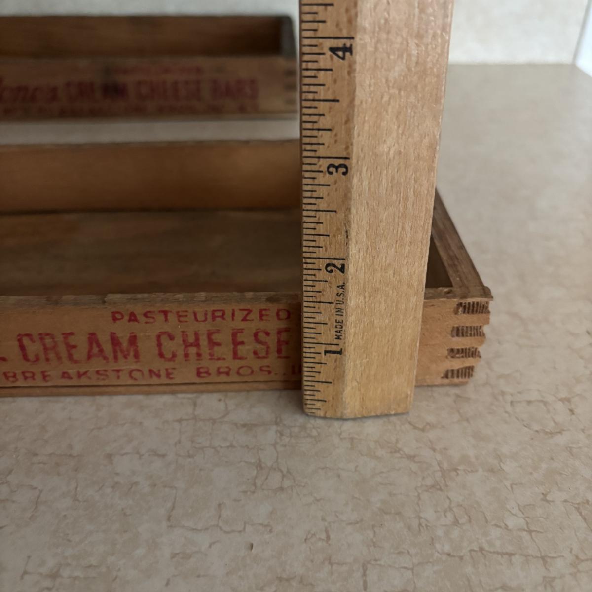 LOT 248: Vintage Wood Boxes: Cooper Sharp Cheese, Breakstone's Cream Cheese, Tuxedo Brand Cream Cheese