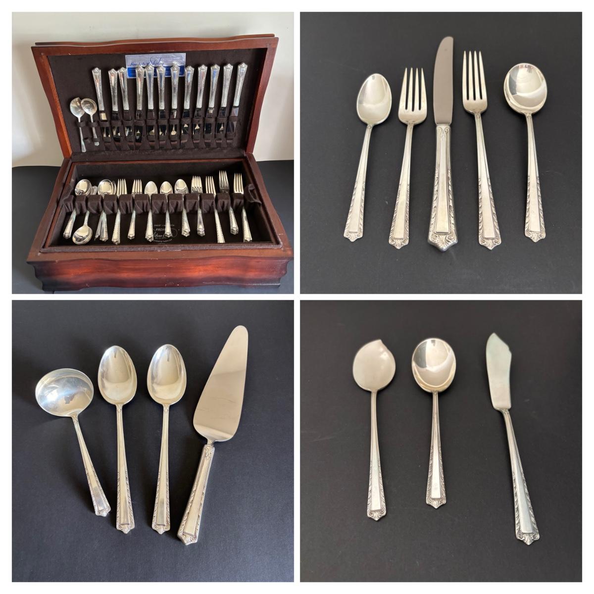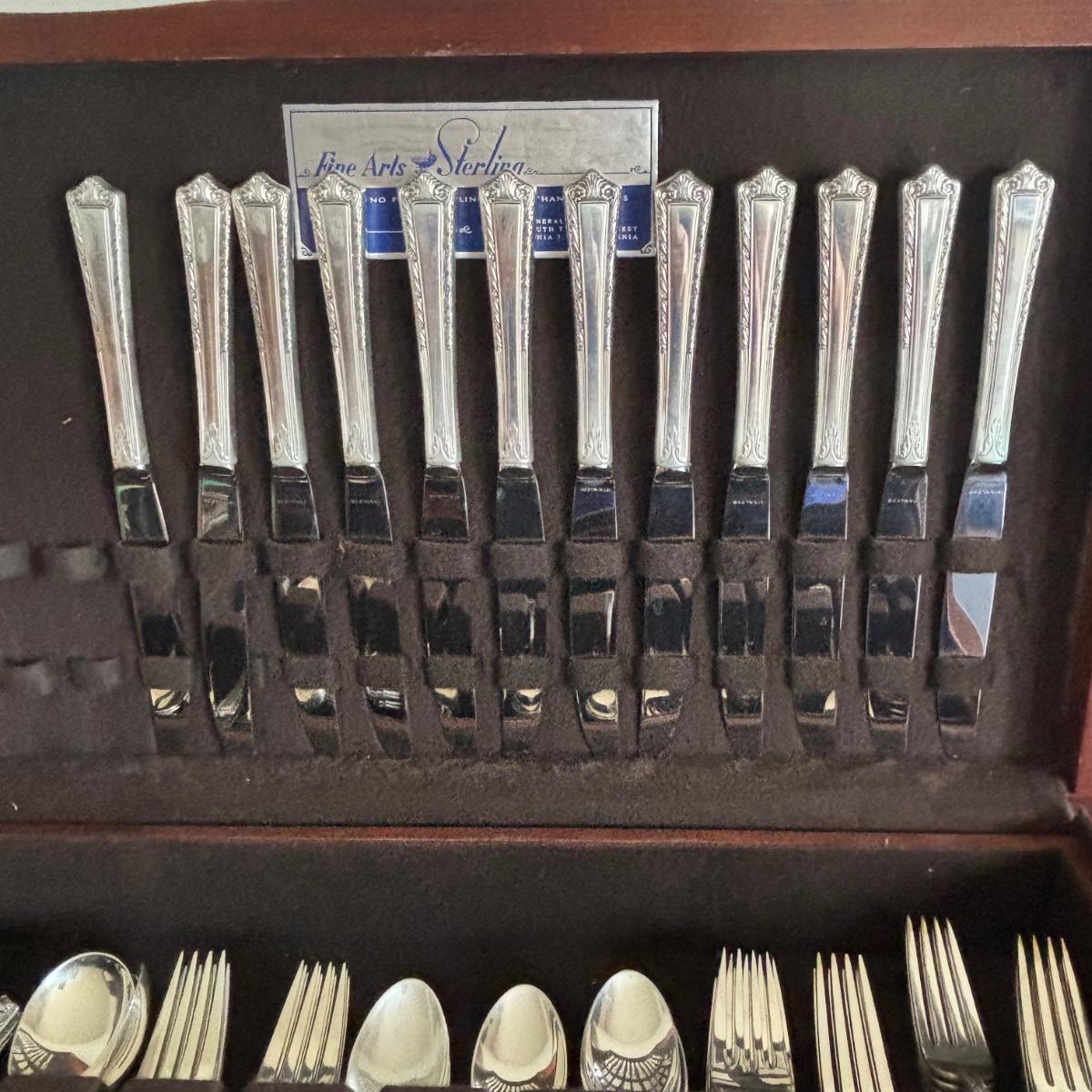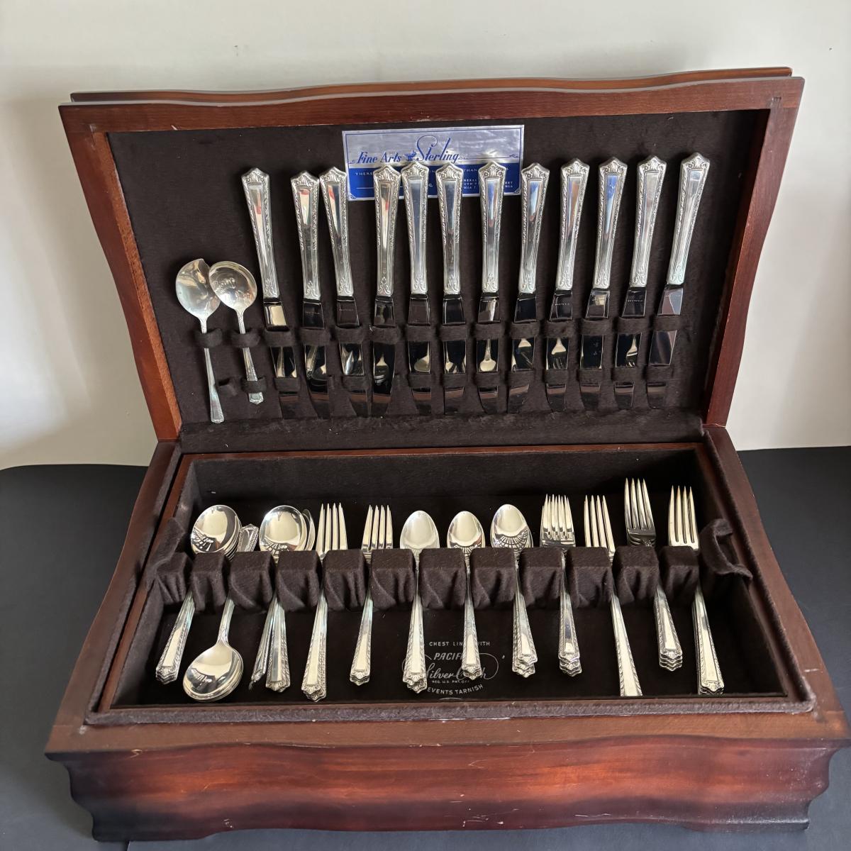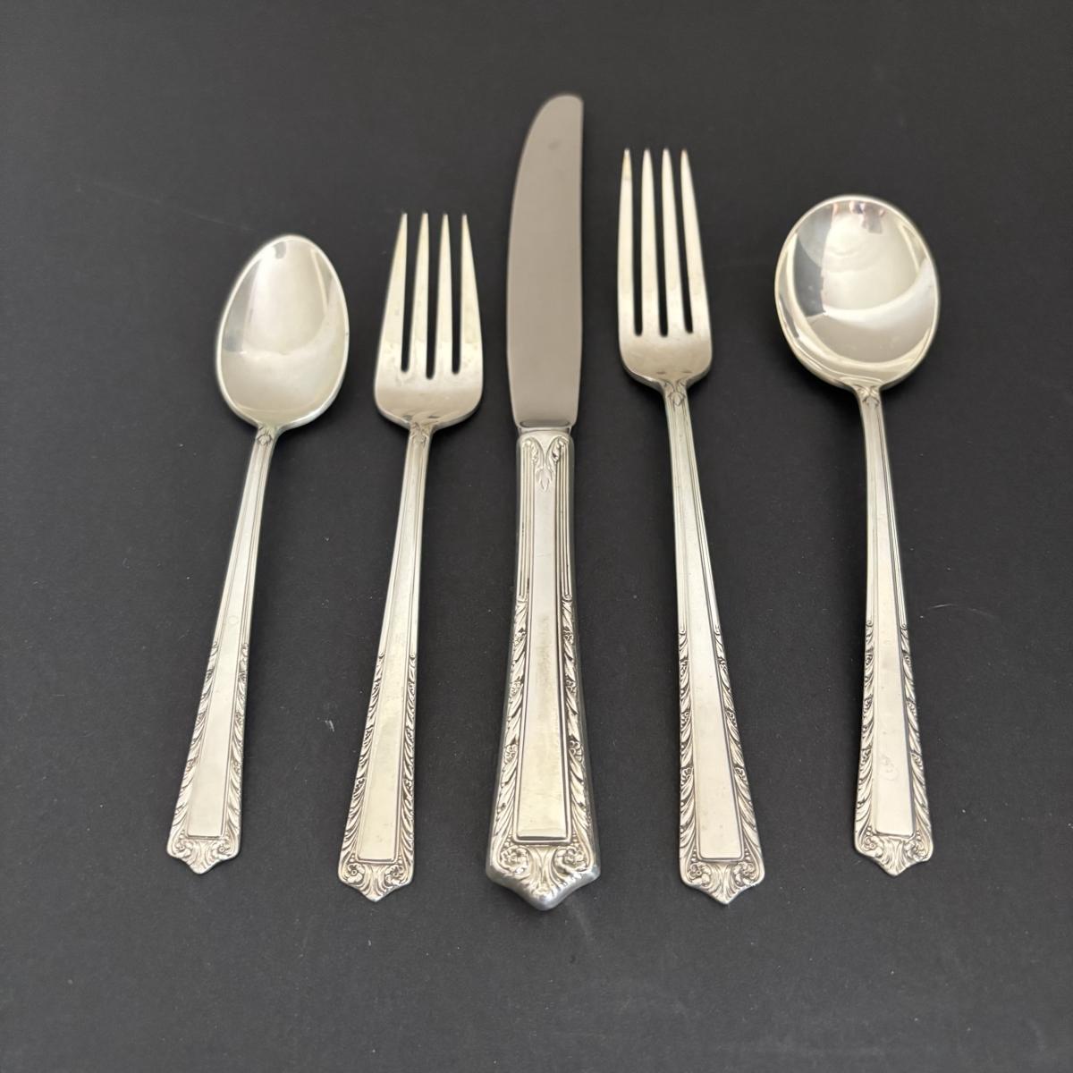 LOT 205: Fine Arts Sterling Silver Processional Flatware Set: 5pc Place Setting for 12, Tw 2090.80g