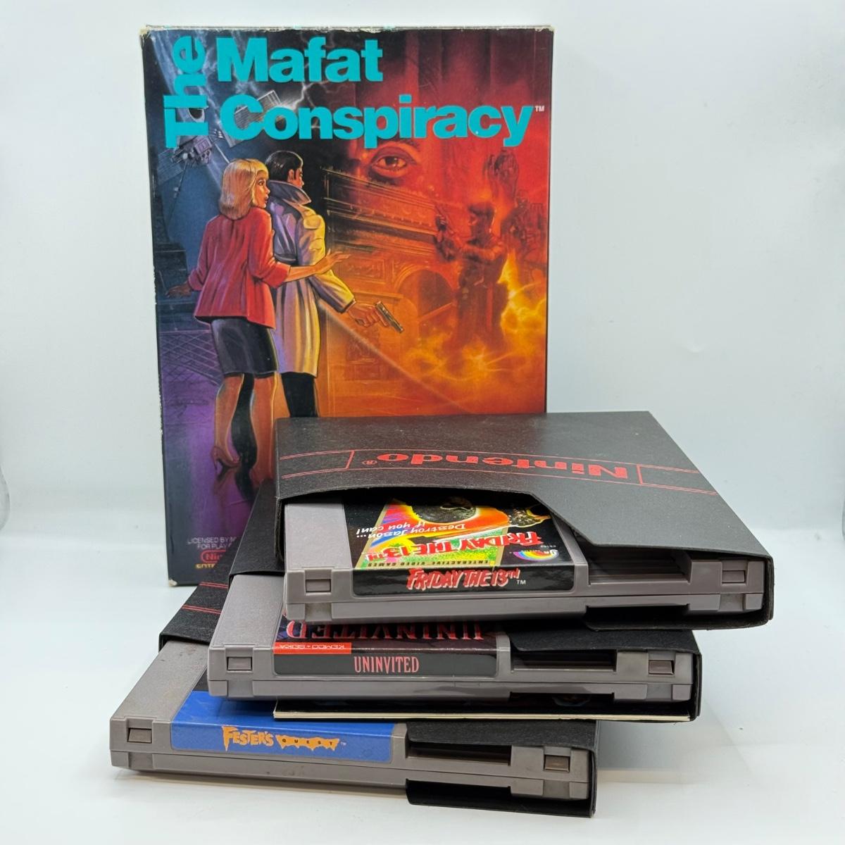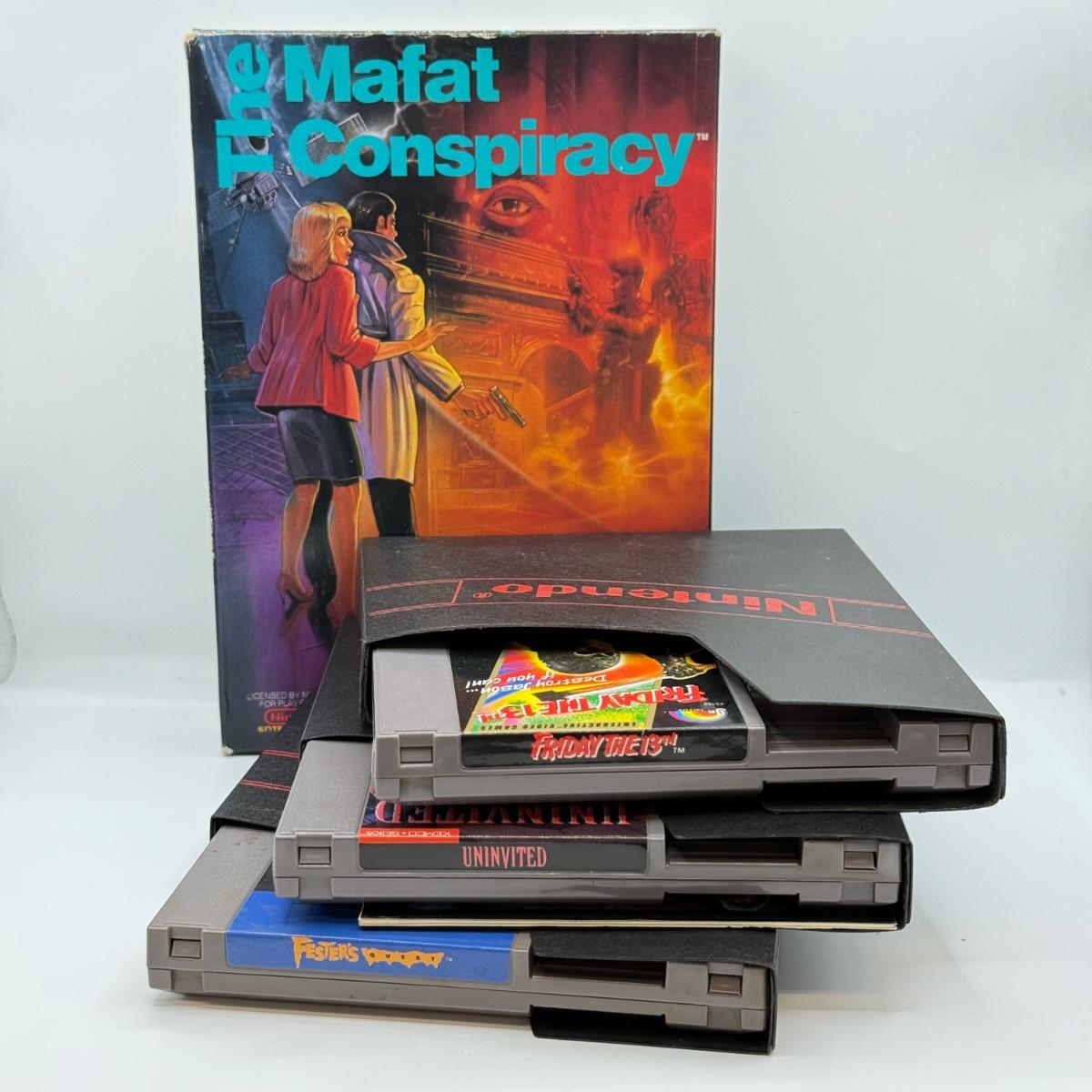 LOT 12: NES Games: The Mafat Conspiracy w/ Box, Friday the 13th, Uninvited & Addams Family Fester's Quest