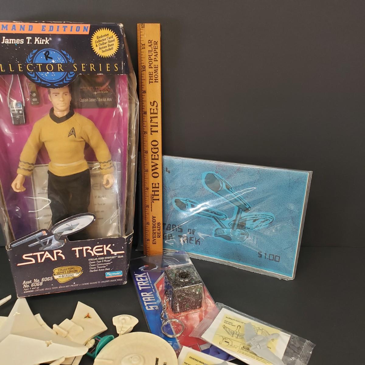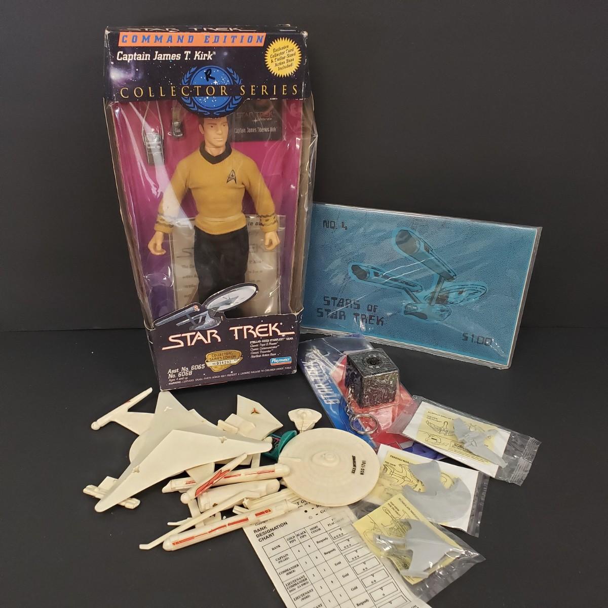 LOT 34: Star Trek Captain Kirk Doll, Stars of Star Trek in Original Packaging & More