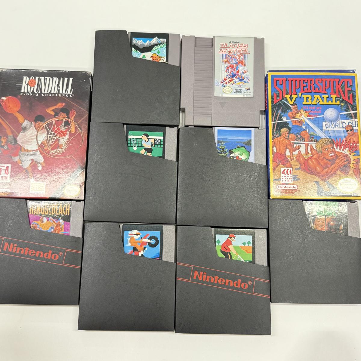 LOT 49: NES Sports Games: Superspike V Ball & Roundball w/ Boxes, Blades of Steel, Kings of the Beach, Temco Bowl, Golf, Excitebike, Tennis &* The Black Bass