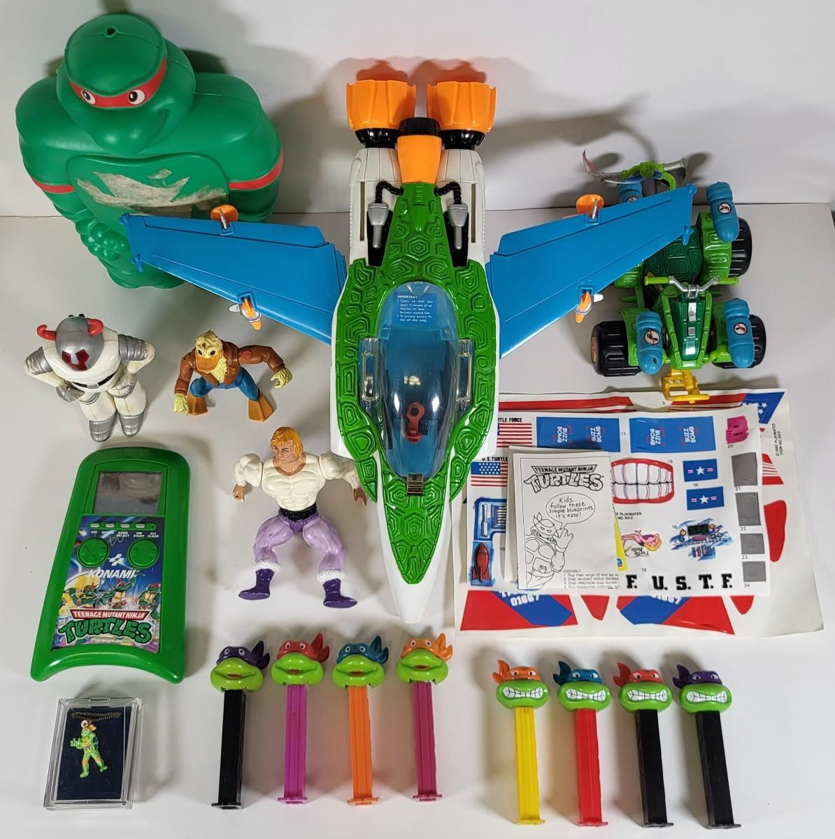 LOT 86: Vintage Teenage Mutant Ninja Turtles Toy Lot Including Pez Dispensers, Handheld Videogame and More