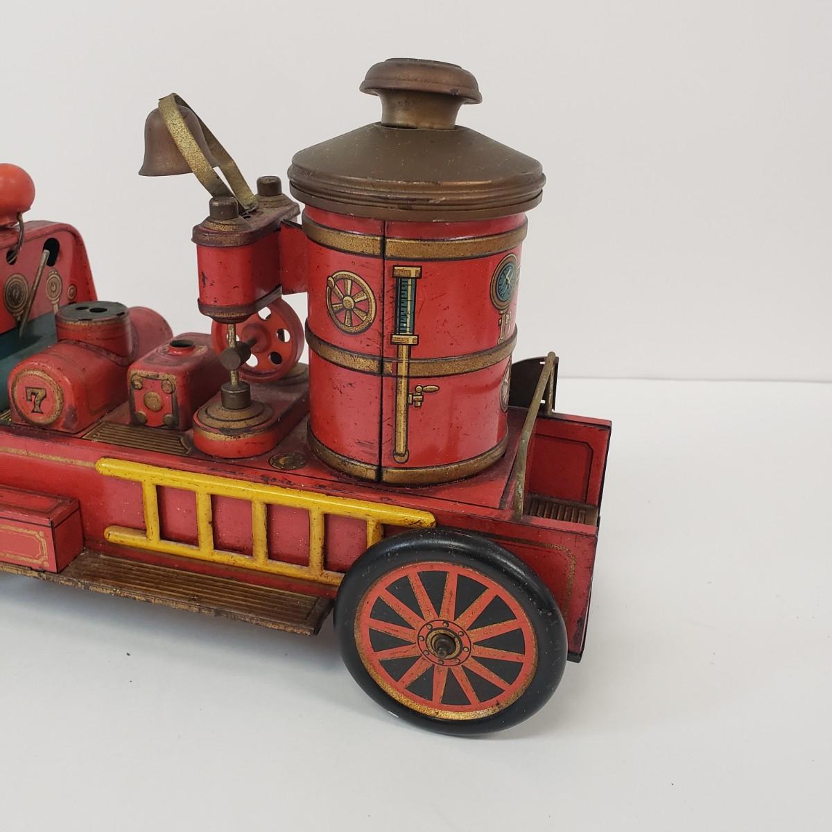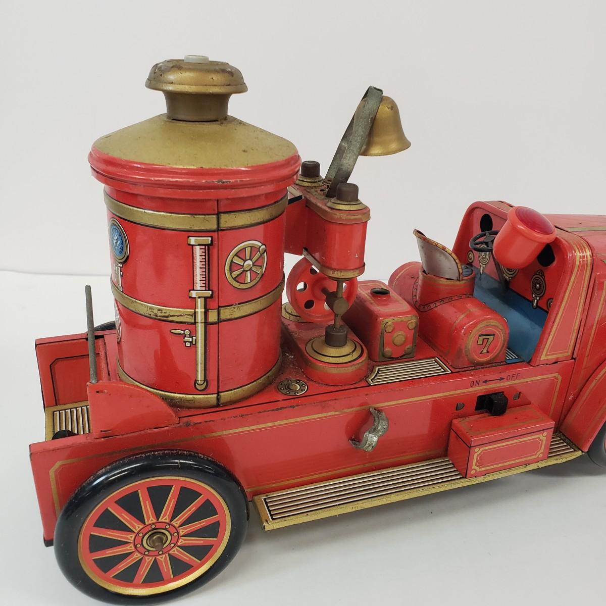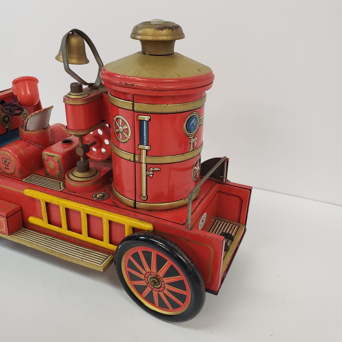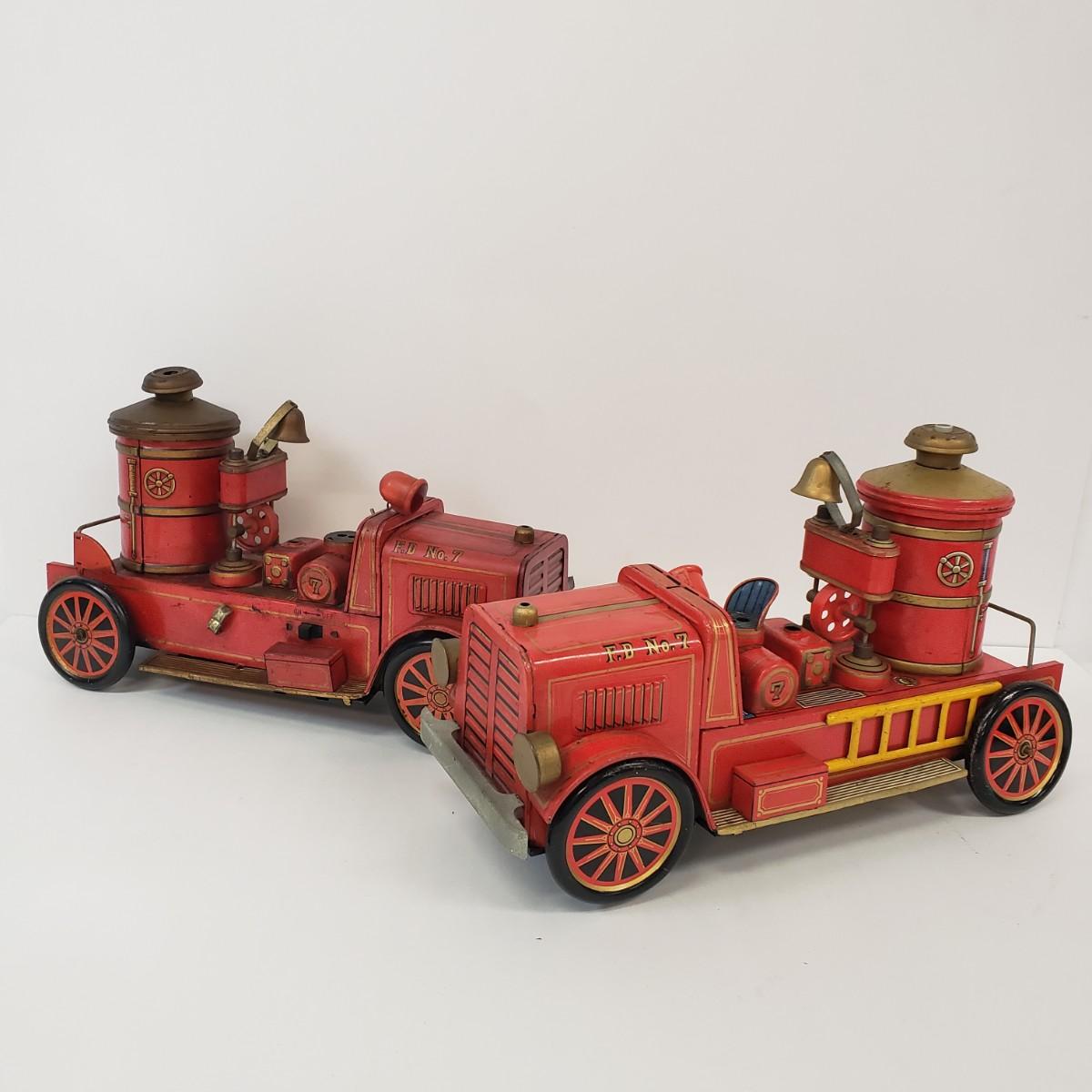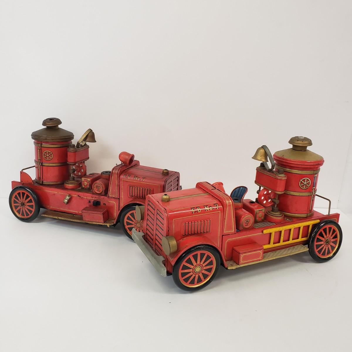 LOT 105: Vintage TM Toys Tin Litho Fire Trucks