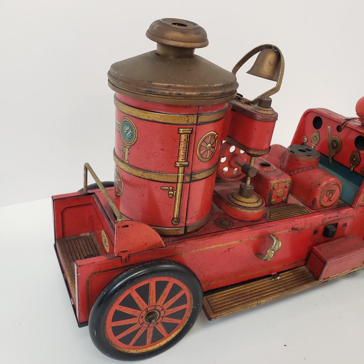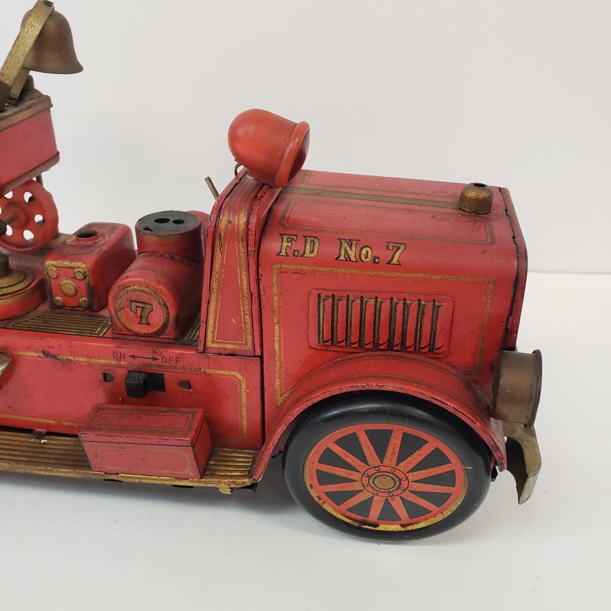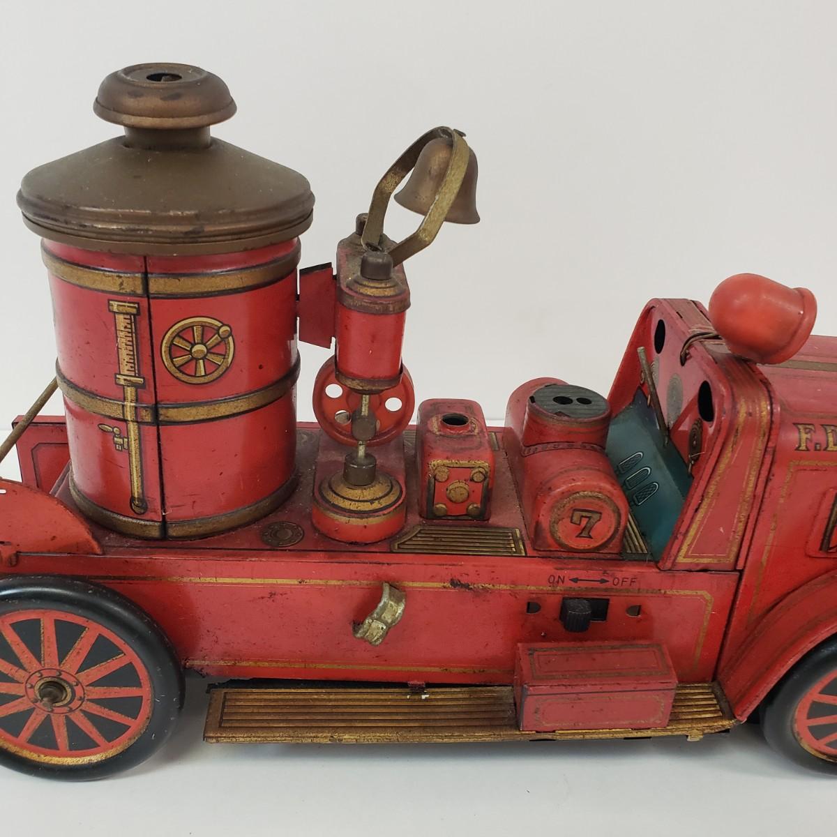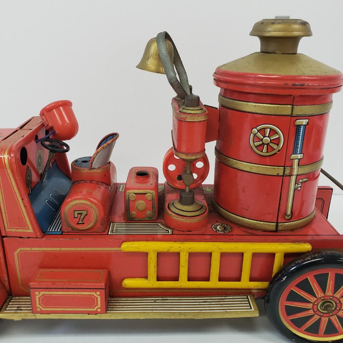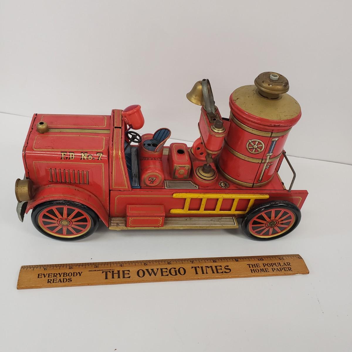 LOT 105: Vintage TM Toys Tin Litho Fire Trucks