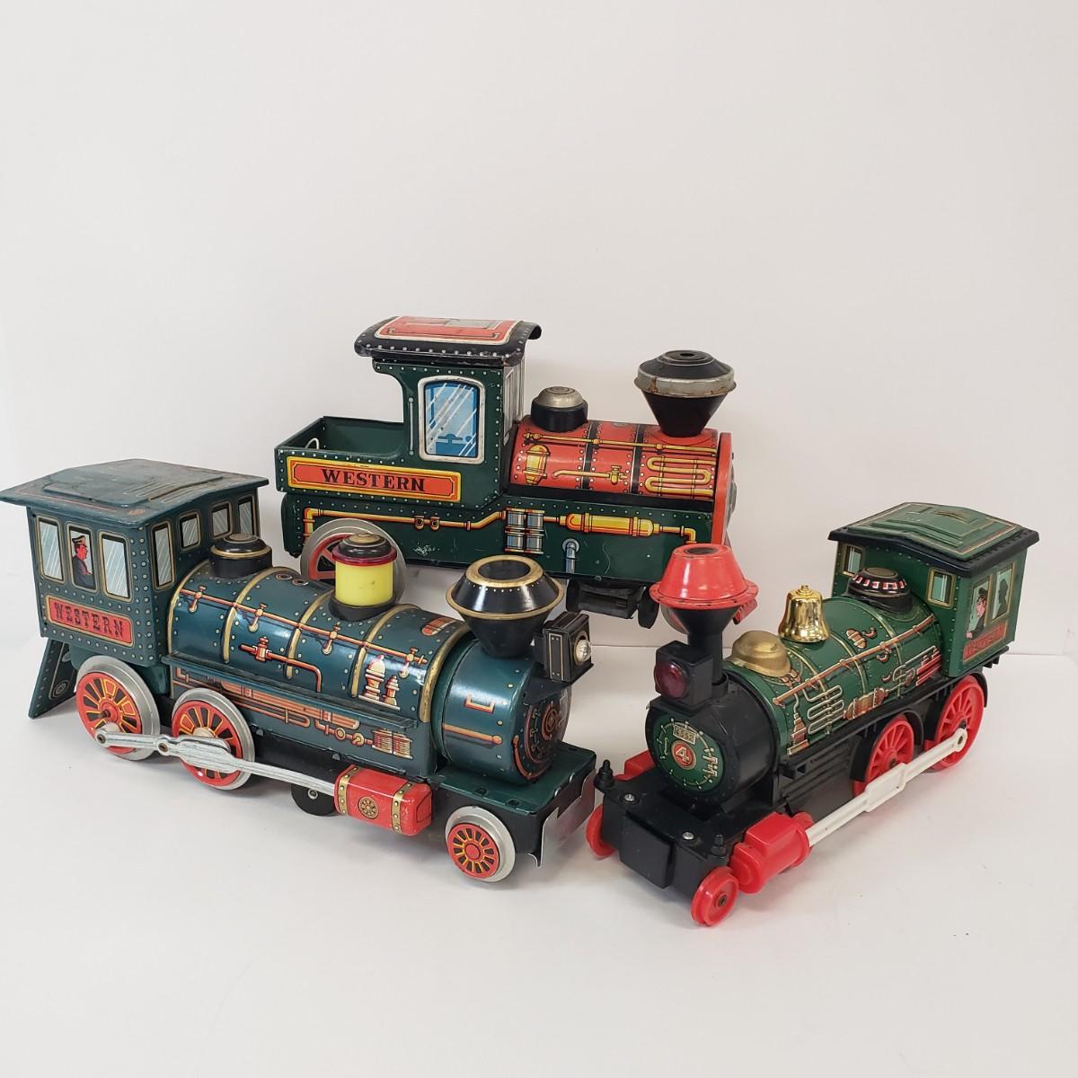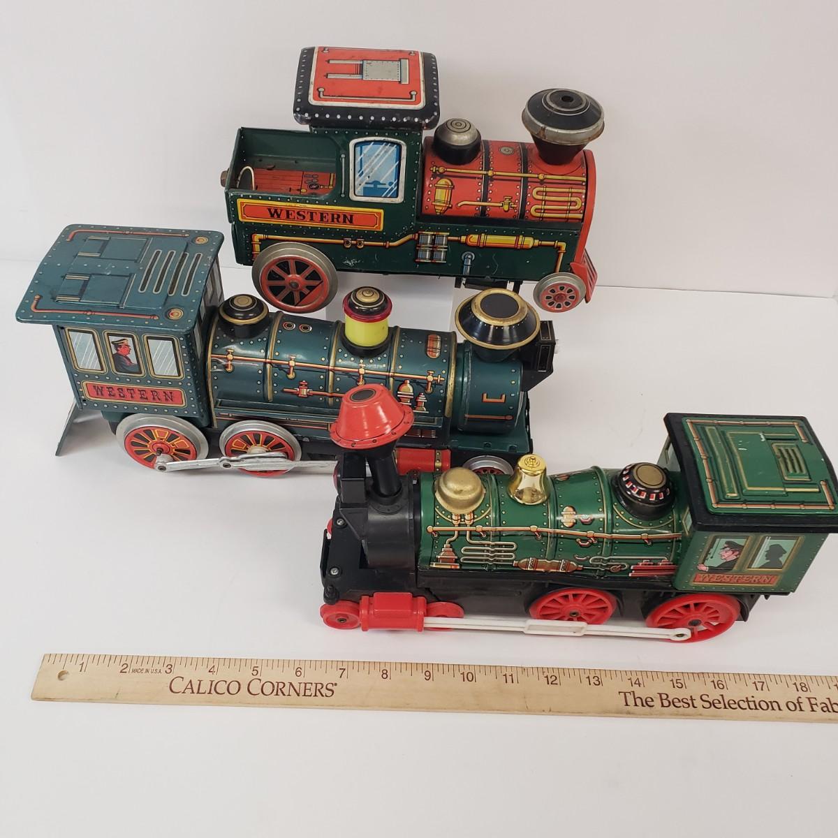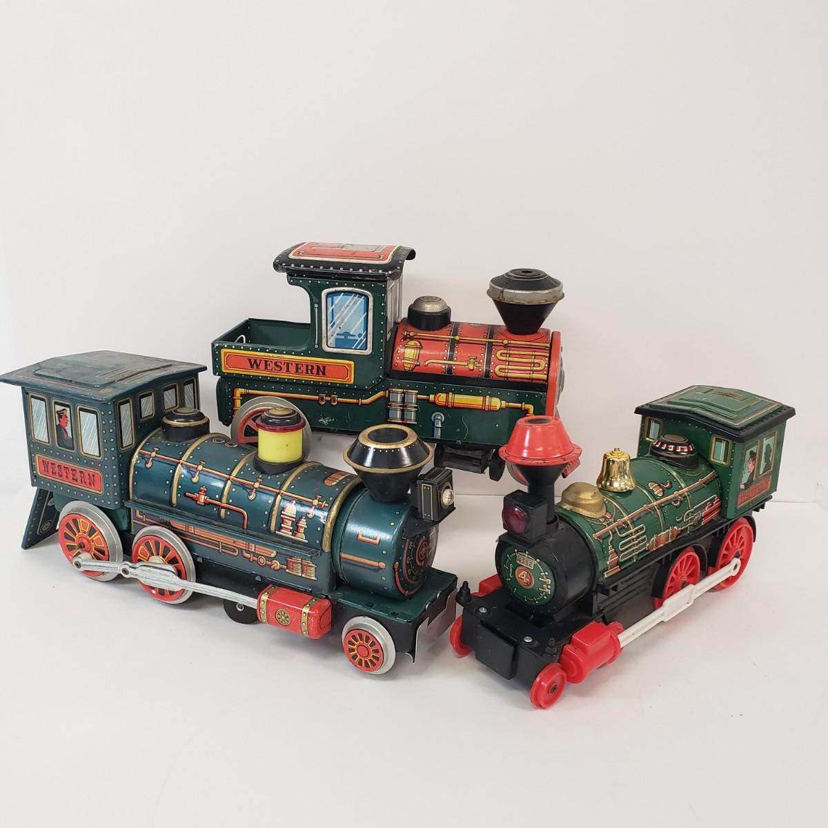 LOT 106: Vintage Western Train Tin Litho Toys Display or Repair lot