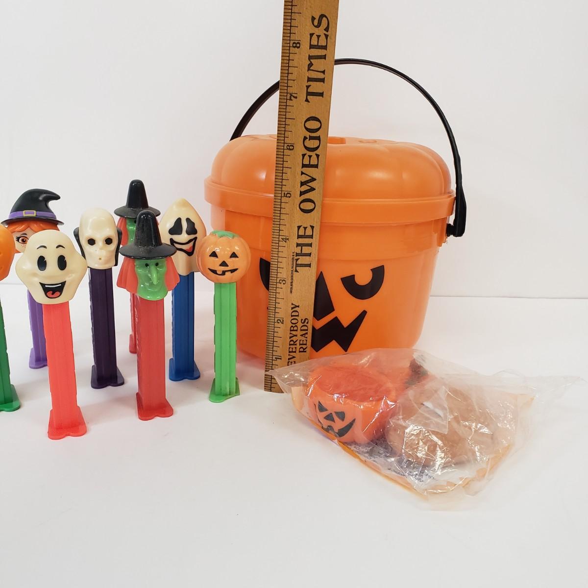 LOT 108: Vintage McDonalds Pumpkin Nugget, McGoblin Pail & Halloween PEZ