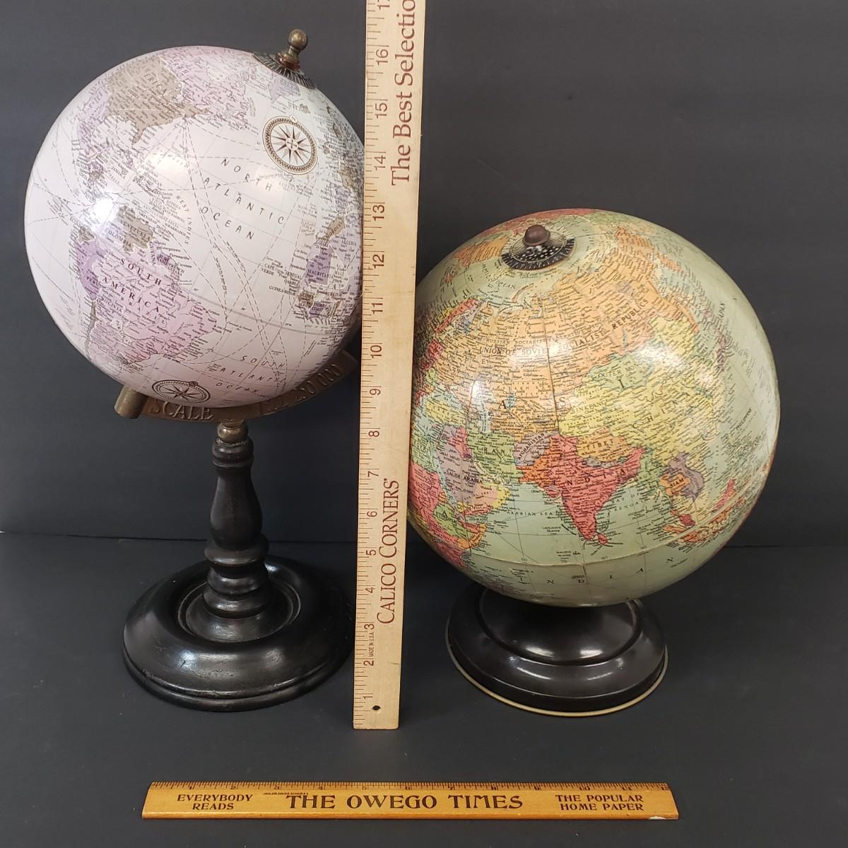 LOT 114: Vintage Replogle 10" World Globe & Decorative Tabletop Globe