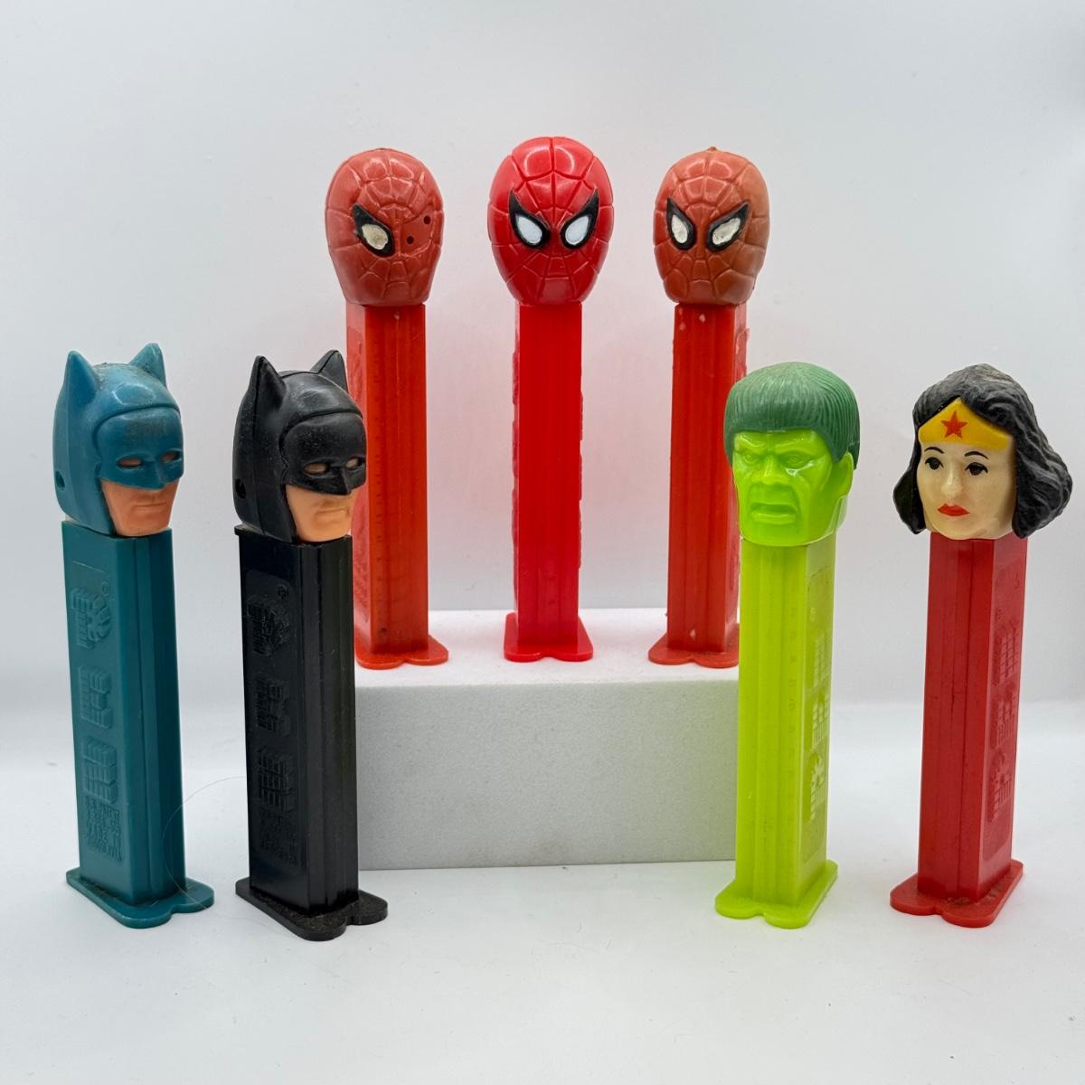 LOT 127: Super Hero Pez Dispensers: Vintage Spiderman, Batman & Wonder Woman