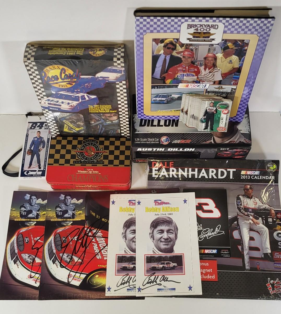 LOT 157: Multiple Nascar Memorabilia Items Including Autographs of Bobby Allison, Elliott Sadler and More