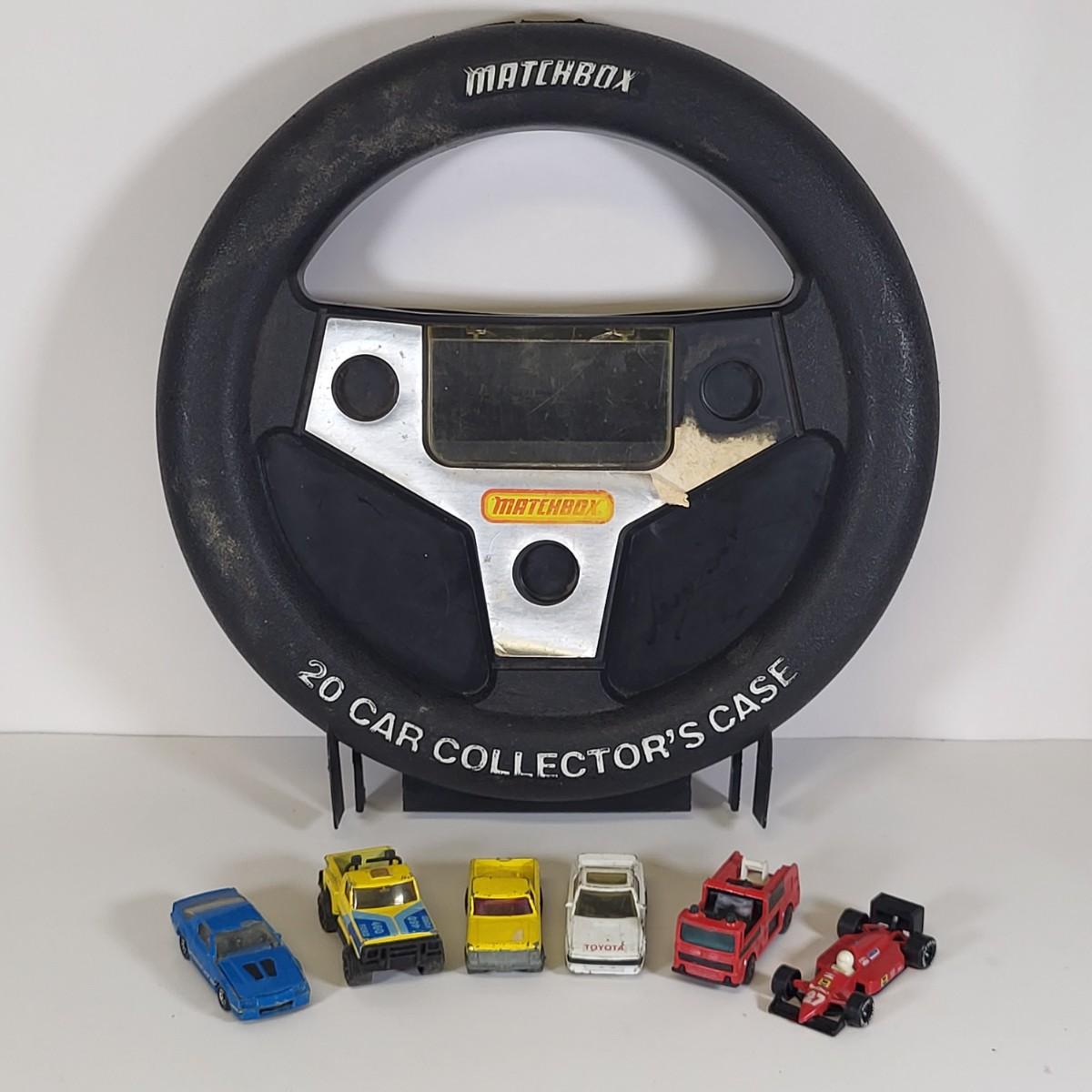 LOT 159: Vintage Lot of Six Matchbox Toy Cars and Matchbox Toy Car Carrying Case