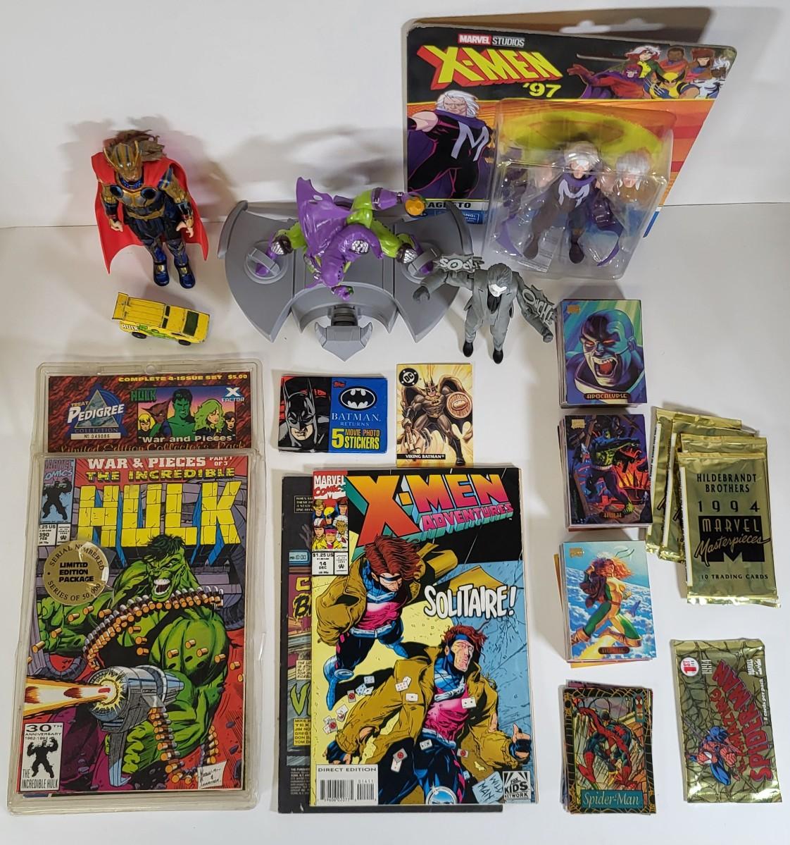 LOT 162: Marvel and DC Lot of Collectibles Including Comic Books, Trading Cards and More