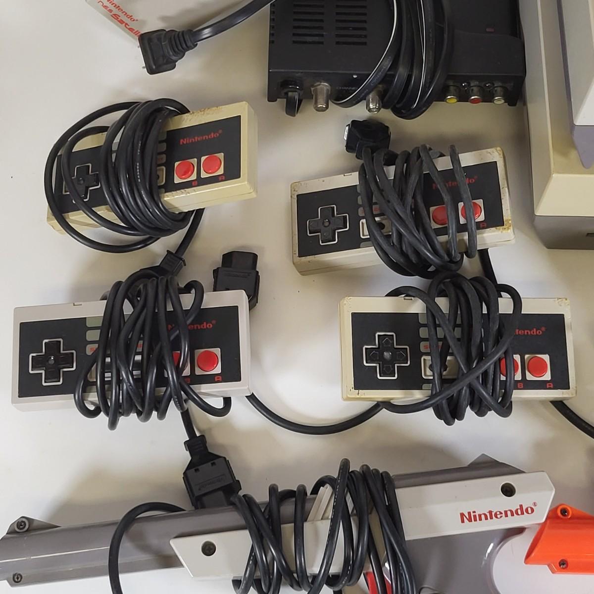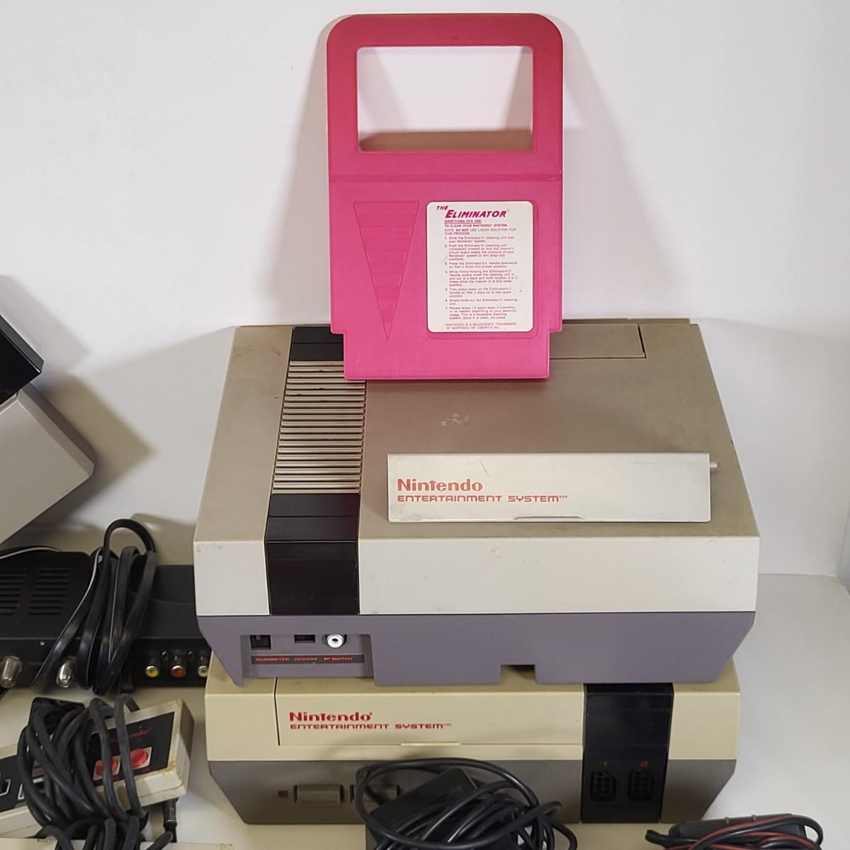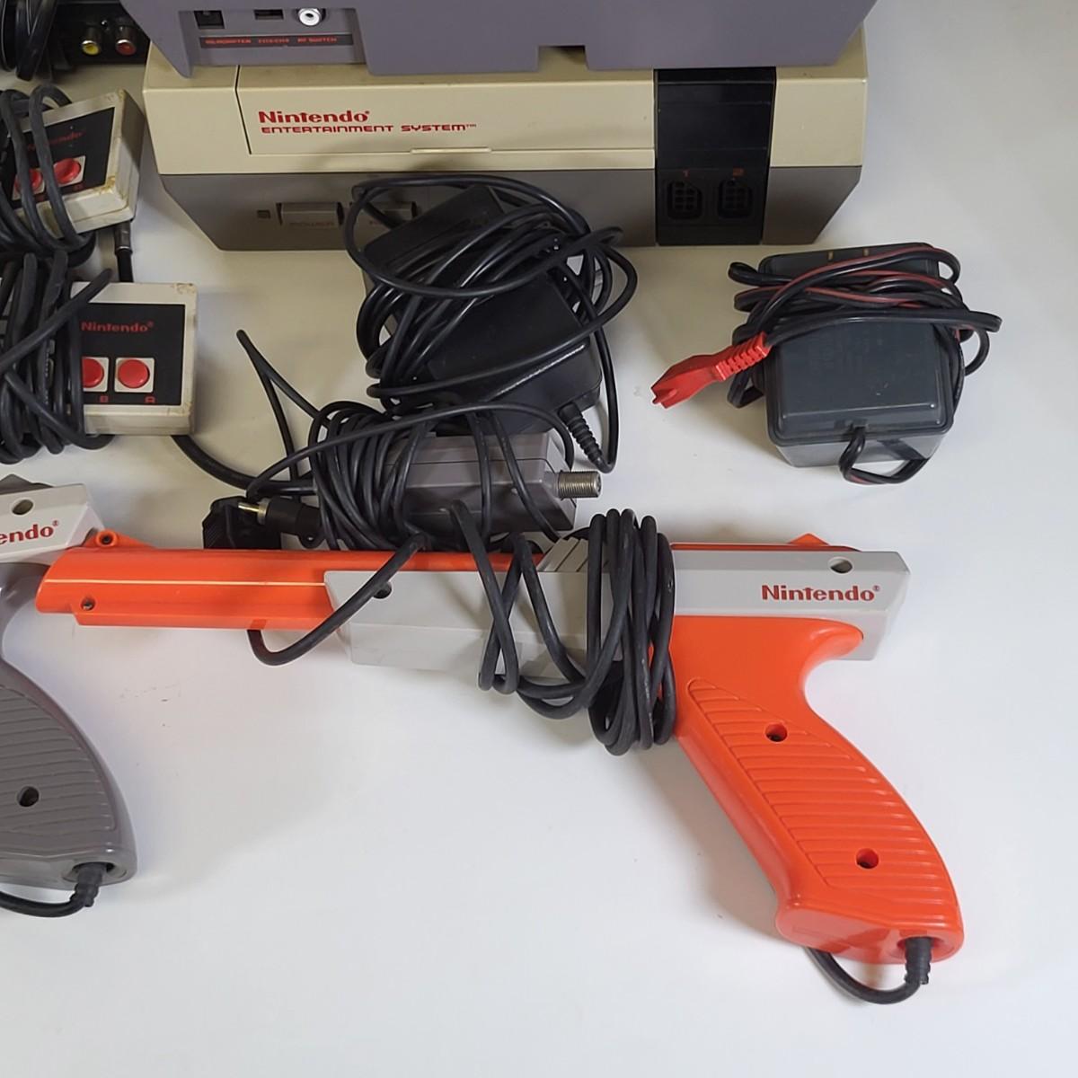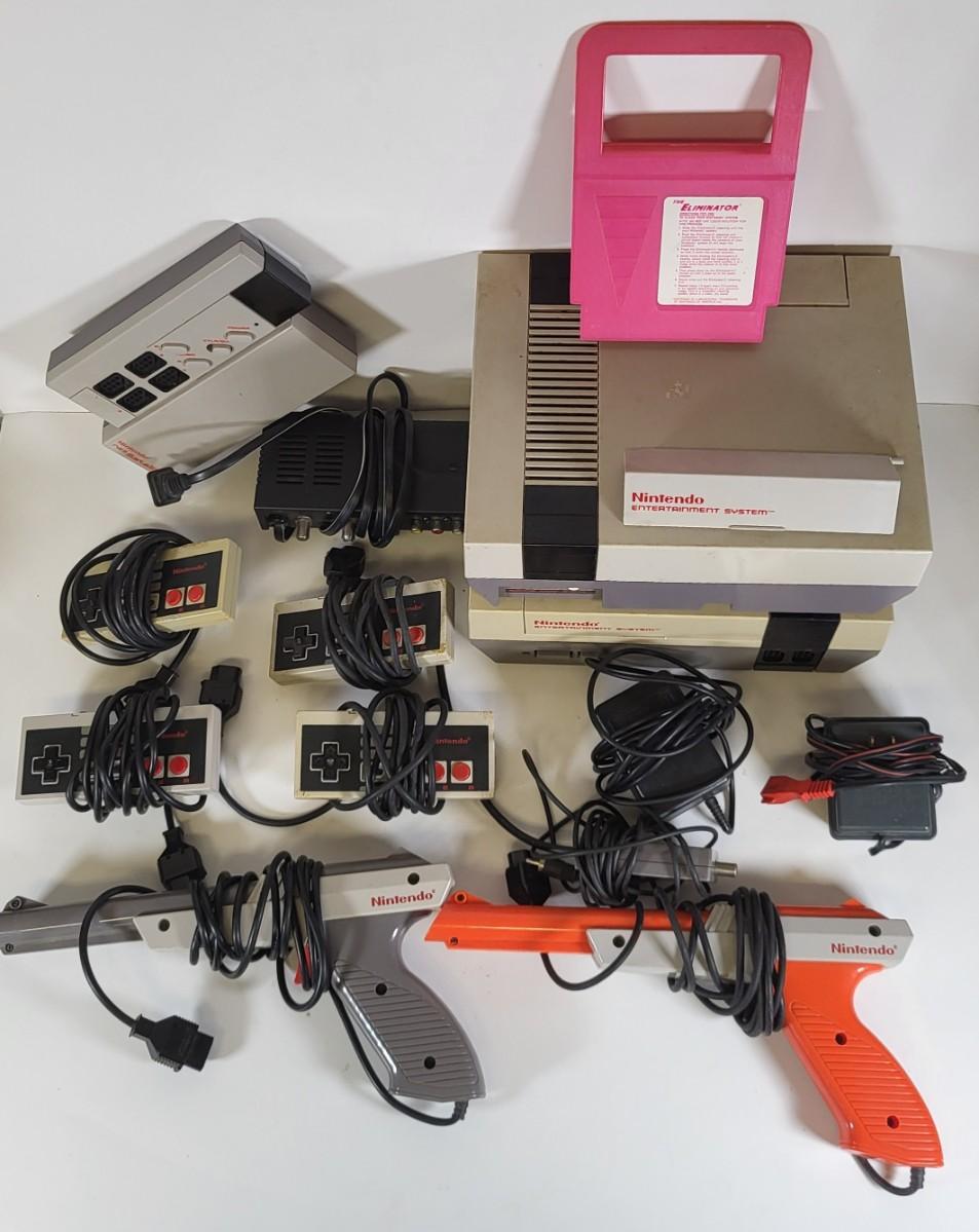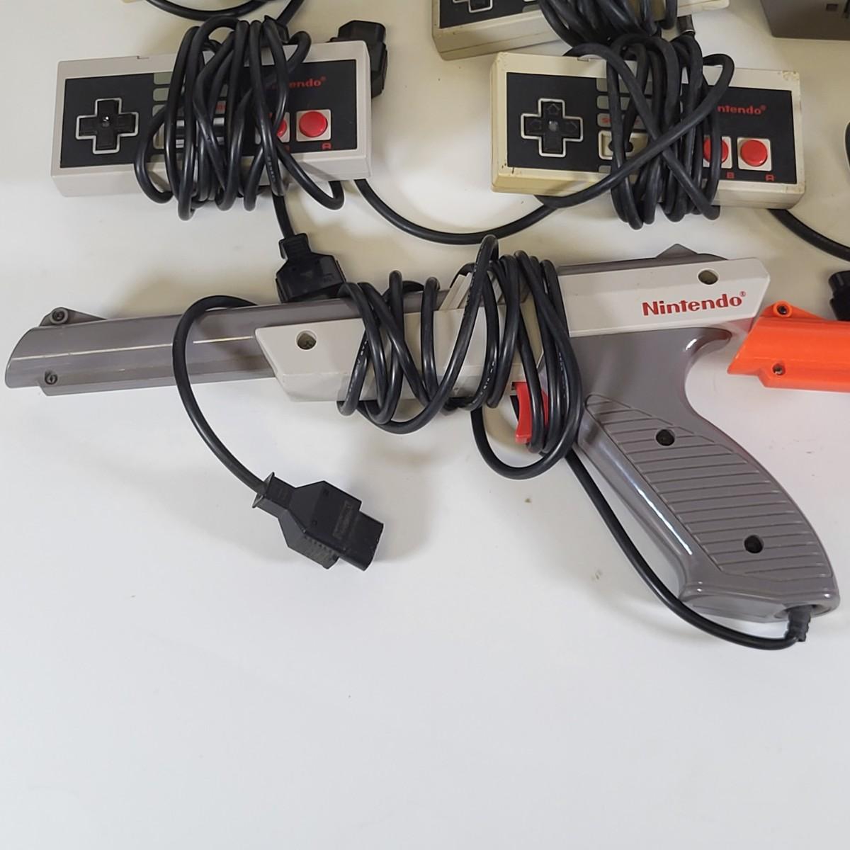 LOT 163: Two Original Vintage Nintendo NES Systems with Controllers, Duck Hunt Guns and More