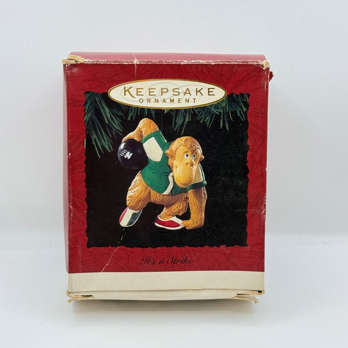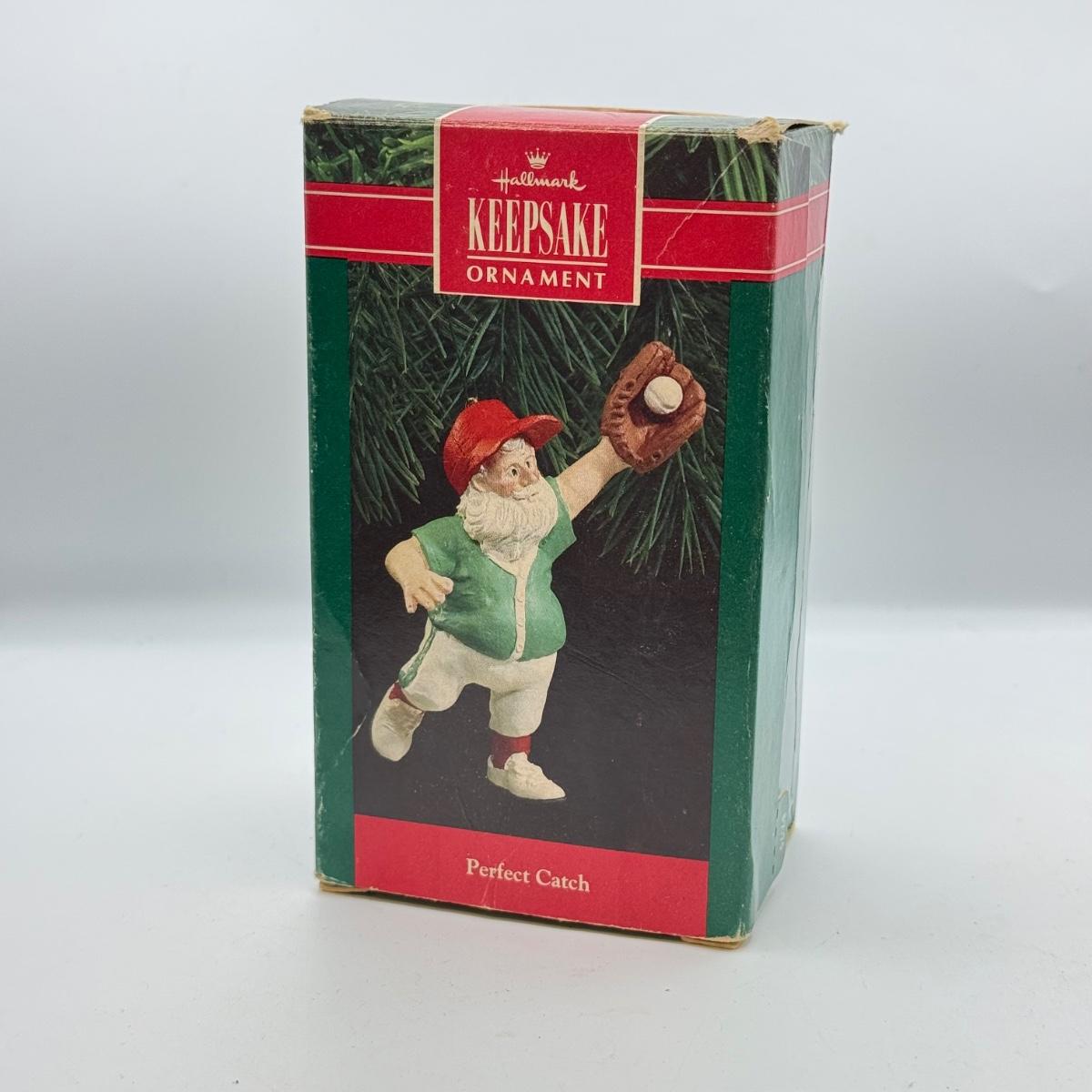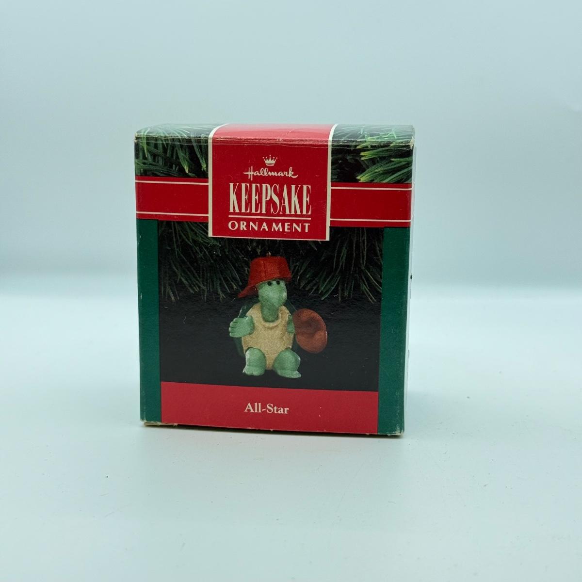LOT 177: Hallmark Keepsake Ornaments in Boxes: Bowling Monkey, Baseball & Fishing Santas & Turtle All Star