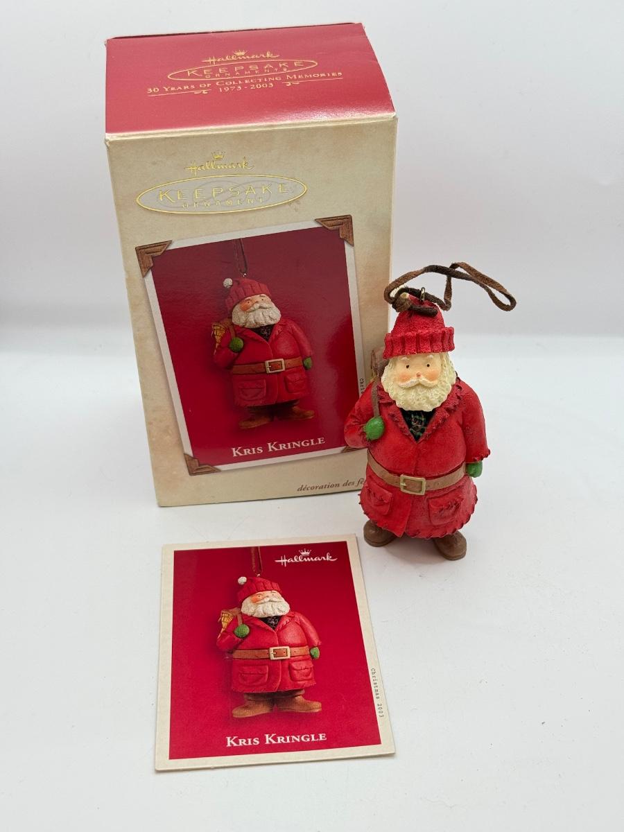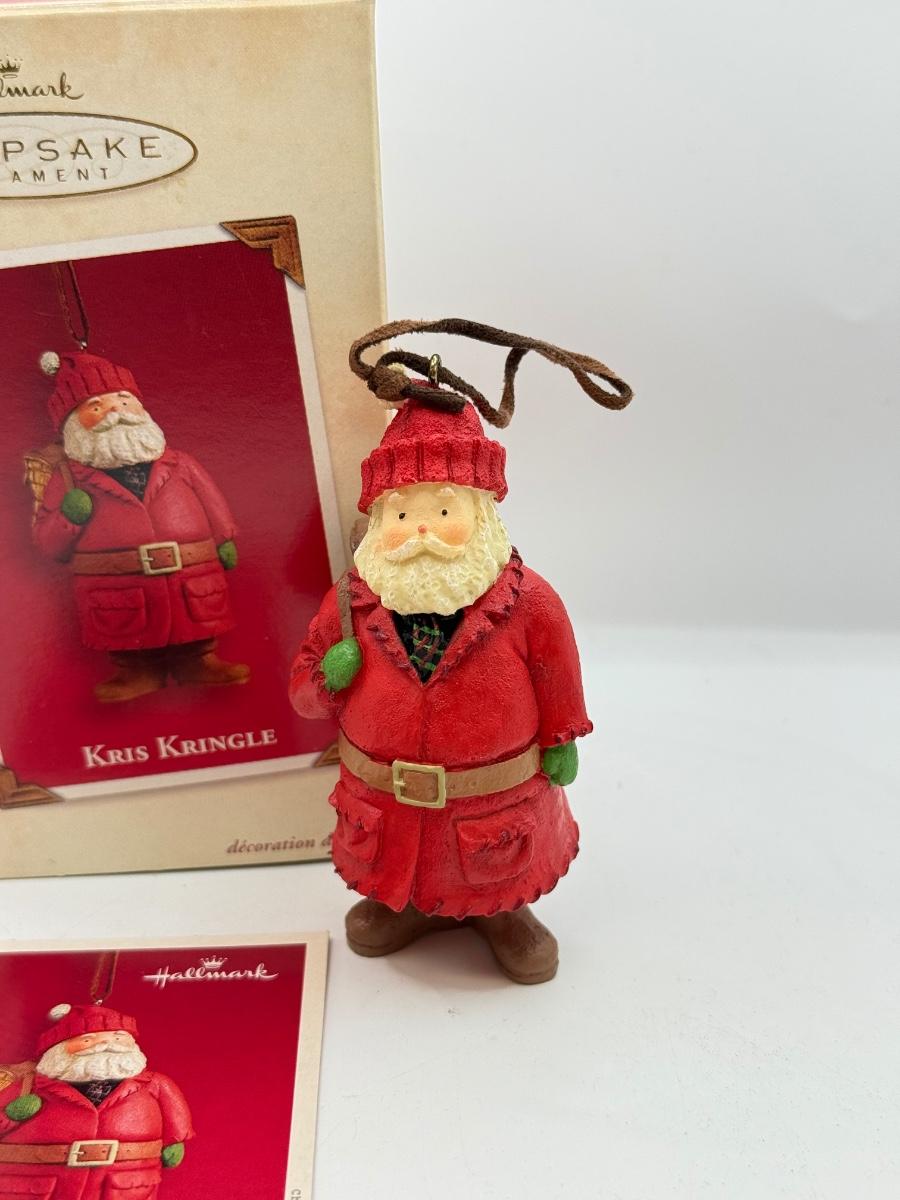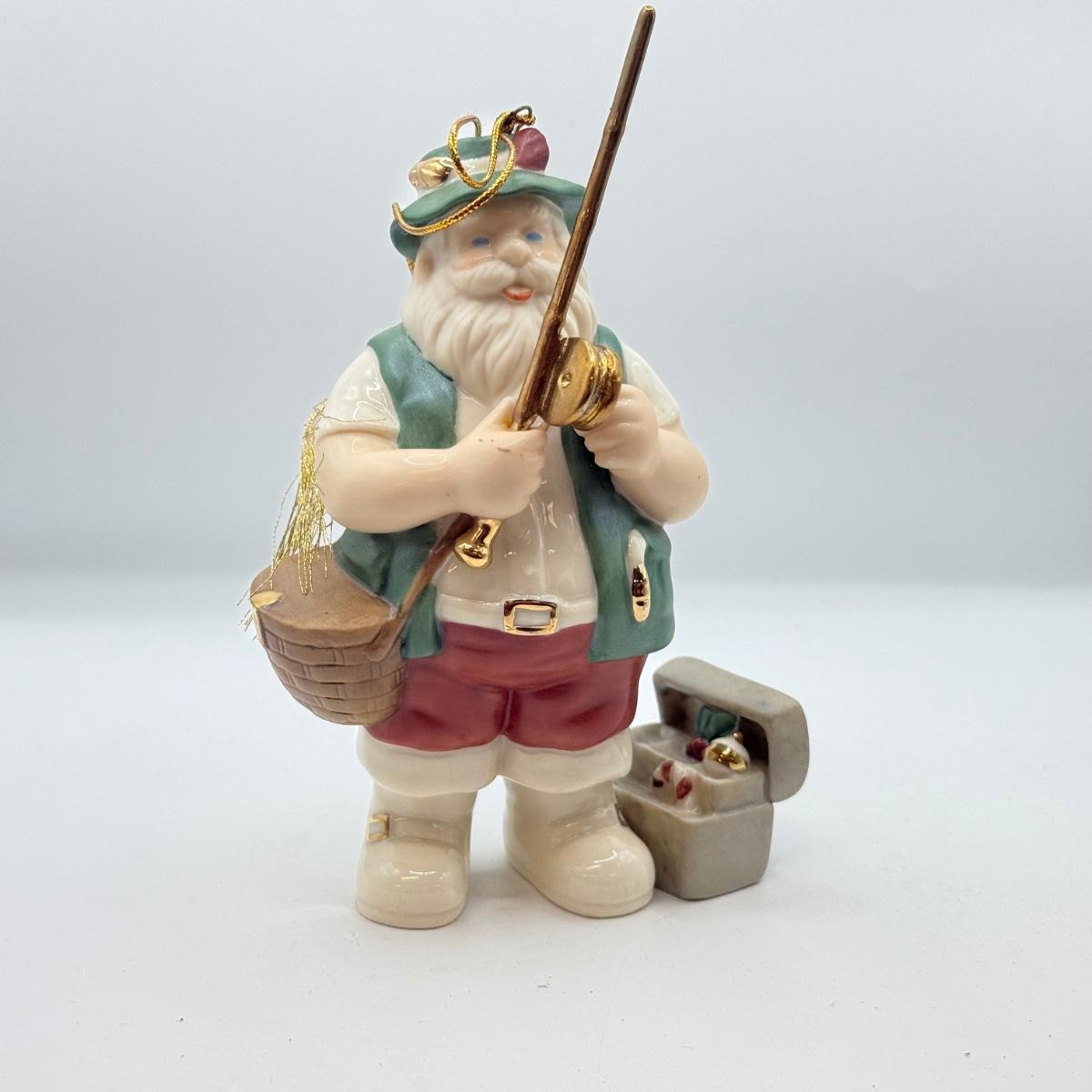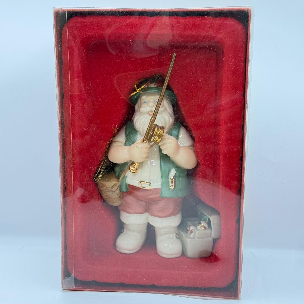 LOT 178: Lenox Fishing Santa, Hallmark Keepsake Ornament Kris Kringle & Trio of Santas all in Boxes