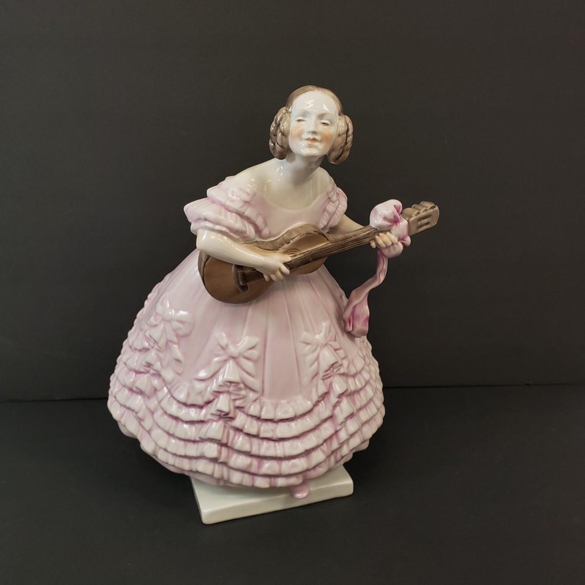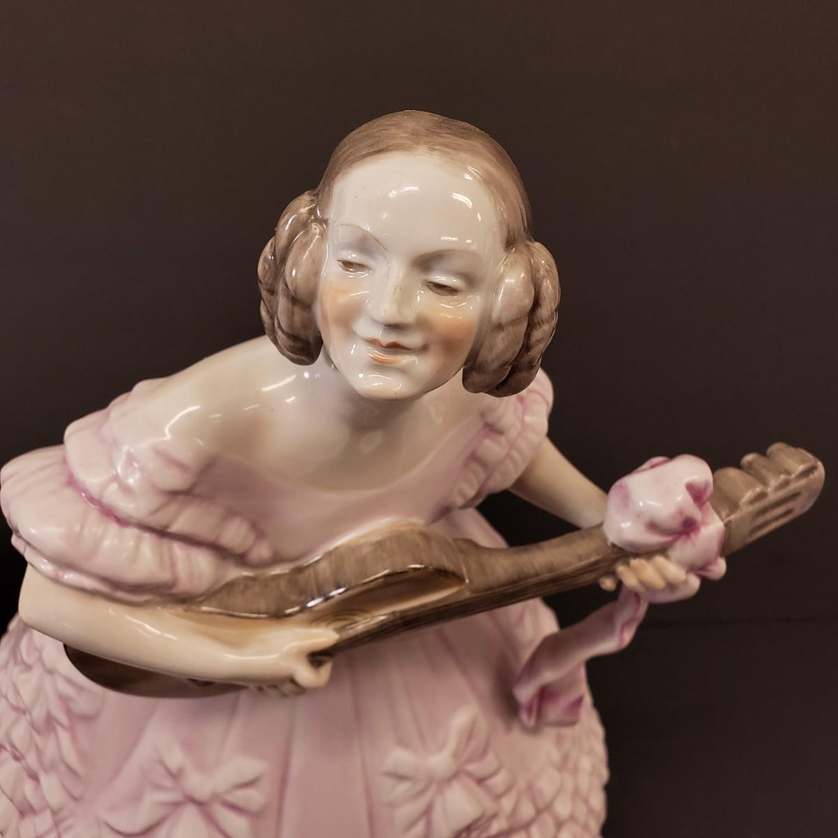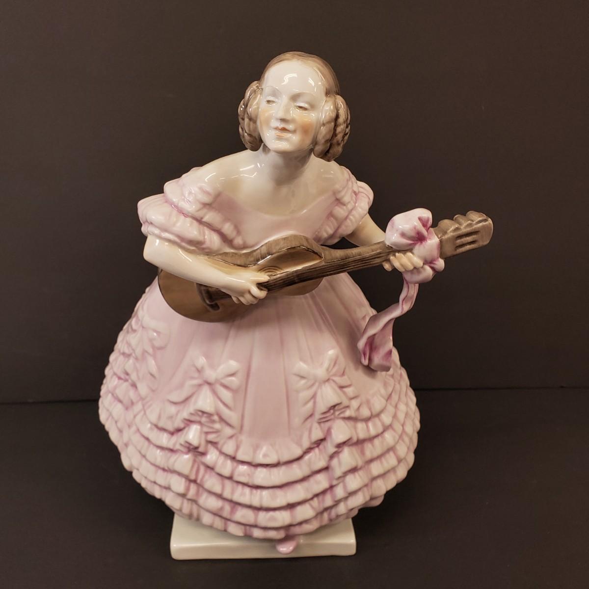 LOT 181: 14" Herend Porcelain Woman Playing Guitar