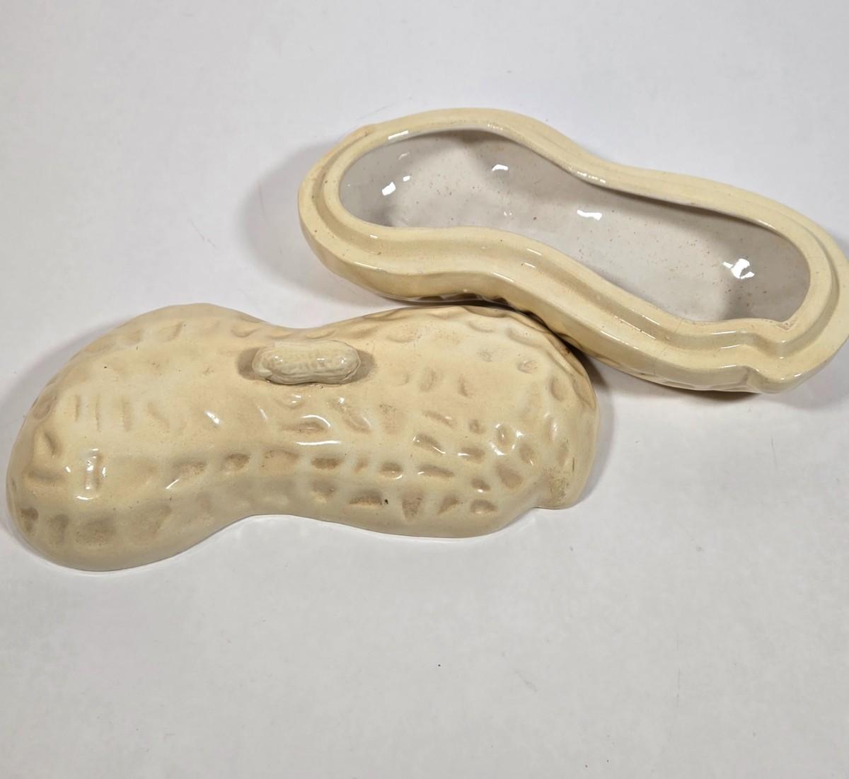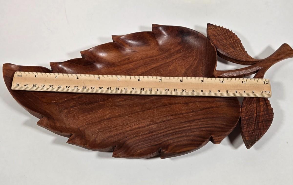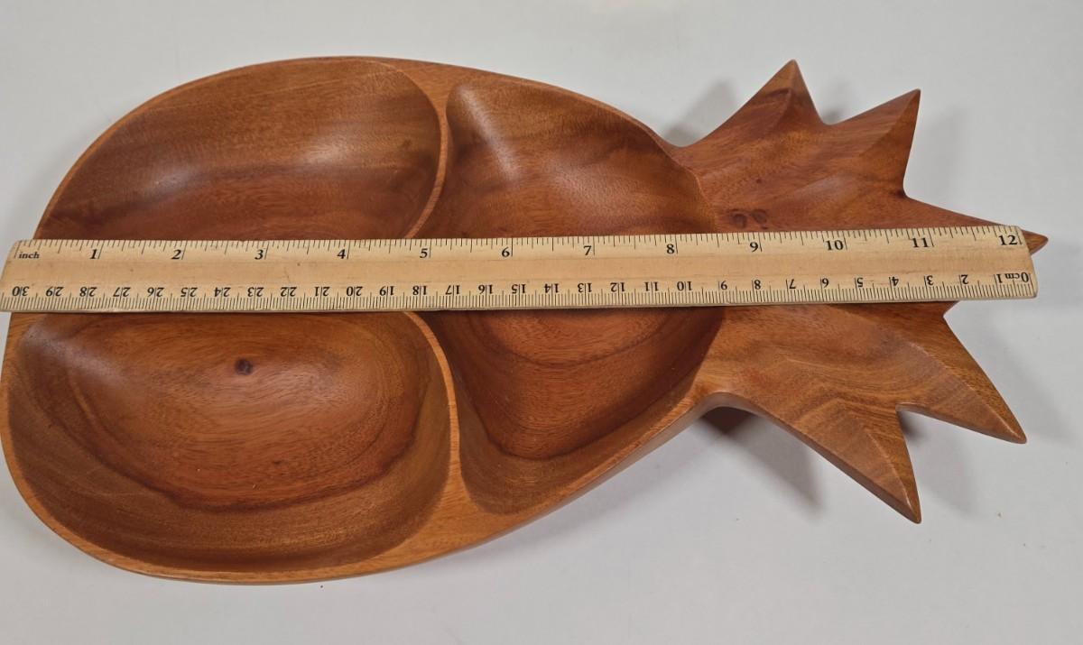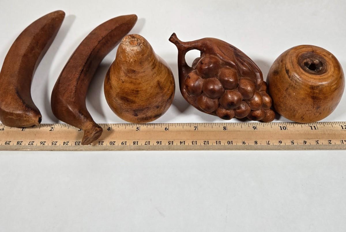 LOT 11D: Wooden Trays, Basket, & Fruit, and Covered Ceramic Peanut Candy Dish